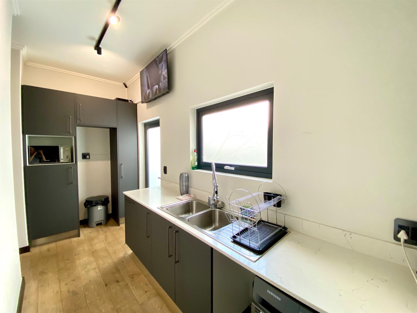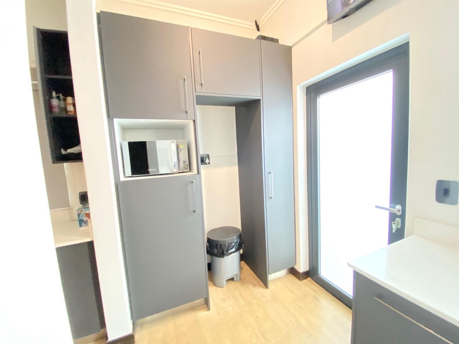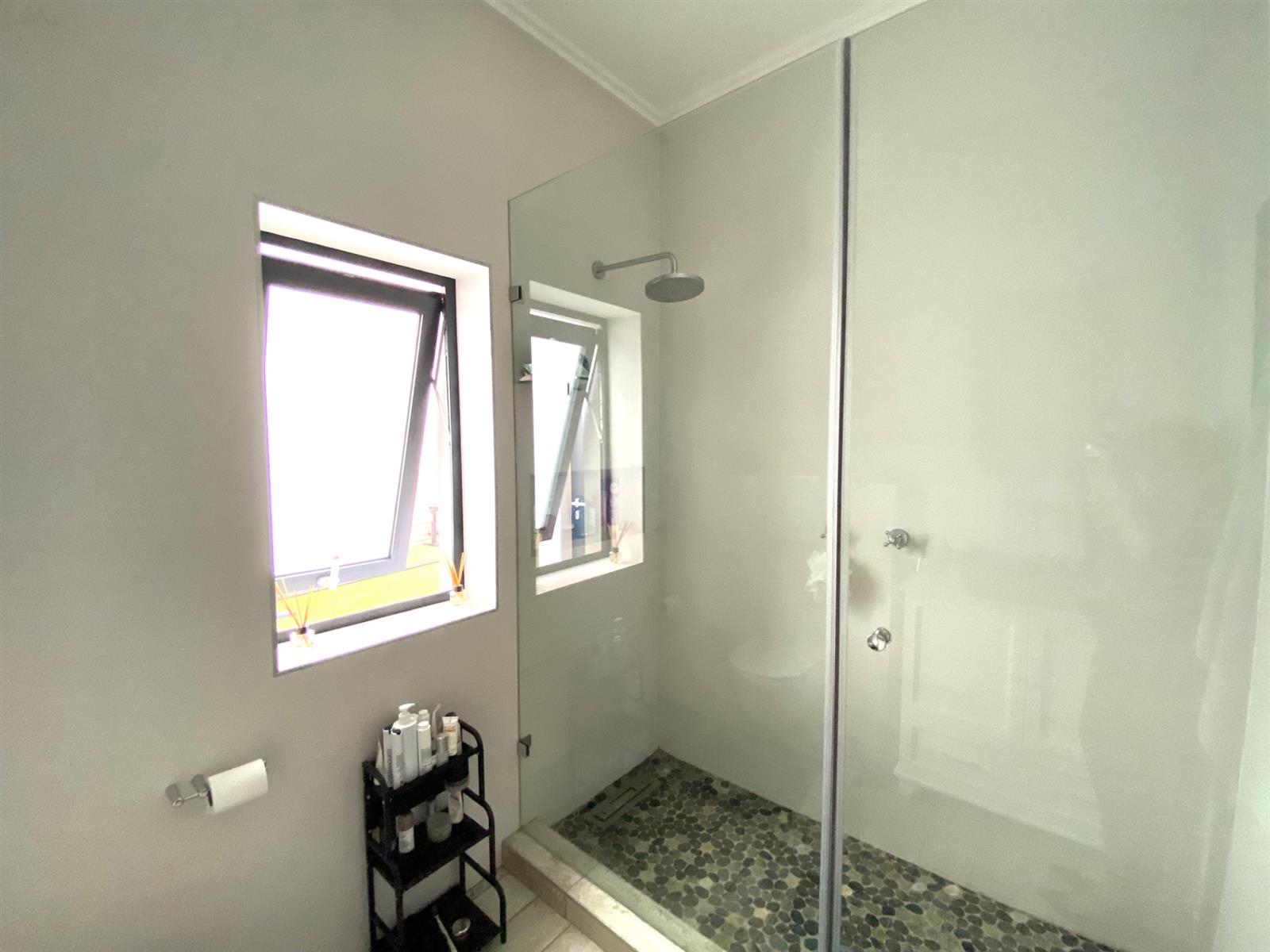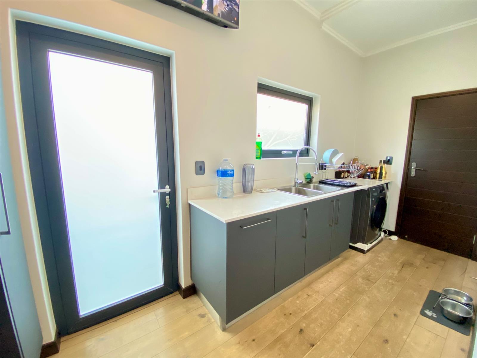 Downstairs : double garaged inter-leading to the kitchen , separated Scullery, 2 bedrooms and 2 bathrooms( Main bedroom with En-suite bathroom), guest toilet , Outside domestic Room with its own bathroom and a nice size storage