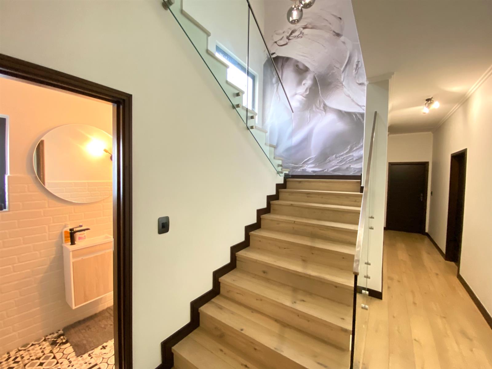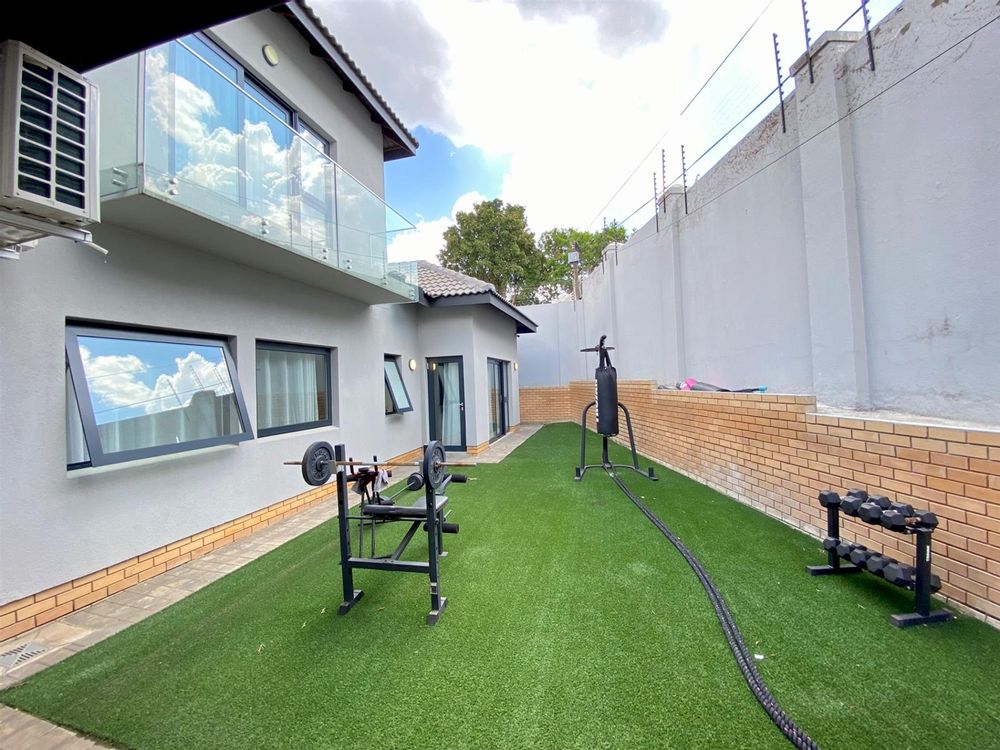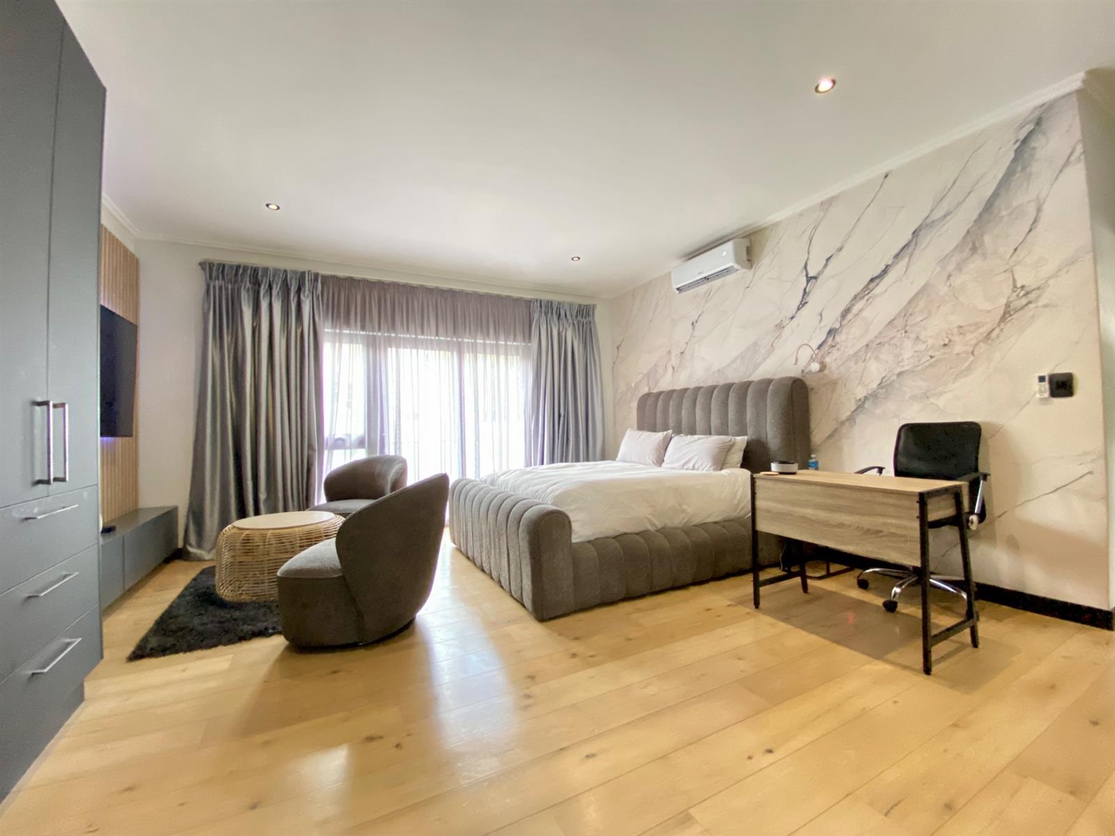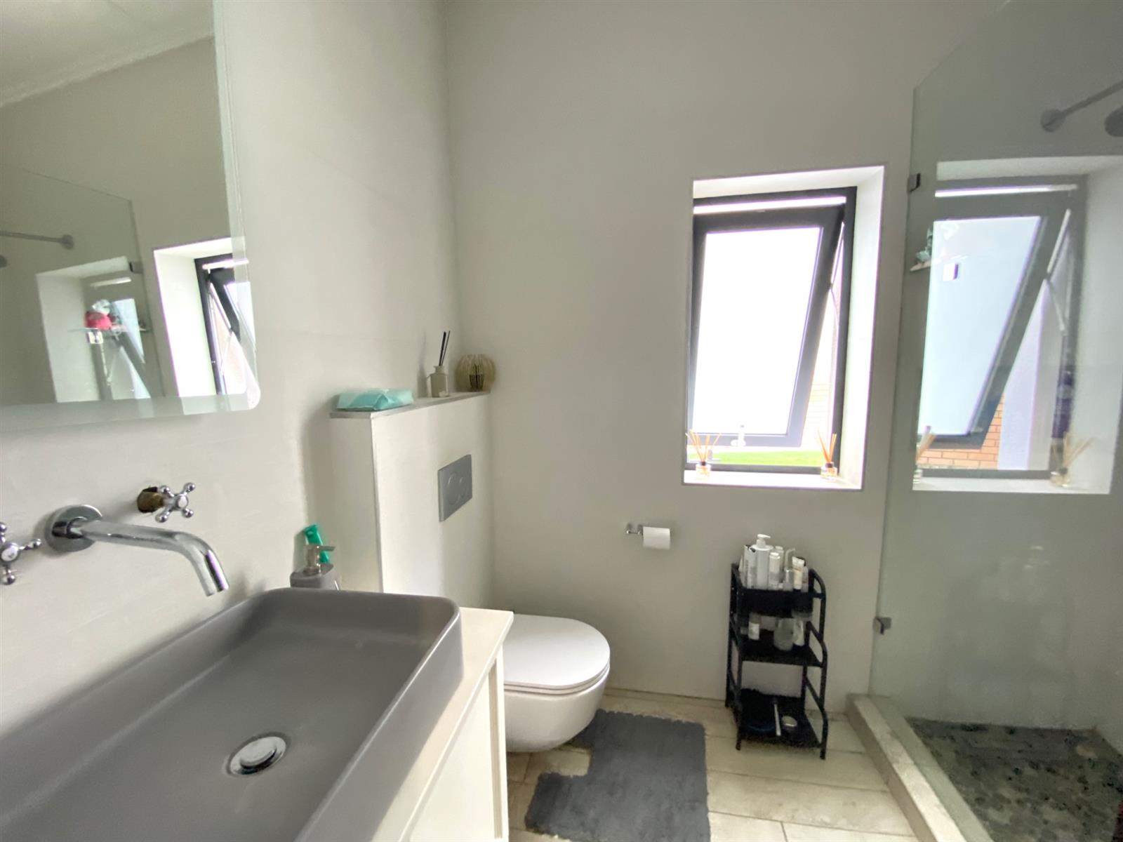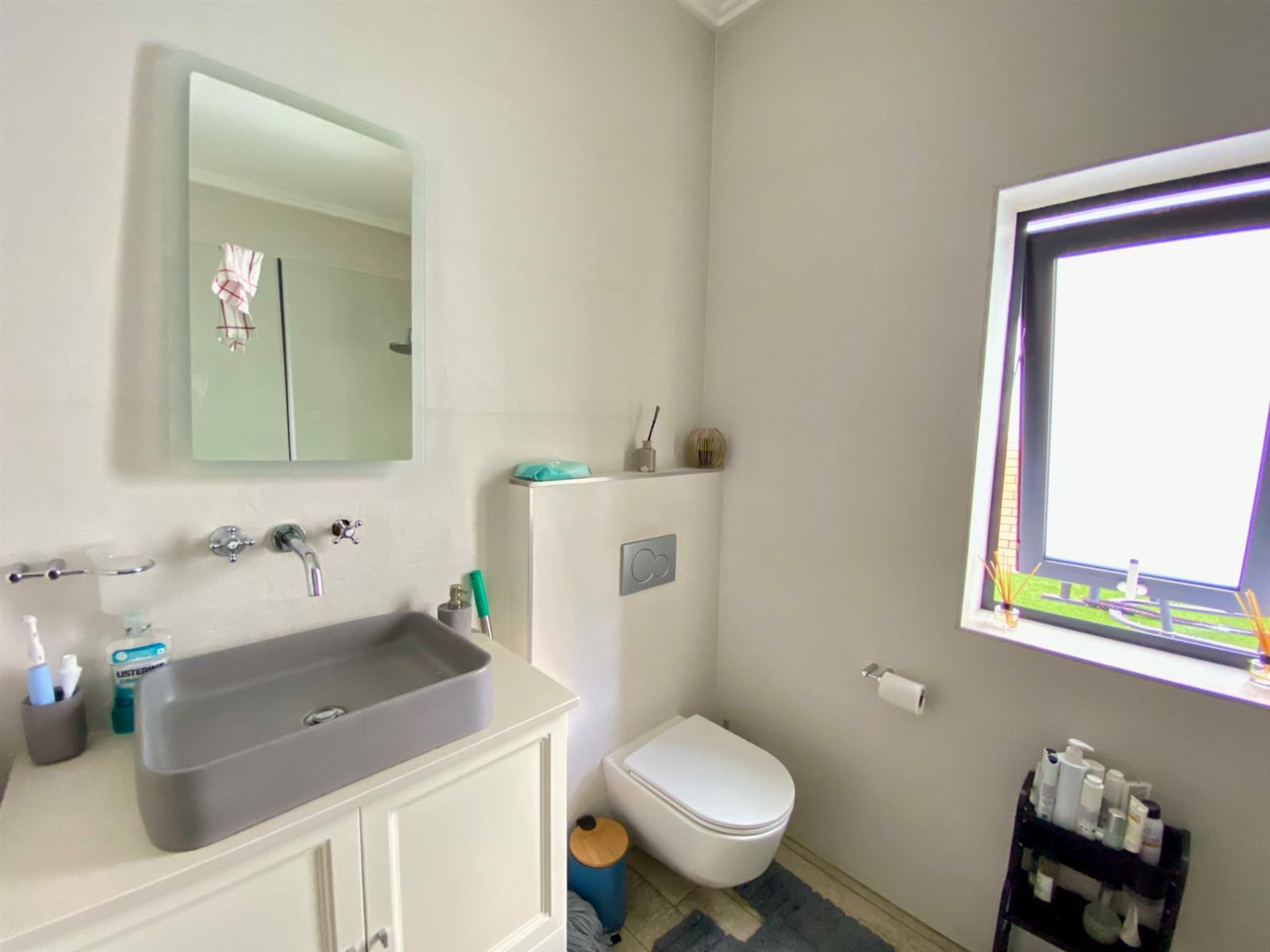Downstairs : double garaged inter-leading to the kitchen , separated Scullery, 2 bedrooms and 2 bathrooms( Main bedroom with En-suite bathroom), guest toilet , Outside domestic Room with its own bathroom and a nice size storage
