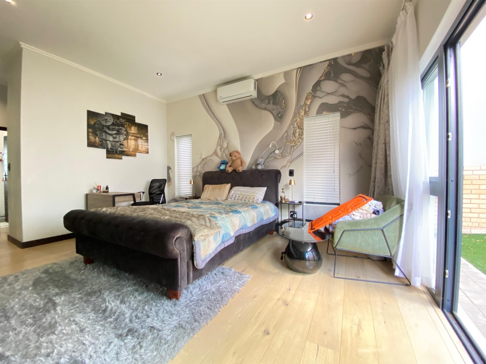 This home is Nestled in a secure Estate with a total living area of 333 square meters and sits on a spacious 528 square meter lot Perfectly designed for modern living with wooden floors and filled with natural light streaming through aluminium windows. The thoughtful layout includes a stylish staircase leading to upper floor, providing ample space for comfortable living. Each bedroom comes with built-in closets,