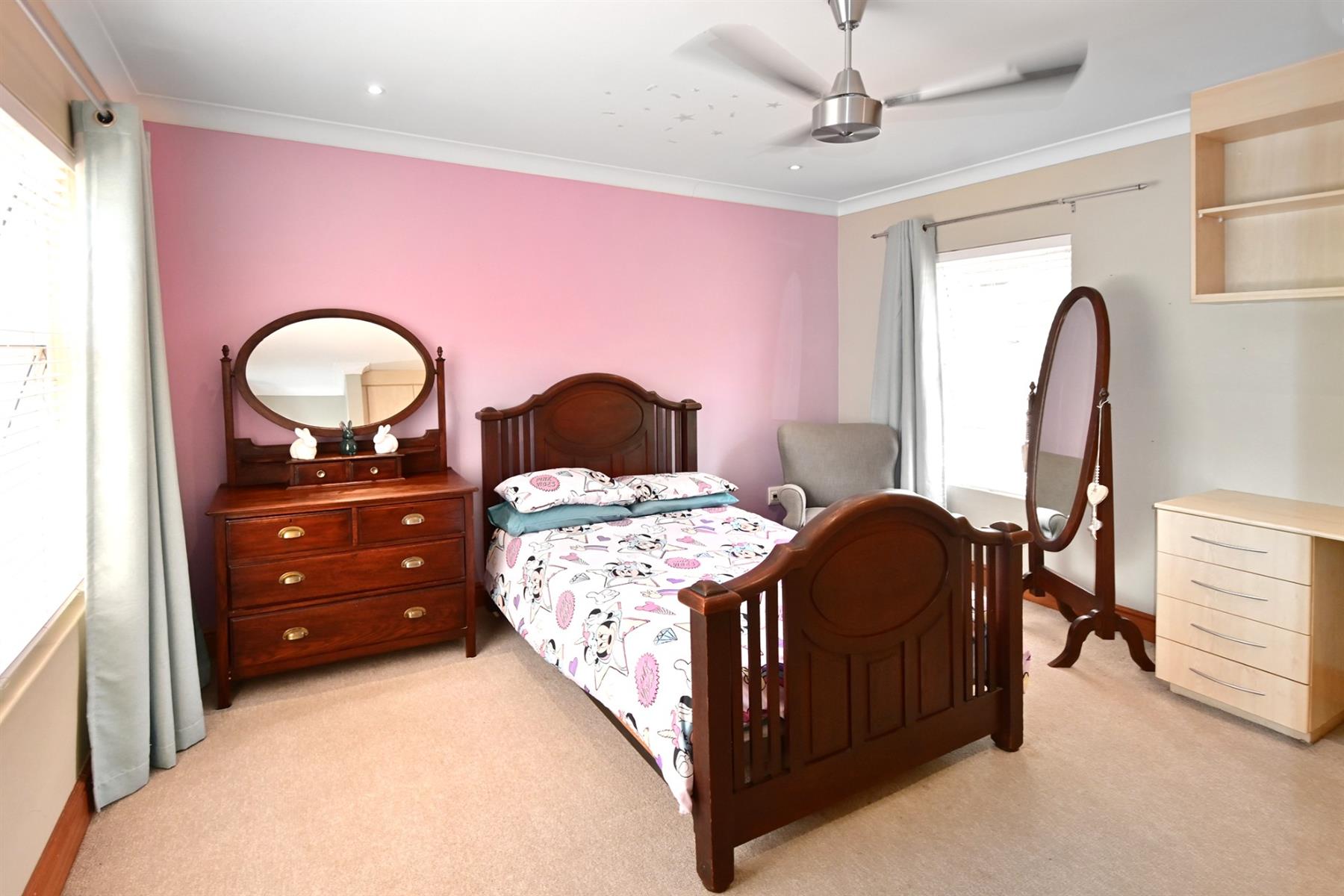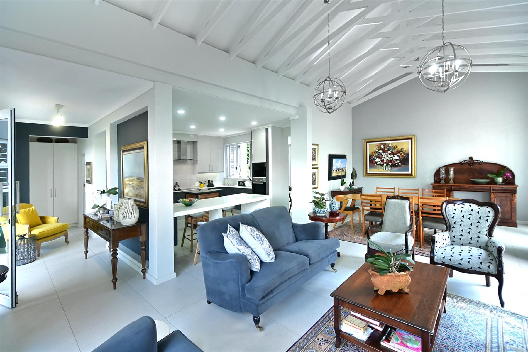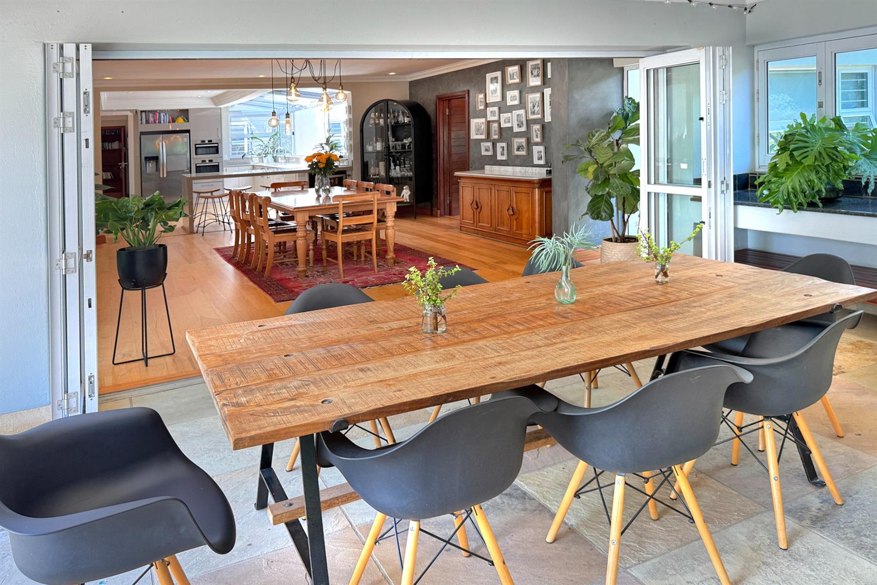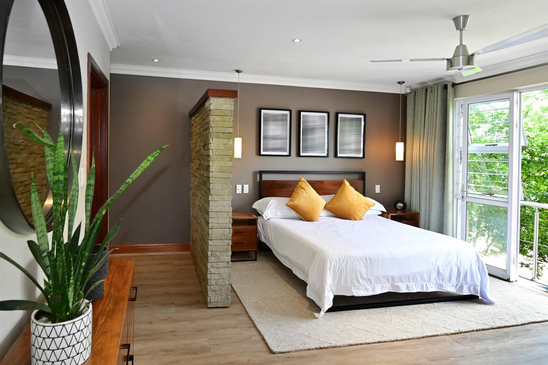 The second home (+/- 165 sqm) is equally impressive, offering double volume living spaces with exposed trusses, a statement kitchen with breakfast counter and scullery, and seamless flow to an all-weather patio. The main bedroom boasts a beautiful dressing room, modern full bathroom, a private study, and it’s own laundry. A tandem carport completes the picture.