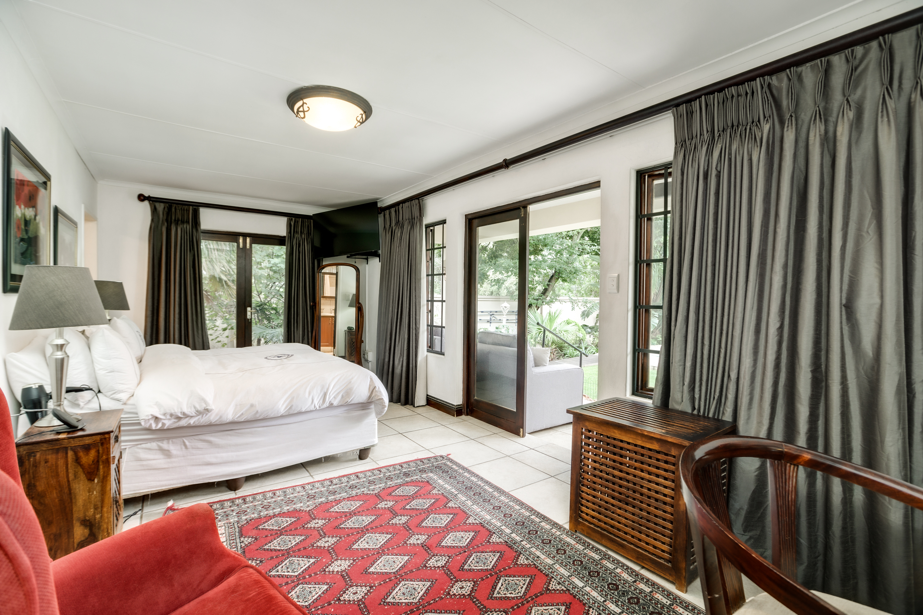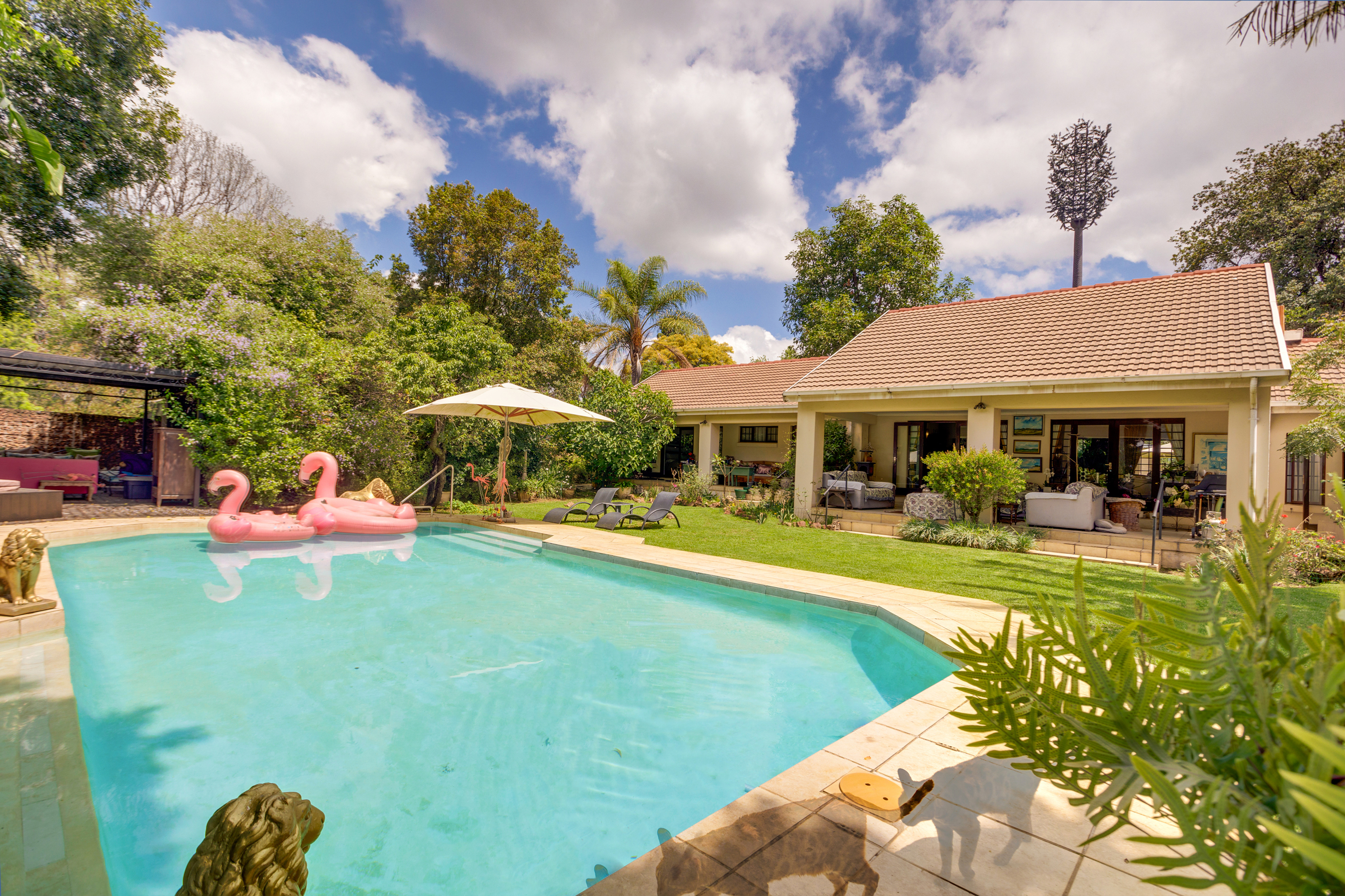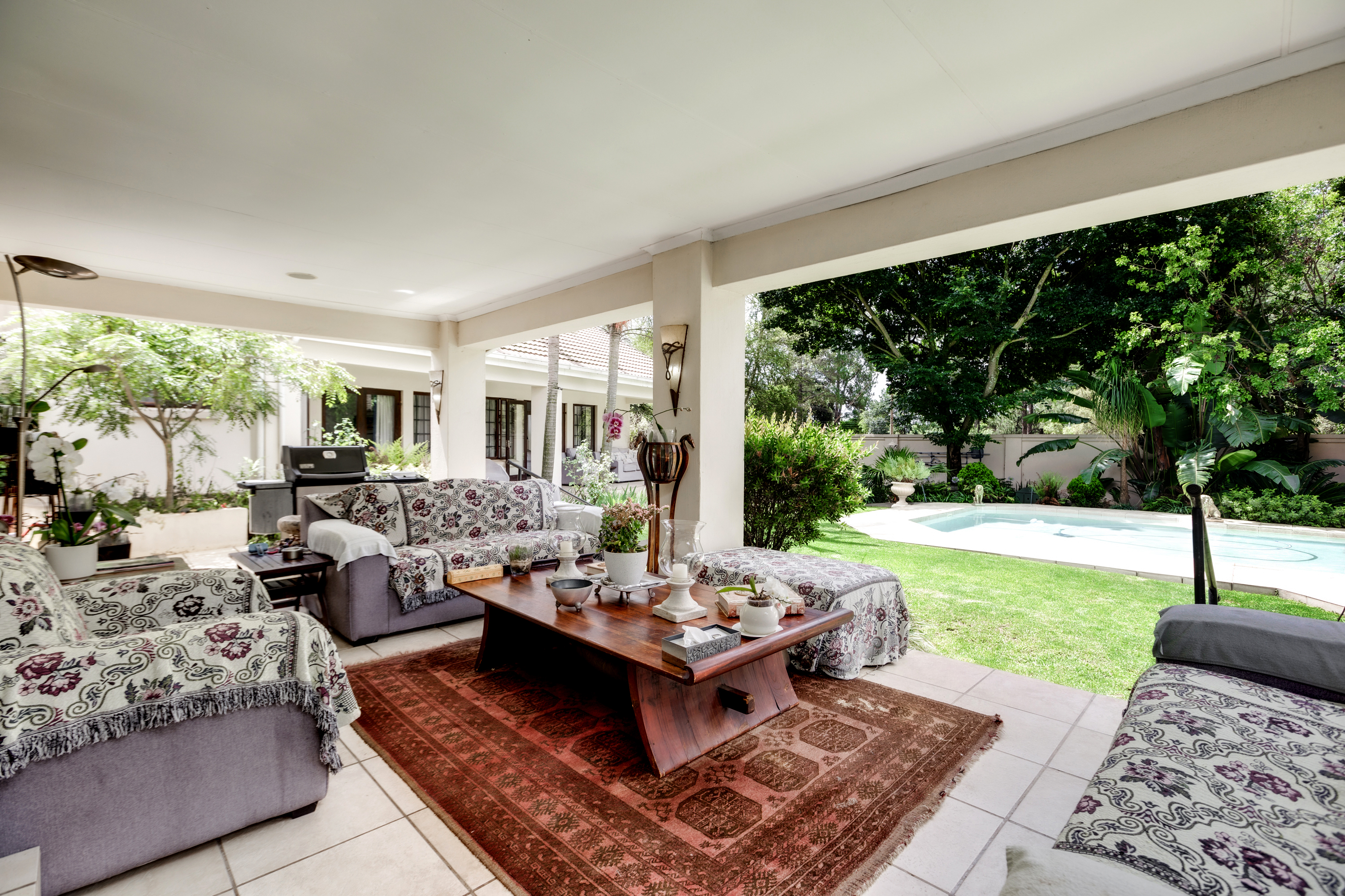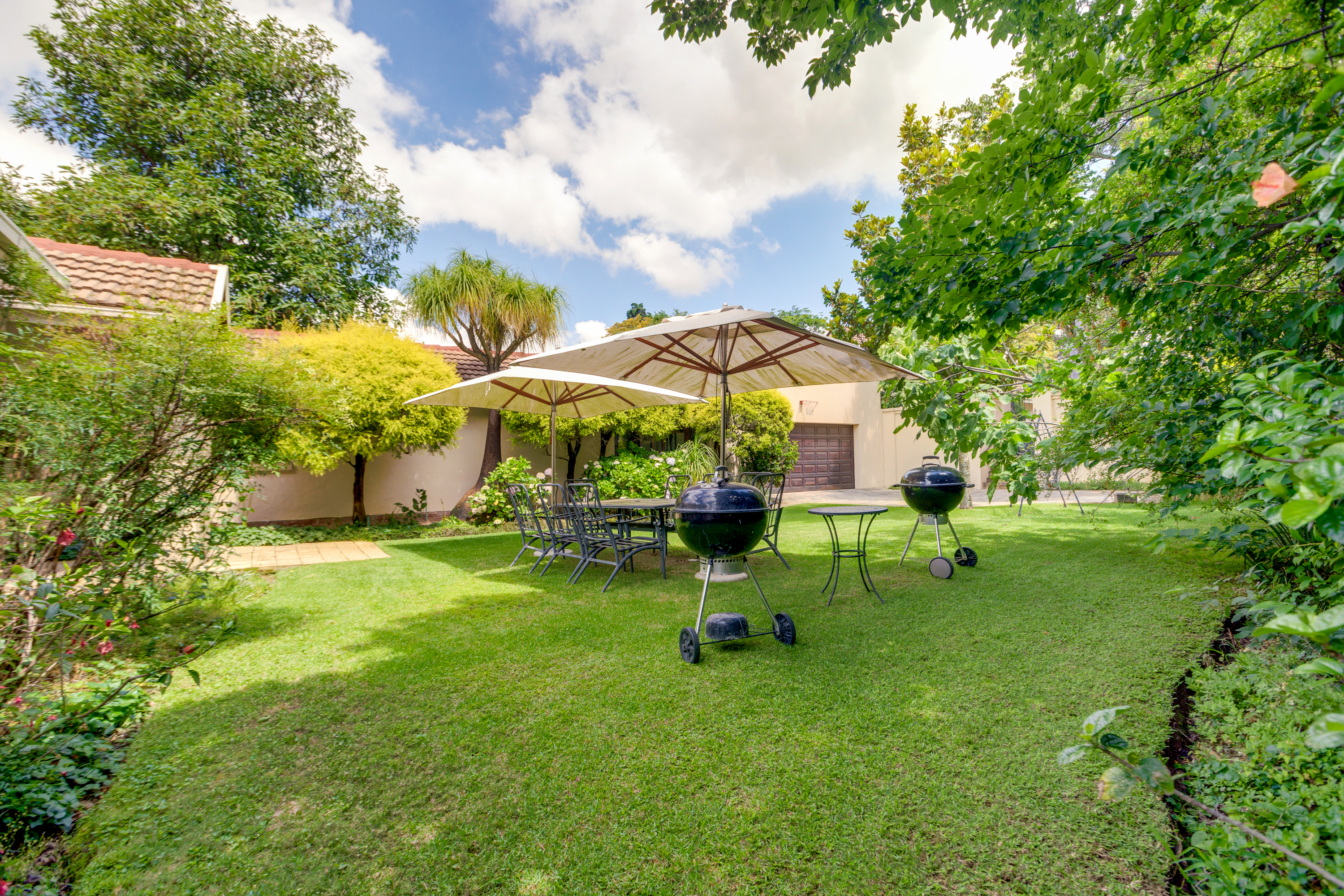 The second home enjoys a fully private entrance and driveway, ensuring complete independence from the main house. Its bright, open-plan lounge and dining area flow out to a covered patio with a built-in braai — perfect for relaxed evenings.