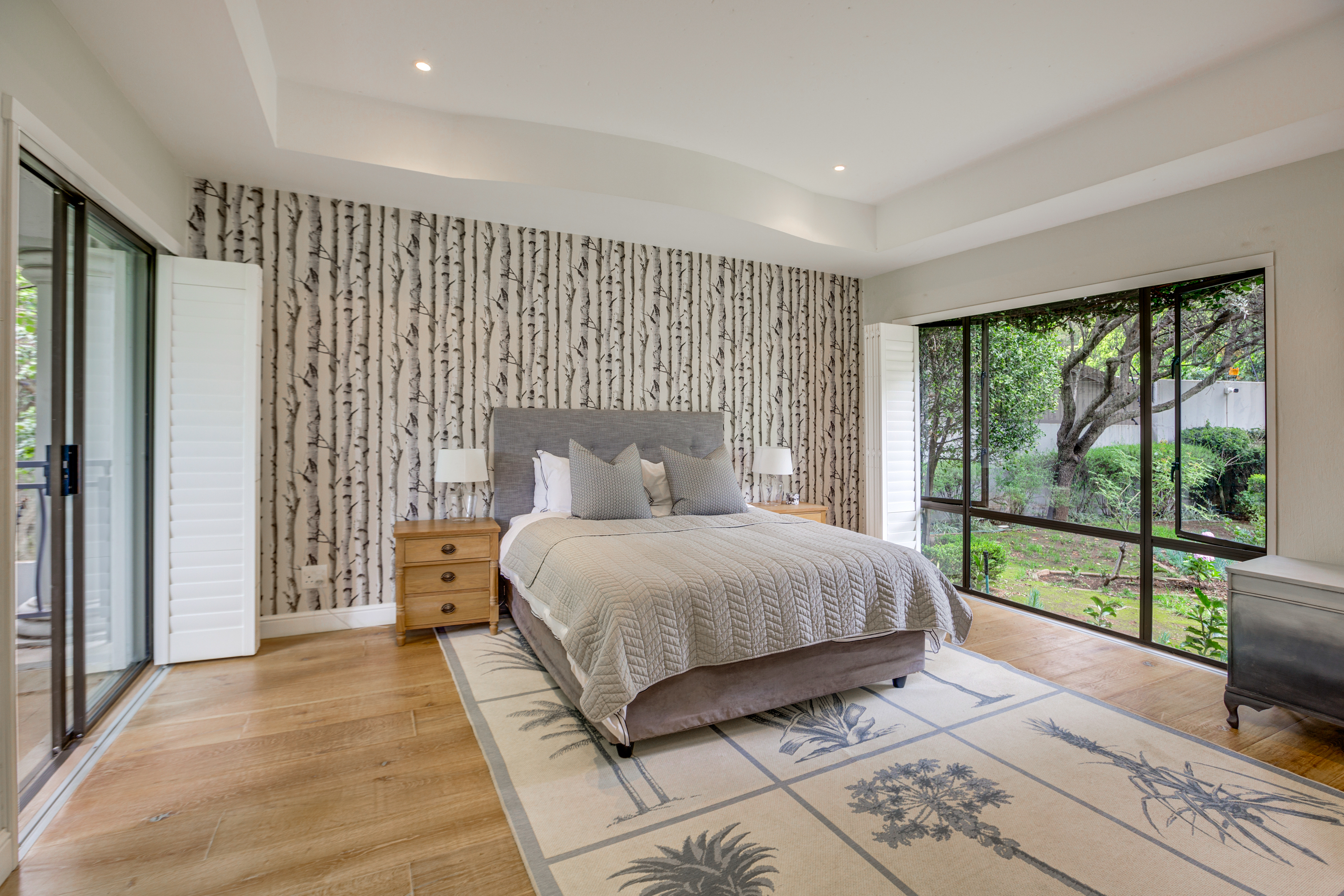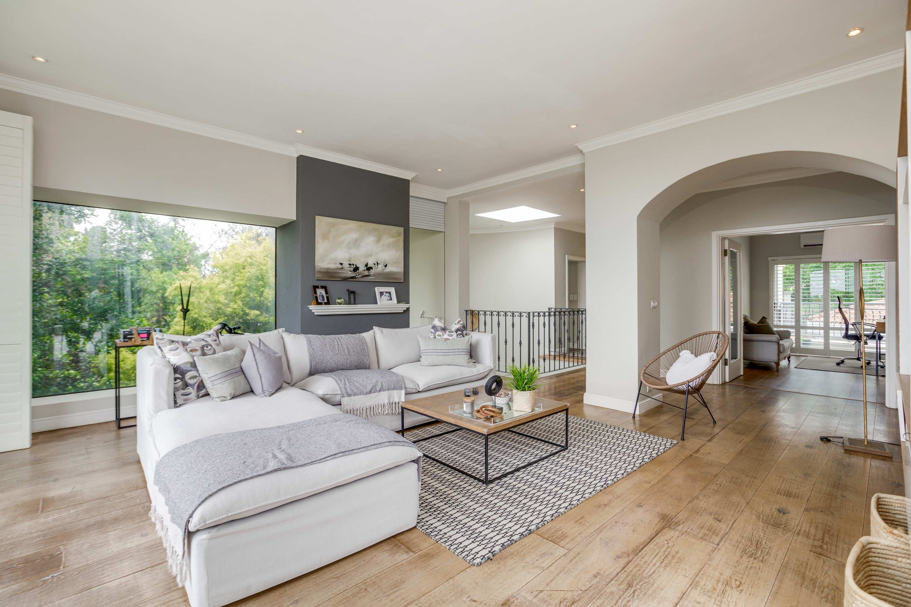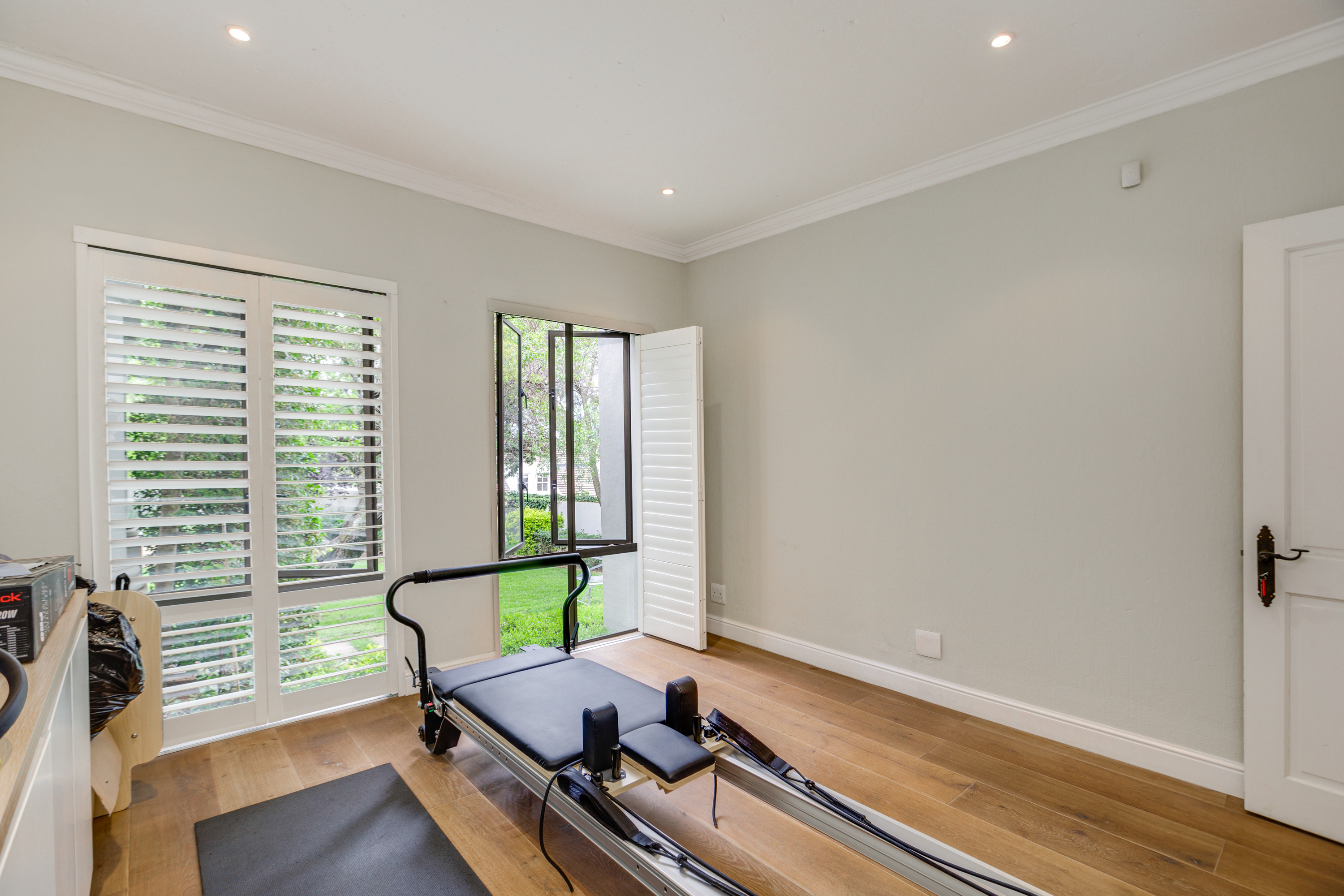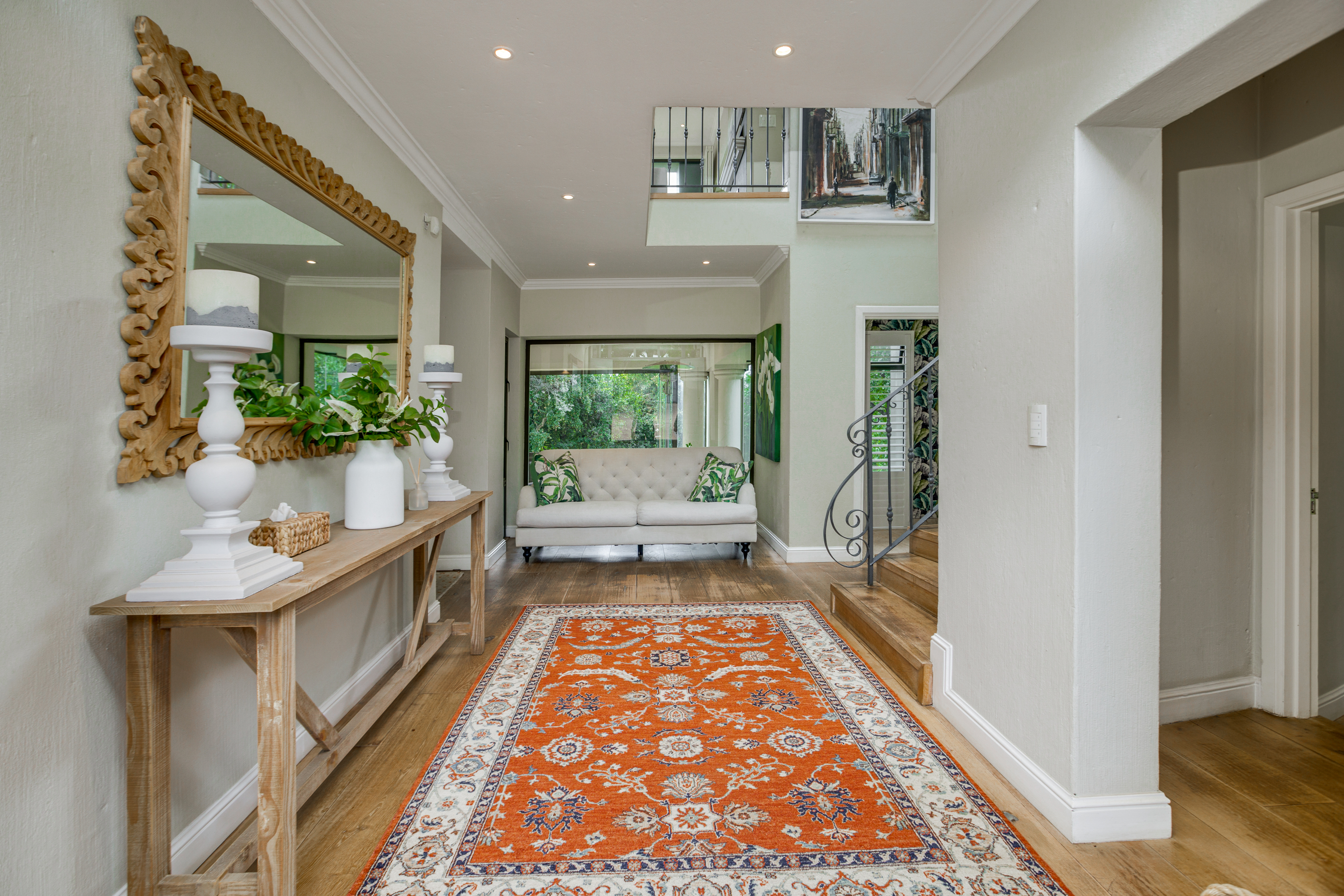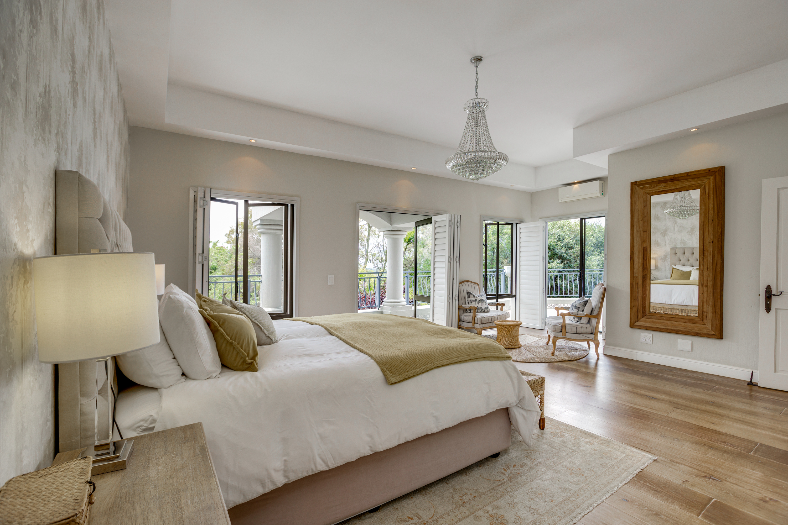 Immaculate engineered French oak flooring runs throughout, complementing newly renovated bathrooms clad in serene, neutral porcelain tones. A dramatic double-volume glass entrance hall sets a striking tone, while a private guest suite with its own Juliet balcony gazes over the garden. A dedicated games and snooker room opens through elegant French doors onto the entertainment area, enhancing the home’s leisure appeal.