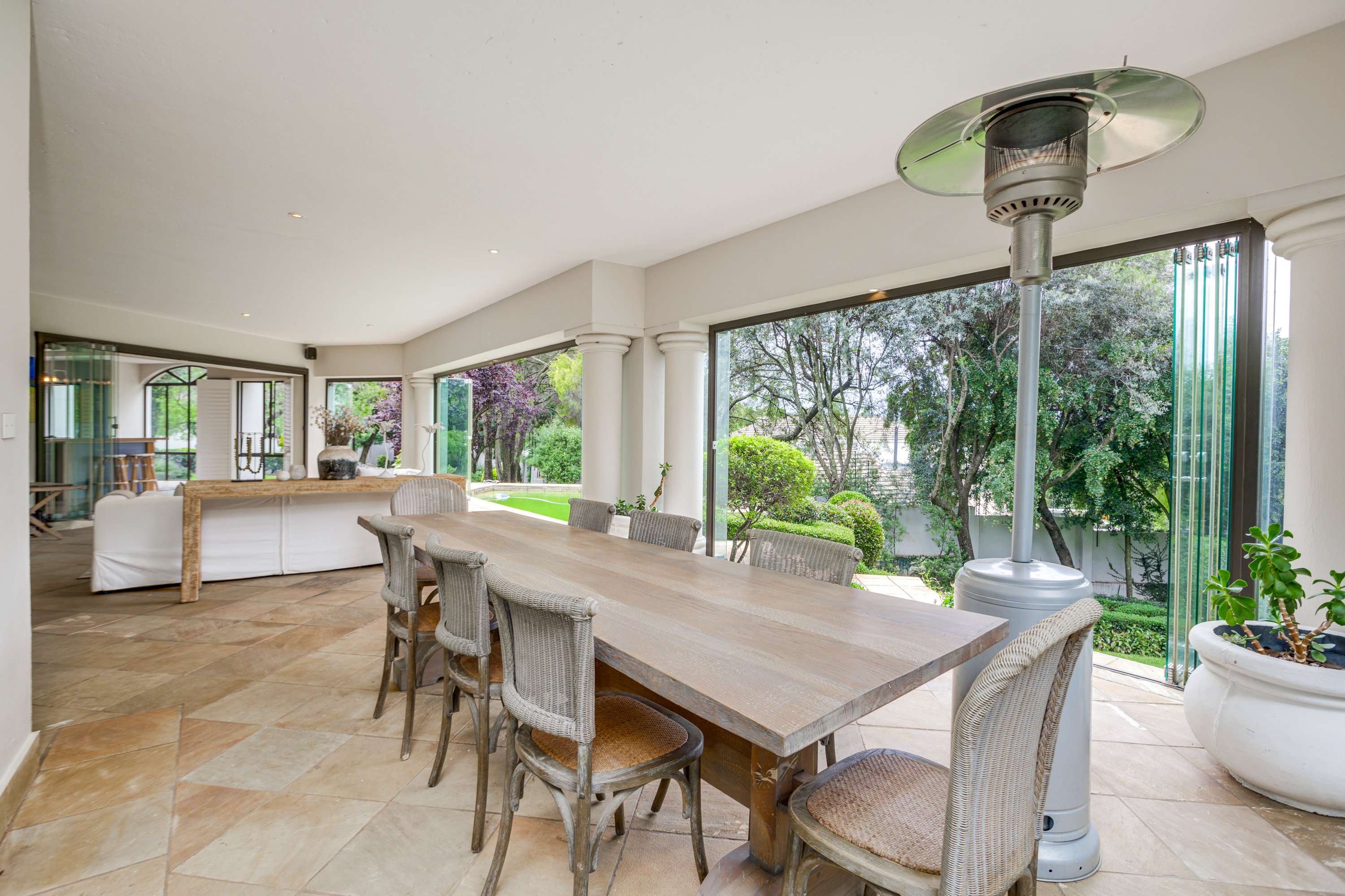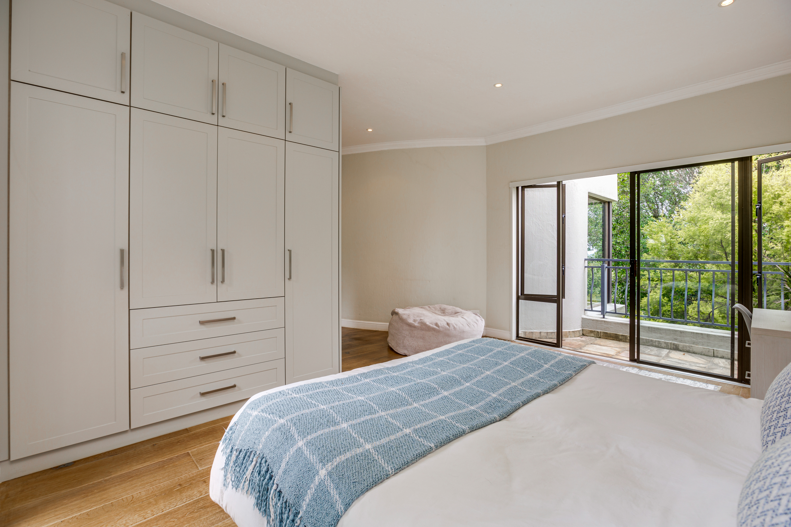 Three automated garages provide direct access into the home and are complemented by ample off-street parking, a fully fitted garden storeroom, and a complete staff suite with its own bedroom, kitchenette, and bathroom. Security is of the highest calibre, featuring a 12-strand electric fence, outdoor beams, surveillance cameras, a personalised intercom system, and 24-hour armed response. The property is powered by a premium, high-end solar system currently on a rental agreement, ensuring exceptional energy efficiency and uninterrupted comfort without the capital outlay.