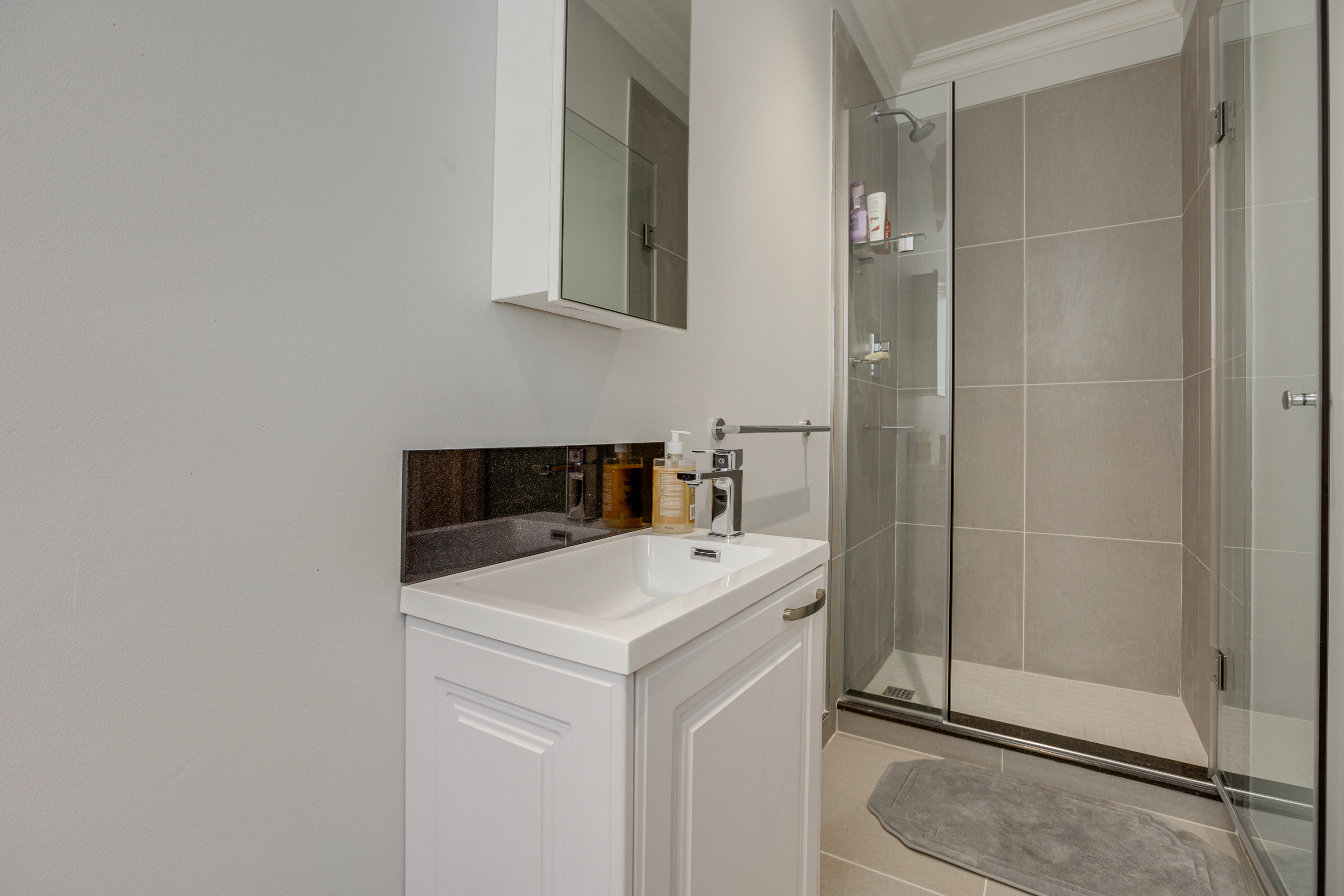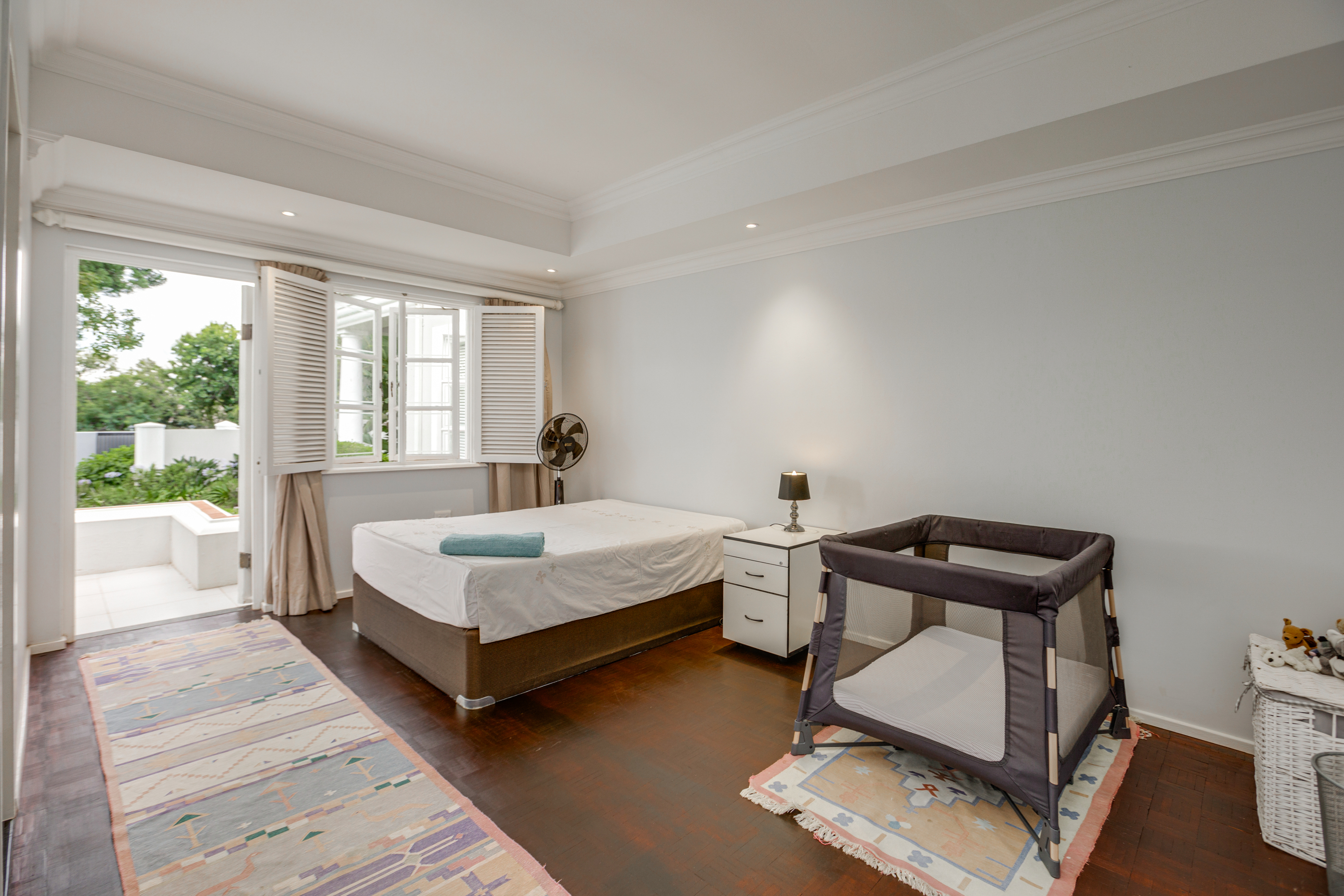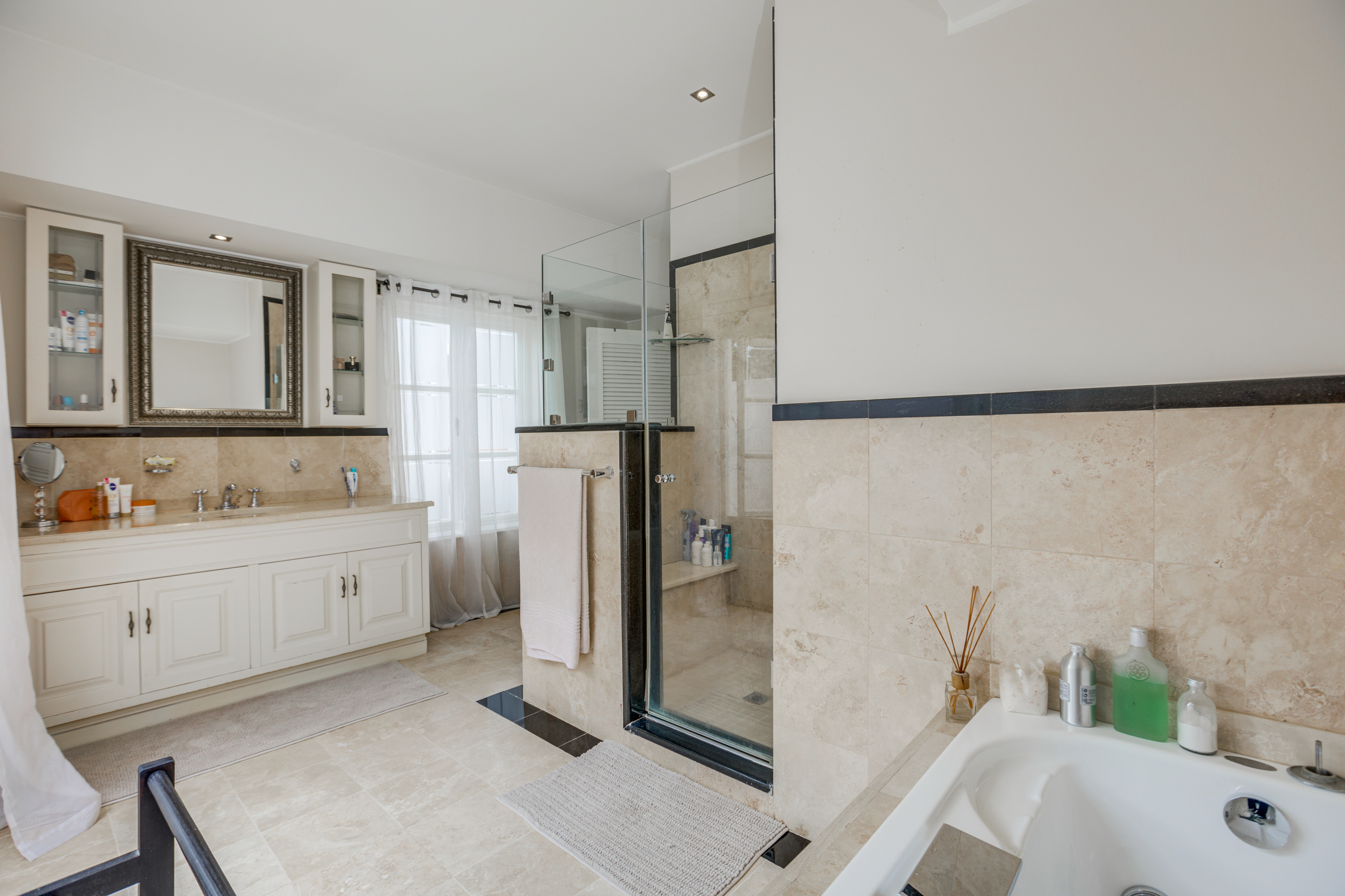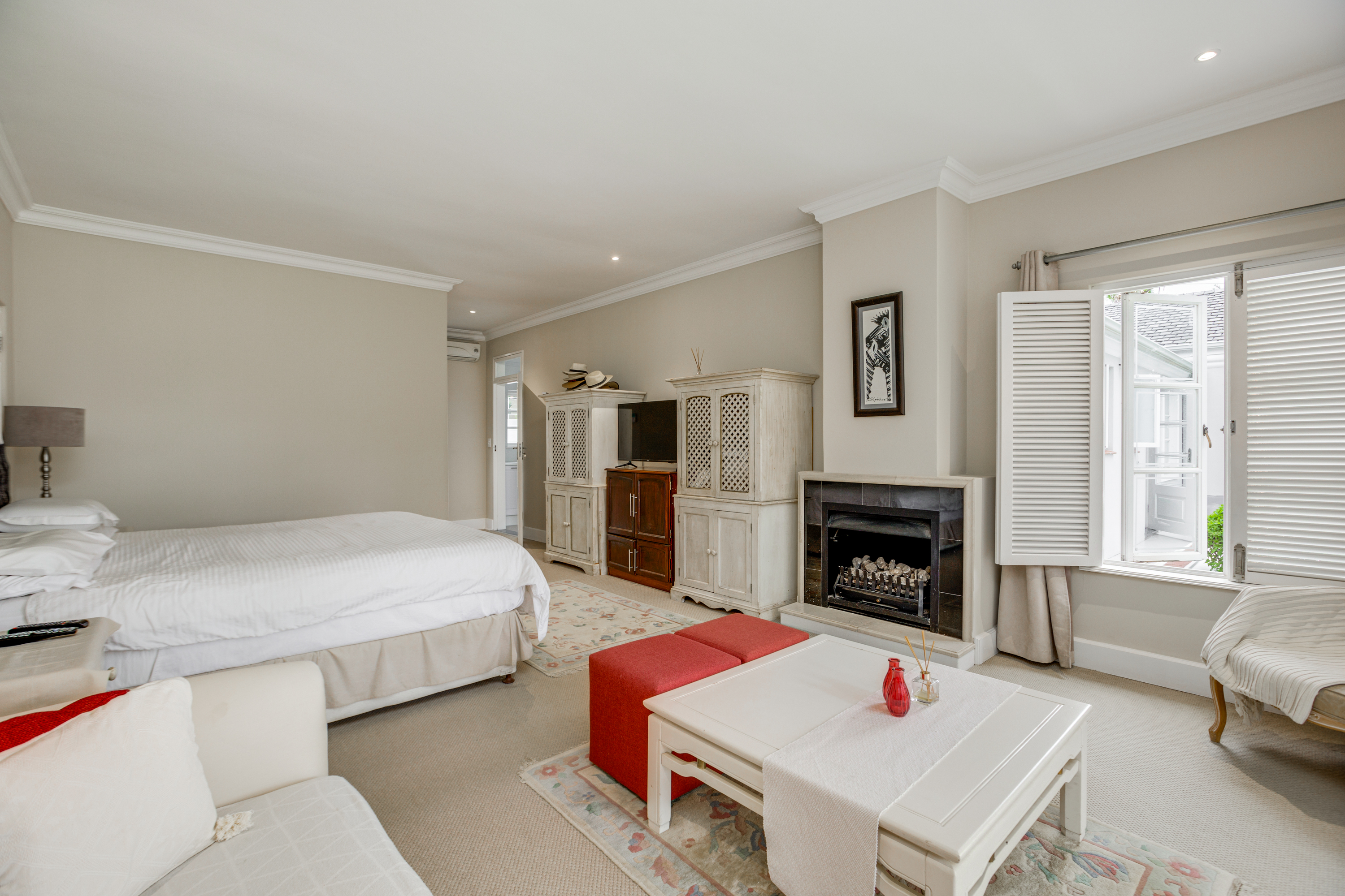 Accommodation is both luxurious and versatile, offering five generously proportioned bedrooms thoughtfully arranged across the home. Three bedrooms are located in the eastern wing, while the western wing accommodates two additional bedrooms—ideal as a guest suite or self-contained flatlet—alongside a private study. The indulgent main suite is a sanctuary of its own, featuring a dressing room, fireplace, intimate sitting area, and a sumptuous en-suite bathroom. The home offers four bathrooms in total (three en-suite, including two full bathrooms and two shower rooms), a guest cloakroom, linen cupboards, and charming ancillary spaces such as a library nook and an additional sitting area within the passageway. Elegant tiled and wooden flooring throughout enhances the home’s warm yet refined aesthetic.