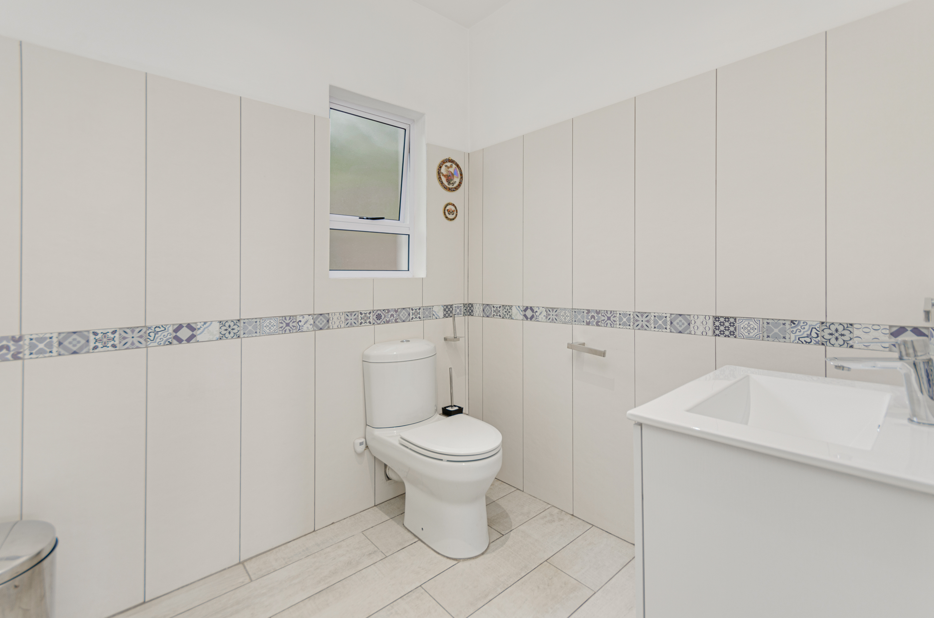 The main accommodation wing features three well-sized bedrooms. The primary suite serves as a serene retreat with its own private bathroom, while a stylish family bathroom services the remaining rooms.