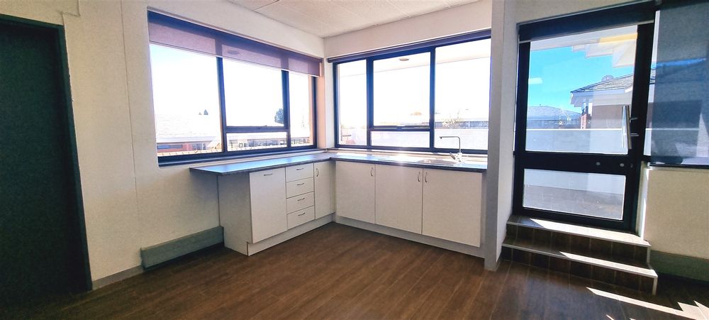 More offices than open plan areas. Kitchen located at the back of the offices with a private patio for staff.
