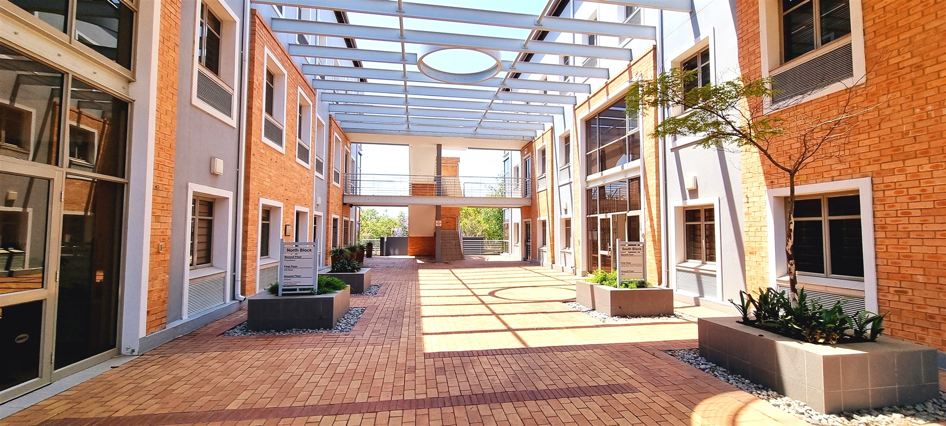 This commercial office block is tucked away in a peaceful cul-de-sac on Eaton Road, Bryanston, offering a serene yet professional setting.