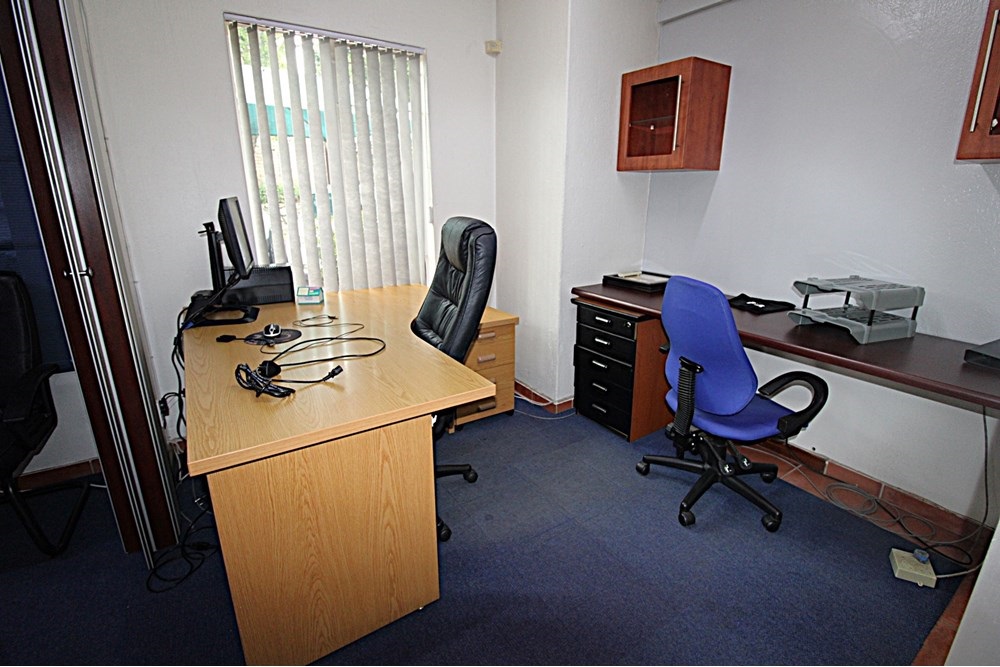 It is suitable for a single tenant with several employees or individual tenants’ requiring only one or two offices. It comprises a reception area with a CCTV camera from where access is given, a boardroom, one large office with four desks, four individual offices, each with a desk, a kitchenette, two bathrooms and two storerooms.