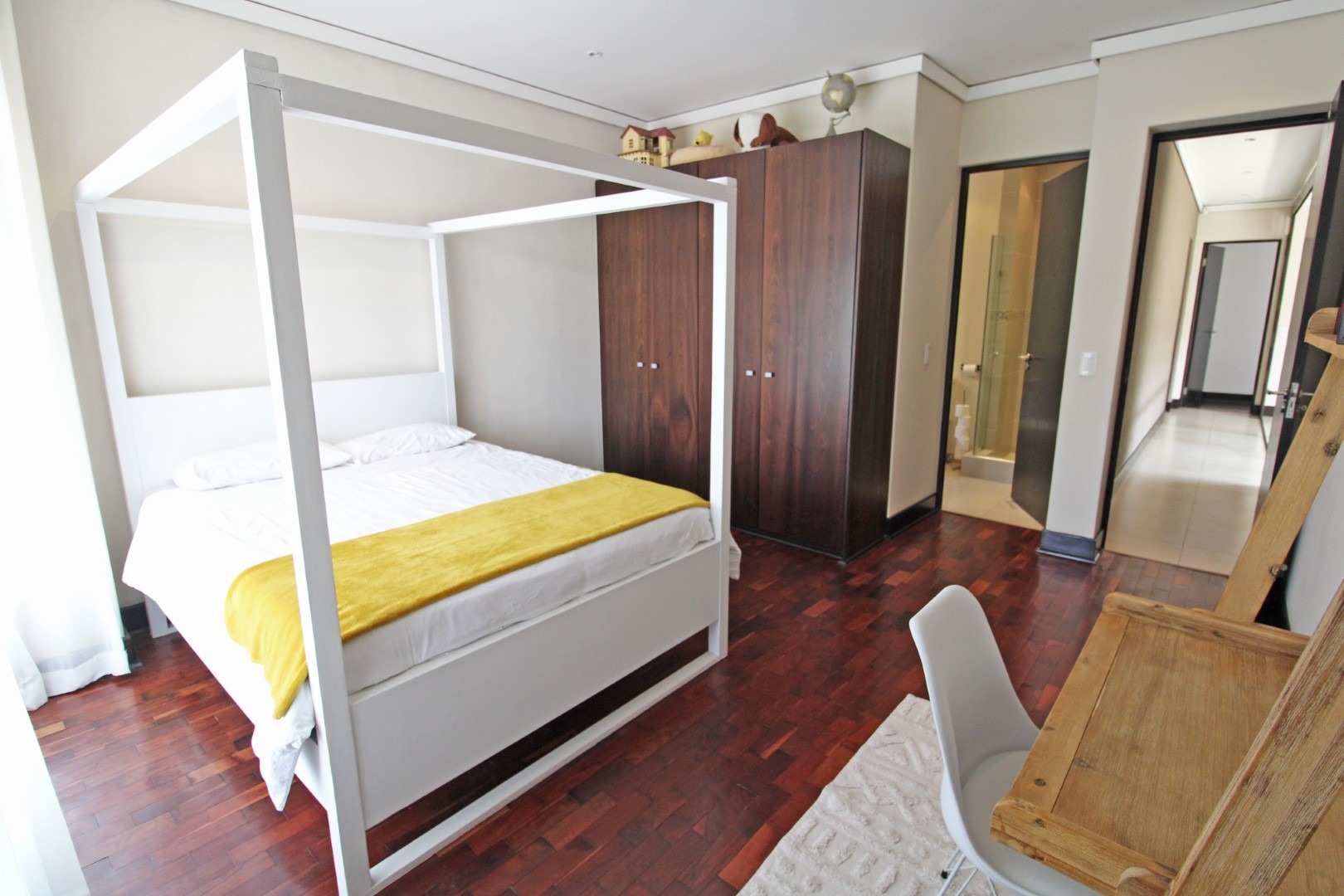 The main bedroom is light and airy and has a walk in closet and private balcony.