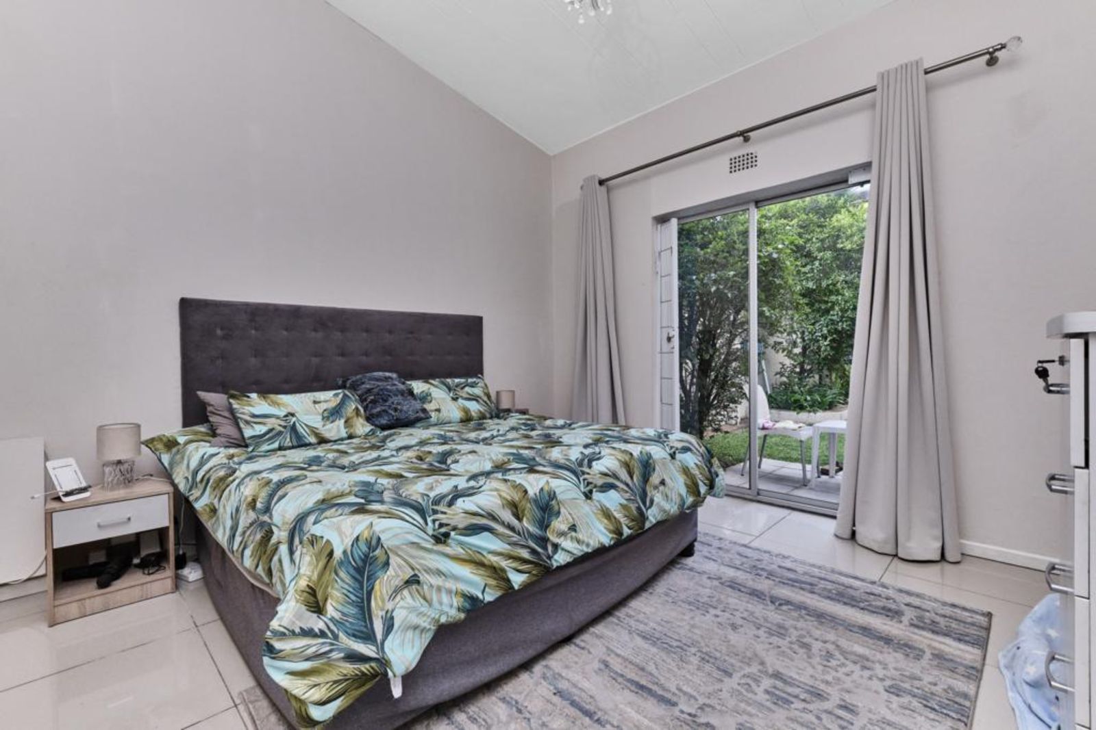 Large Main Bedroom with walk through dresser into en-suite Bathroom(Bath / shower over Bath, Toilet & Basin); main bedroom opens with sliders into Garden.
