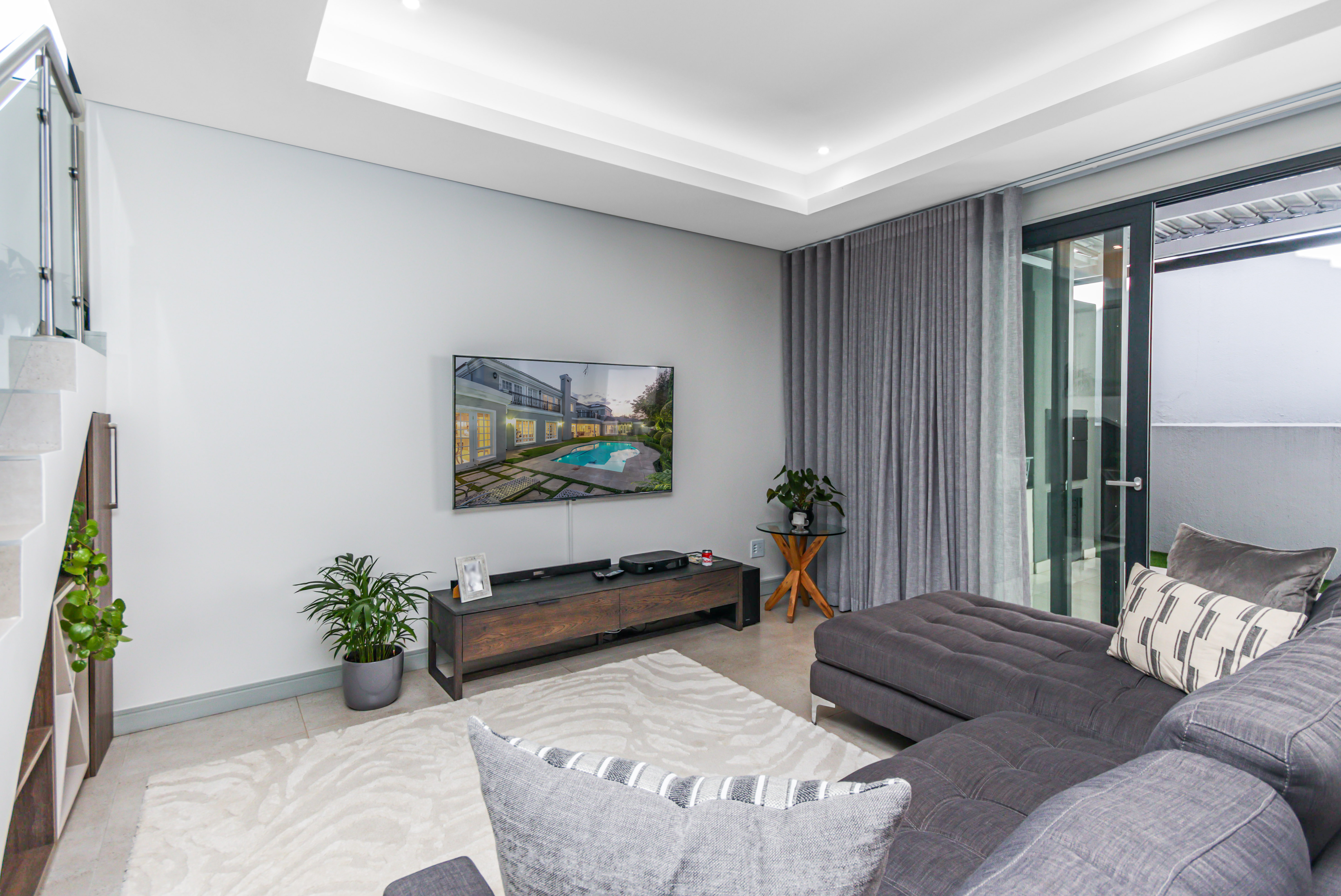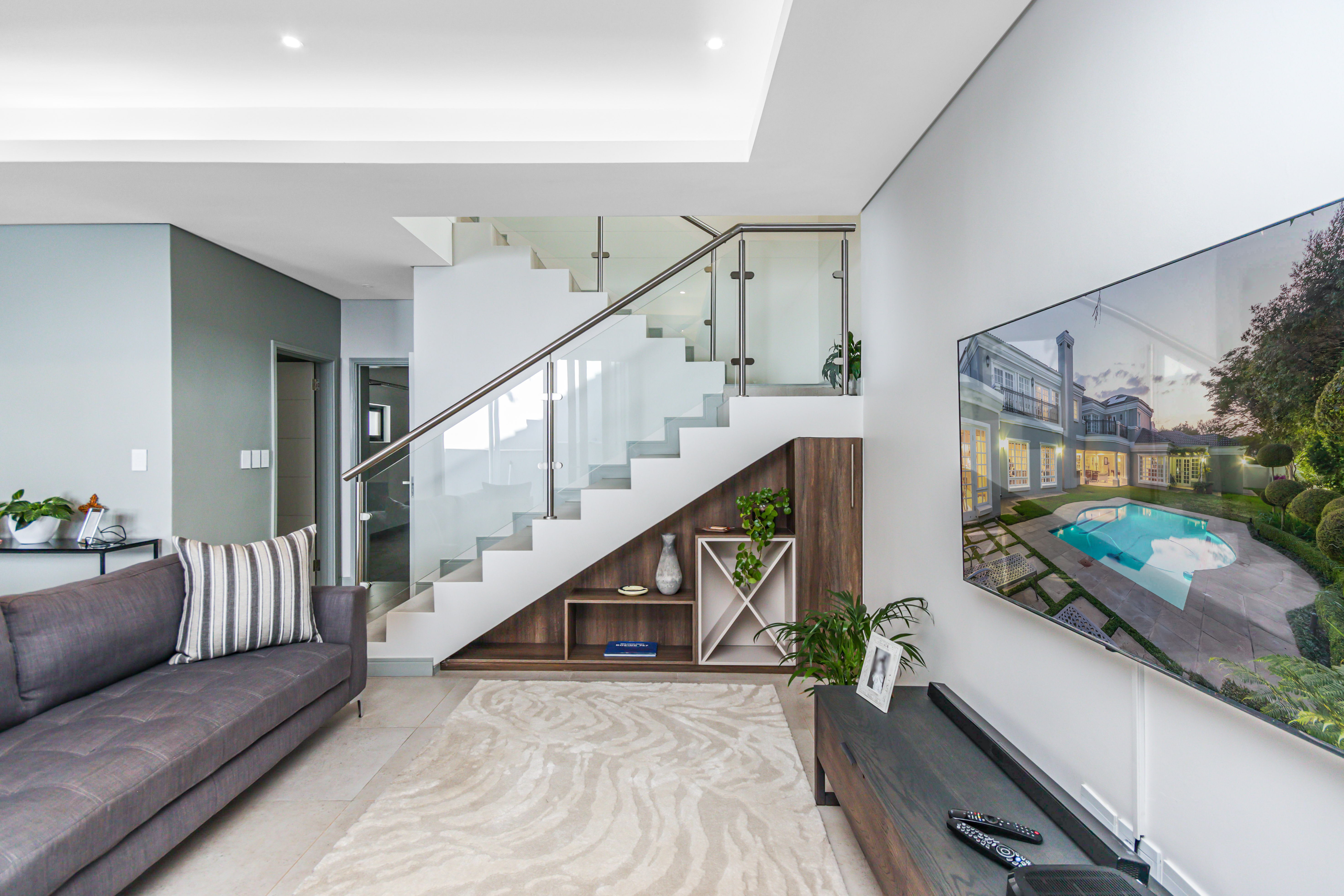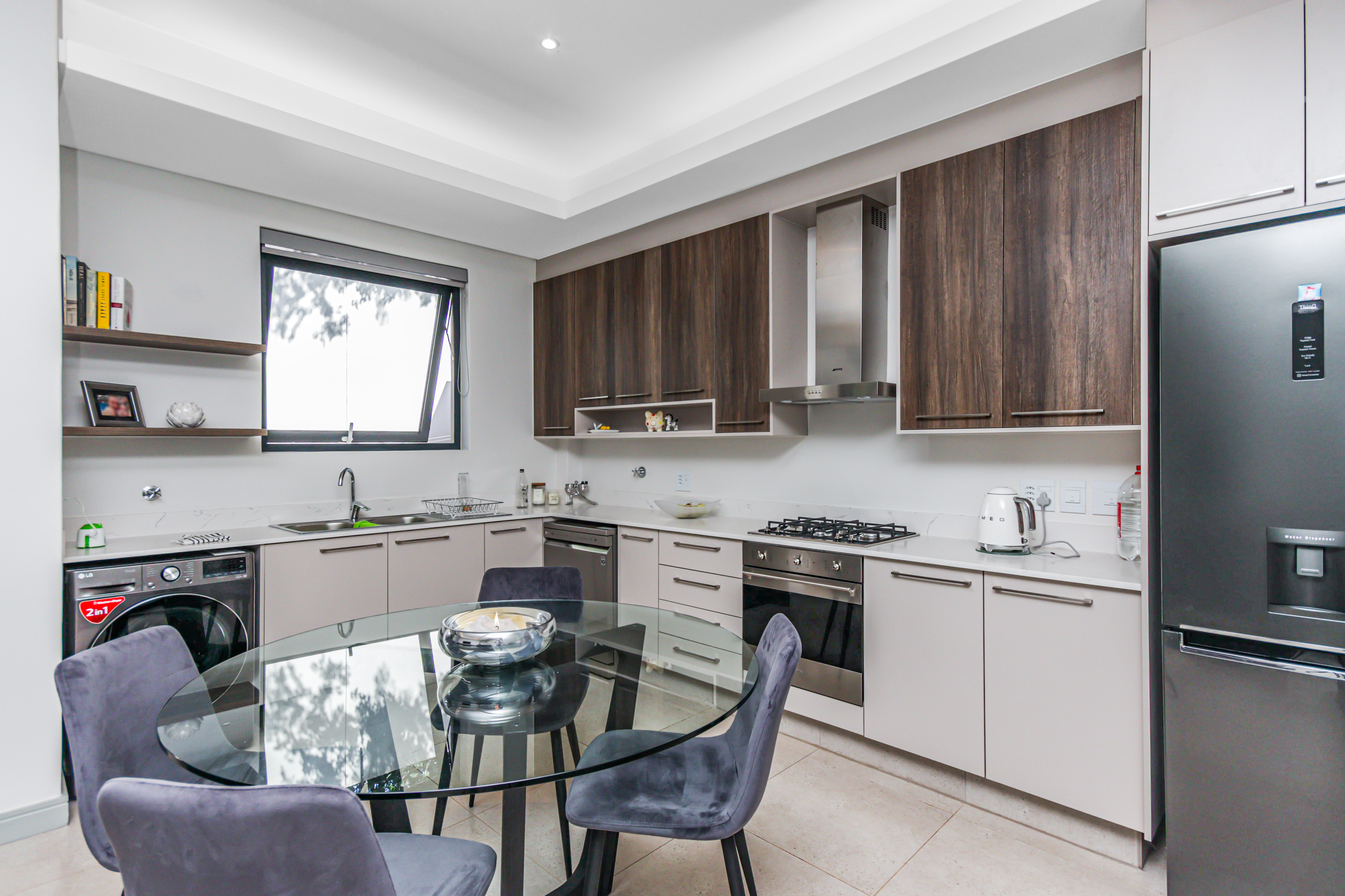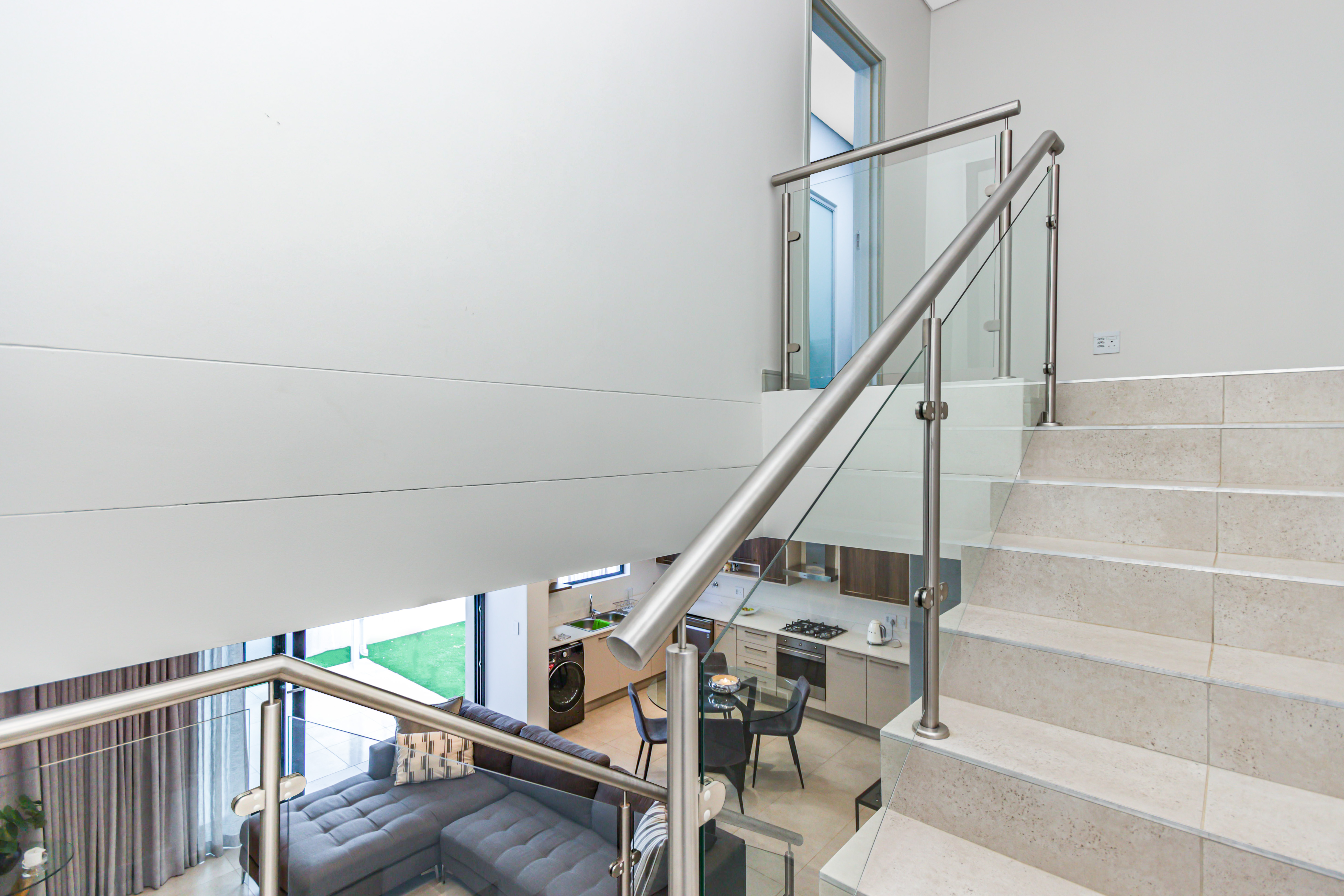 Situated in the highly sought-after Bryanston area, this beautifully finished home offers the perfect combination of luxury and functionality. With top-of-the-line finishes and spacious living areas, this property is a must-view. The home features 3 spacious bedrooms, each with laminate flooring, a private en-suite bathroom, and its own balcony. The expansive main bedroom includes a walk-through closet and a large en-suite bathroom with double sinks, a modern freestanding tub, and a glass-enclosed shower. A landing area offers a perfect space for a small study or reading nook. Downstairs, the home includes an additional guest bathroom for convenience. The modern kitchen boasts Caesarstone countertops, a gas stove and hob, and high-end cabinetry. The open-plan lounge and dining area are highlighted by a striking ceiling feature with downlights. Glass doors open out to a covered patio with an adjustable roof, ideal for year-round entertaining. The built-in braai area, complete with a work counter, adds to the appeal. This home also comes equipped with an inverter that automatically activates during load shedding, ensuring you’ll never be without power. Additionally, the complex offers a clubhouse with braai facilities and a refreshing pool for residents to enjoy. Located close to popular schools, shopping centers, and with easy access to major business routes, this home offers the perfect blend of comfort, convenience, and modern living. Don’t miss out on this modern gem in a prime location—contact us today to arrange a viewing!