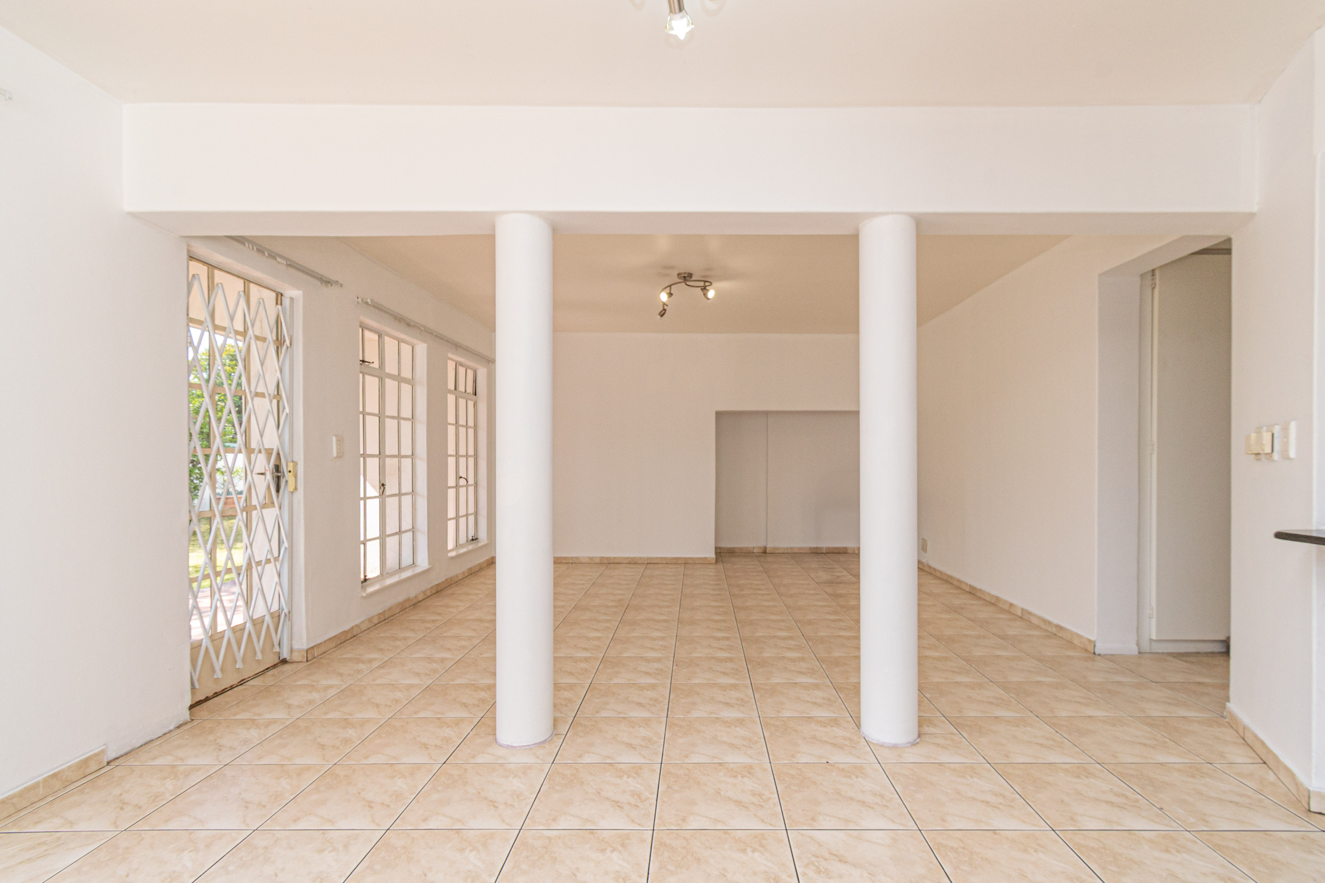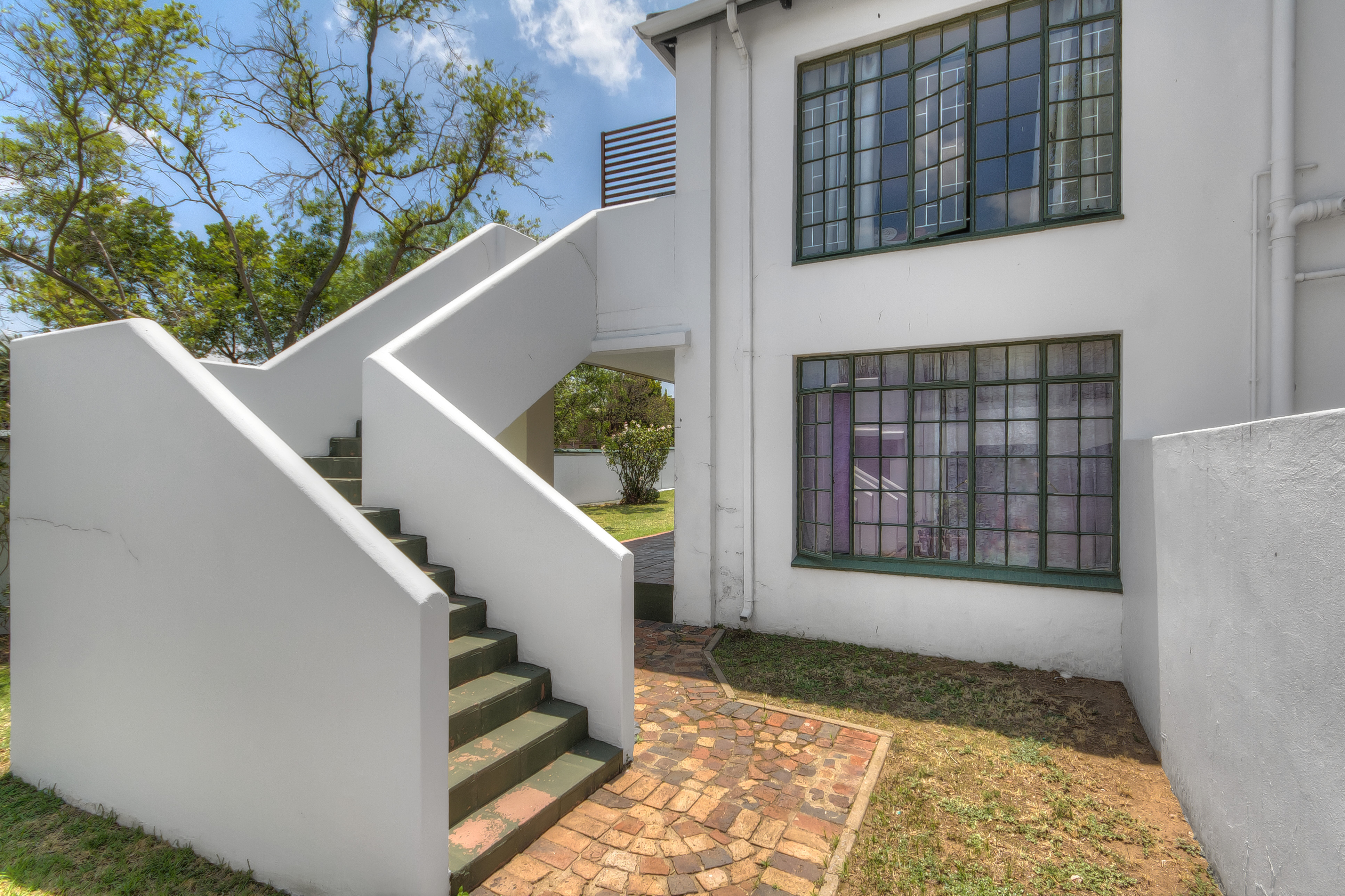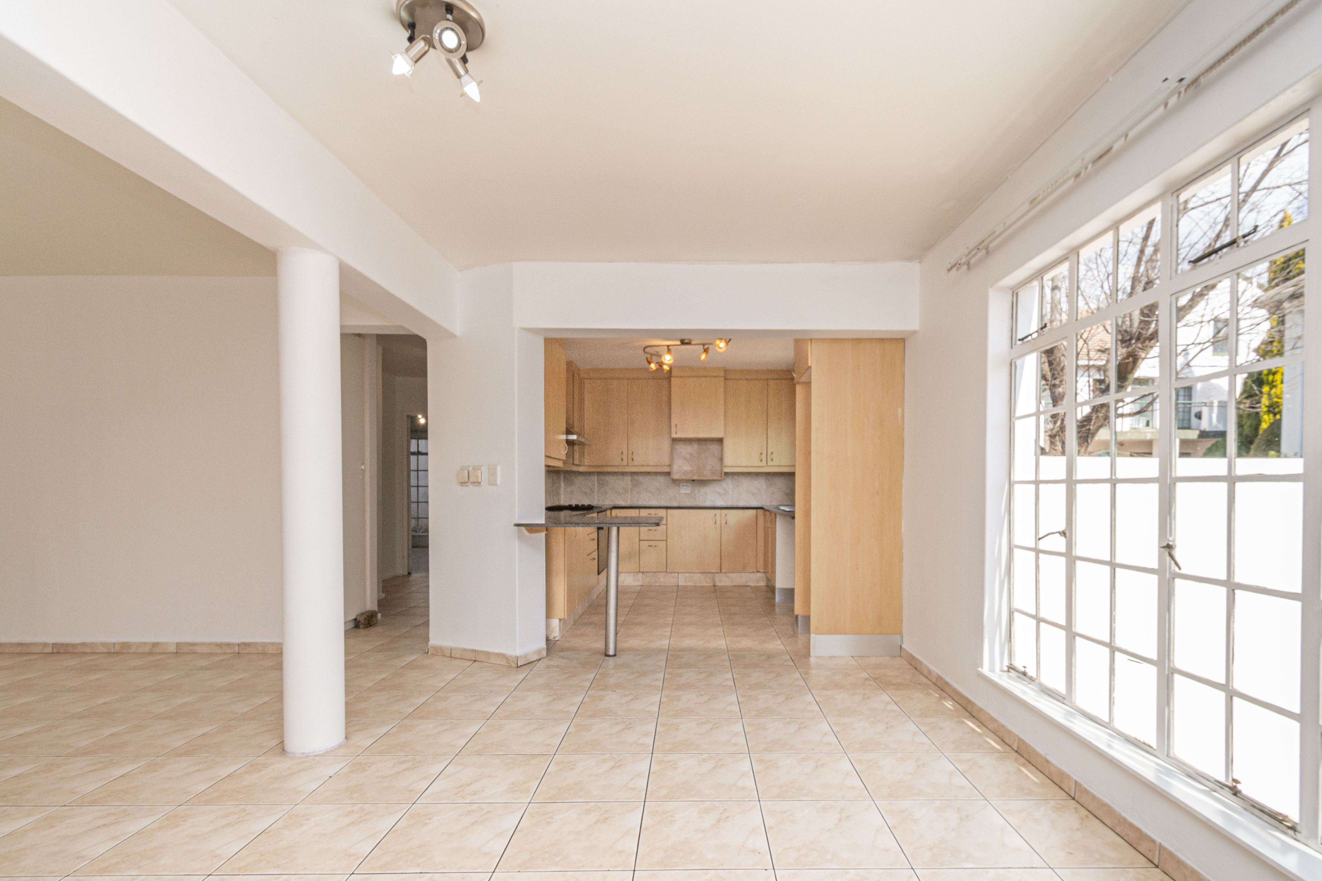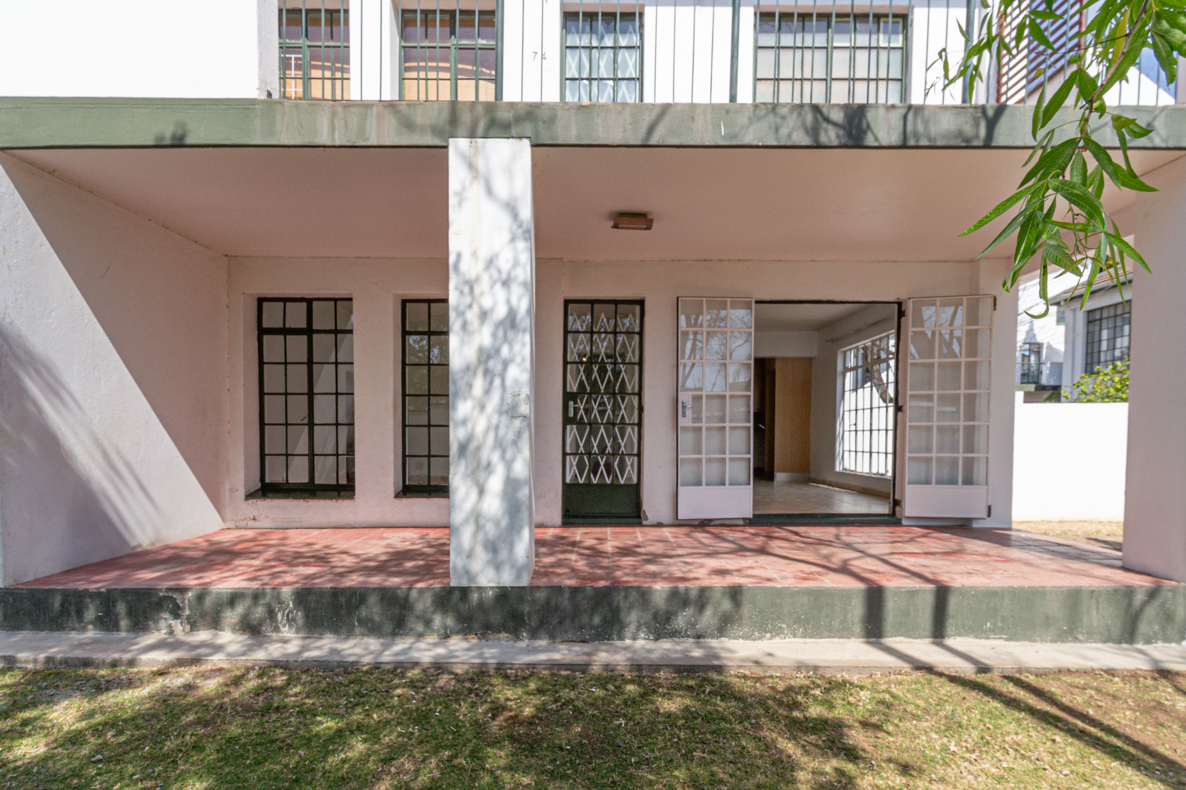 Living Area: Open-plan layout with room for a dining table and lounge suite. The living area flows effortlessly onto a covered patio that opens to a charming communal garden, perfect for relaxing or entertaining.