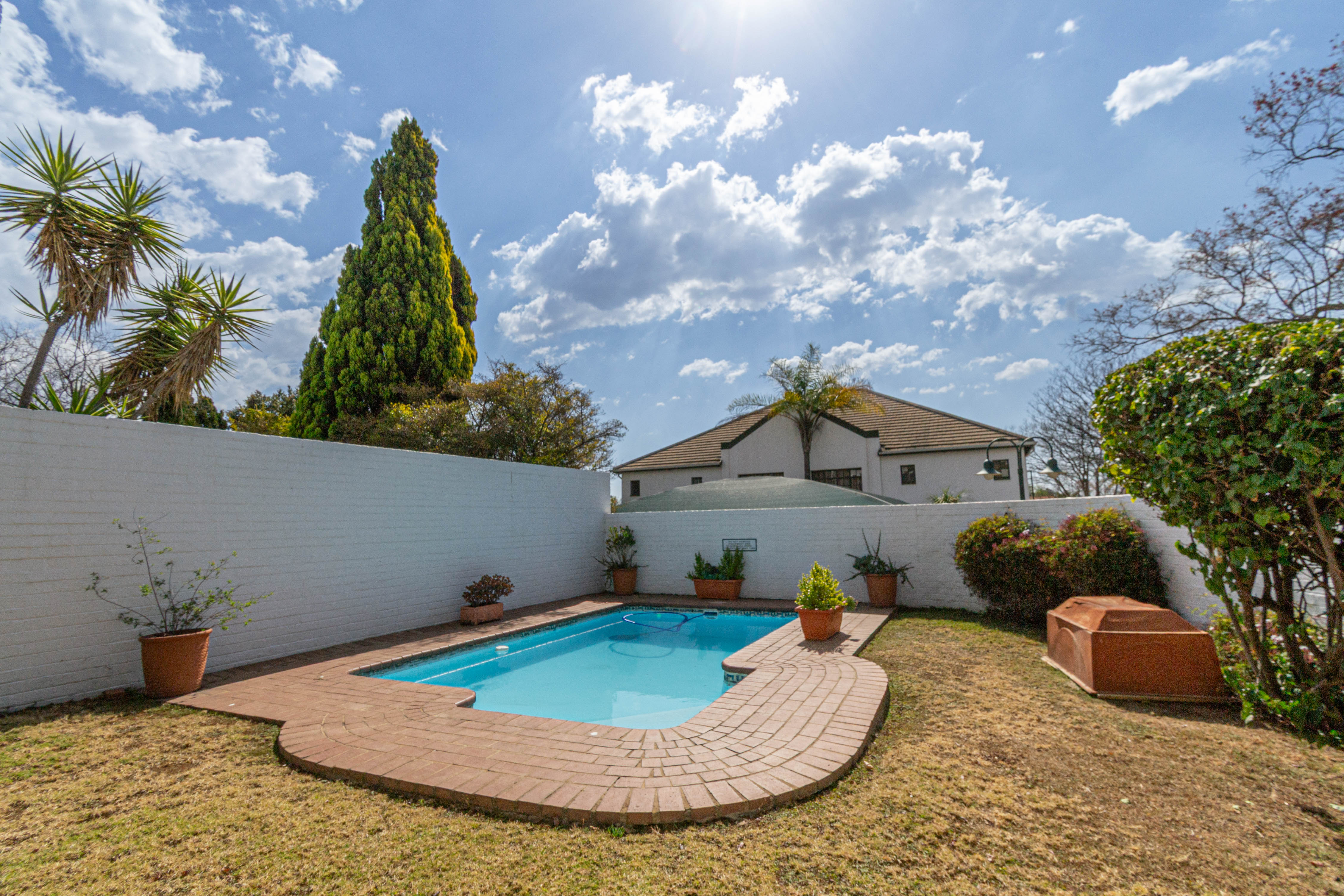 Swimming Pool: Fully enclosed for safety, with a covered patio for added convenience.