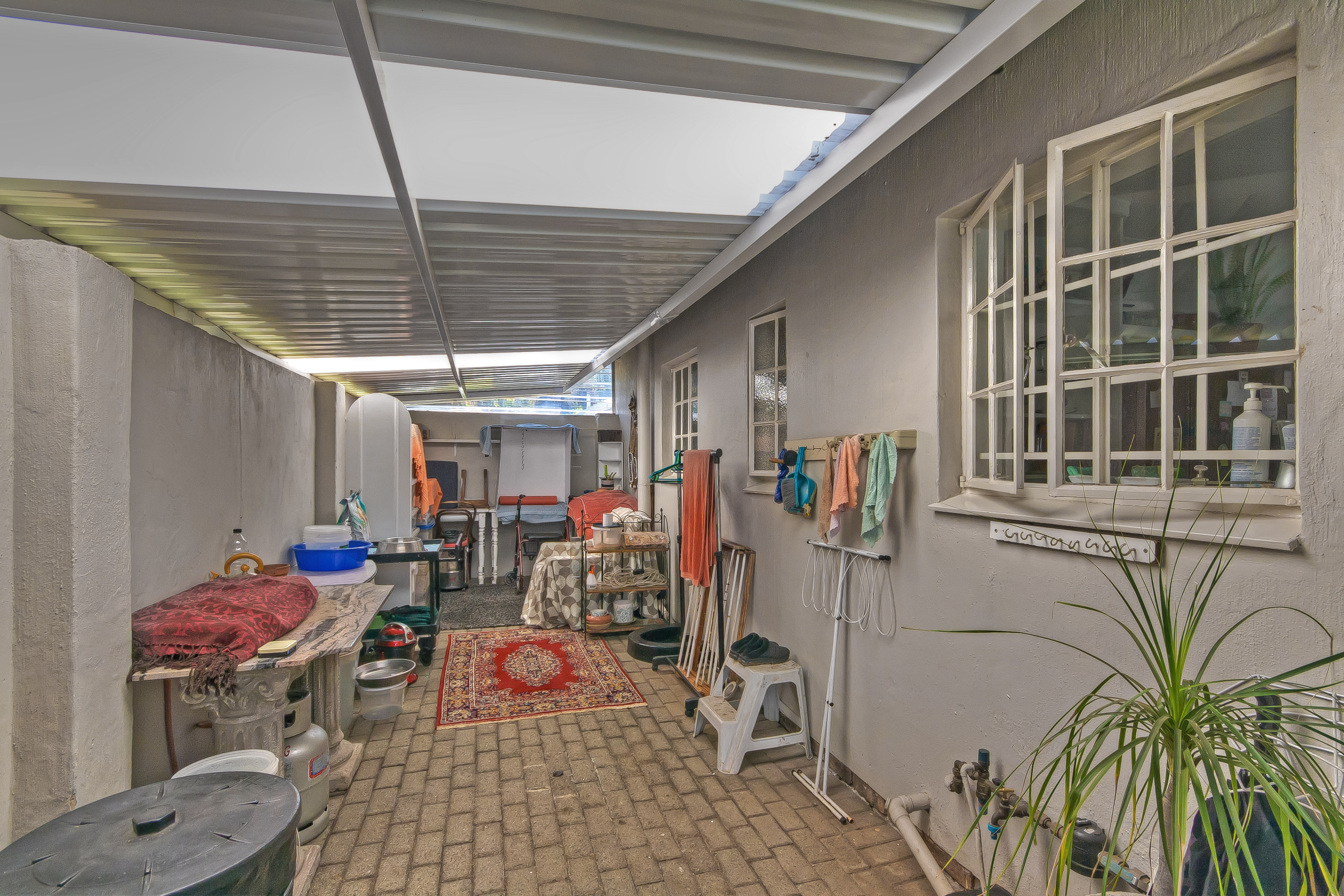 Additional Utility Area: Covered storeroom out back with space for another appliance