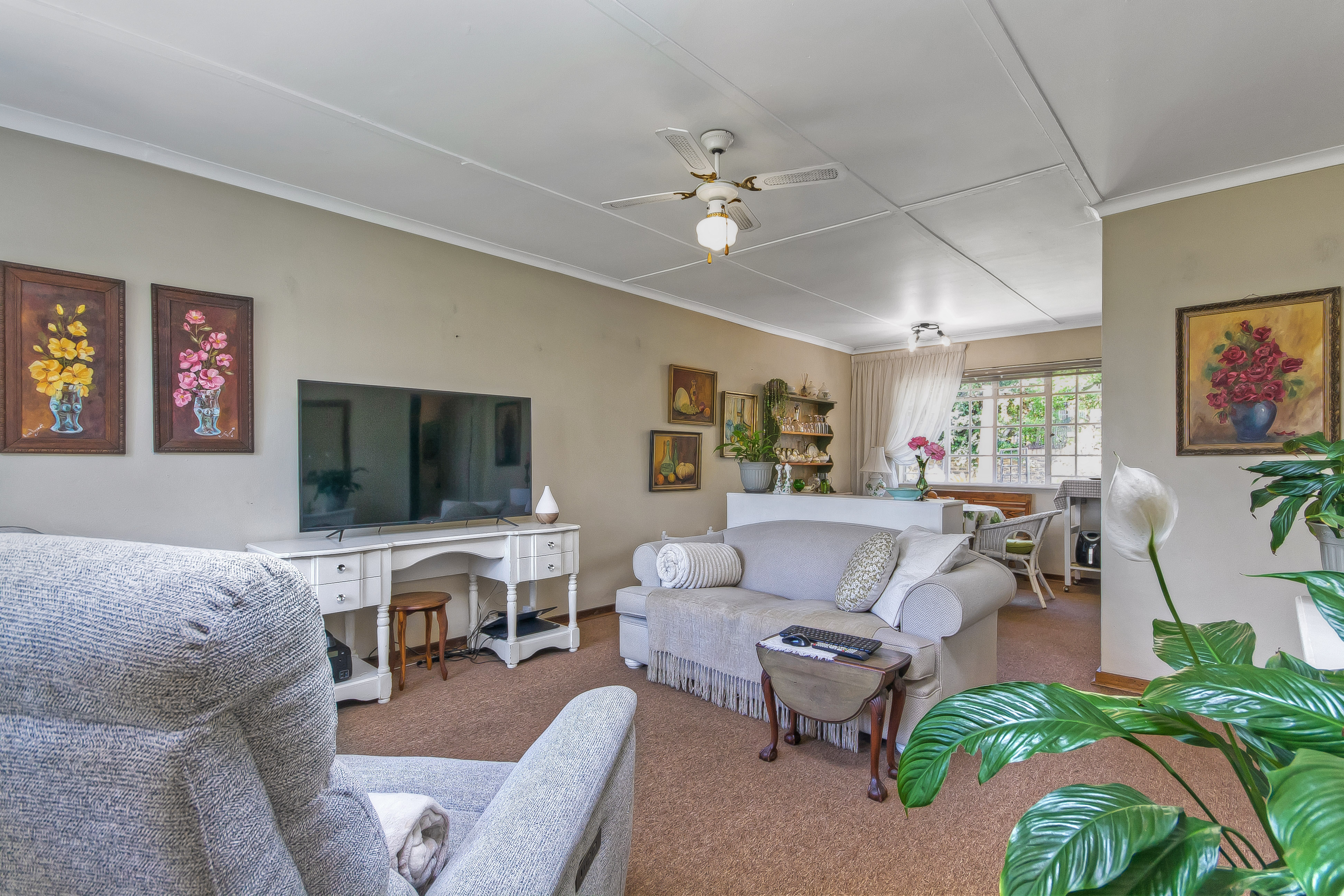 Lounge & Dining Area: Spacious and carpeted for warmth and comfort