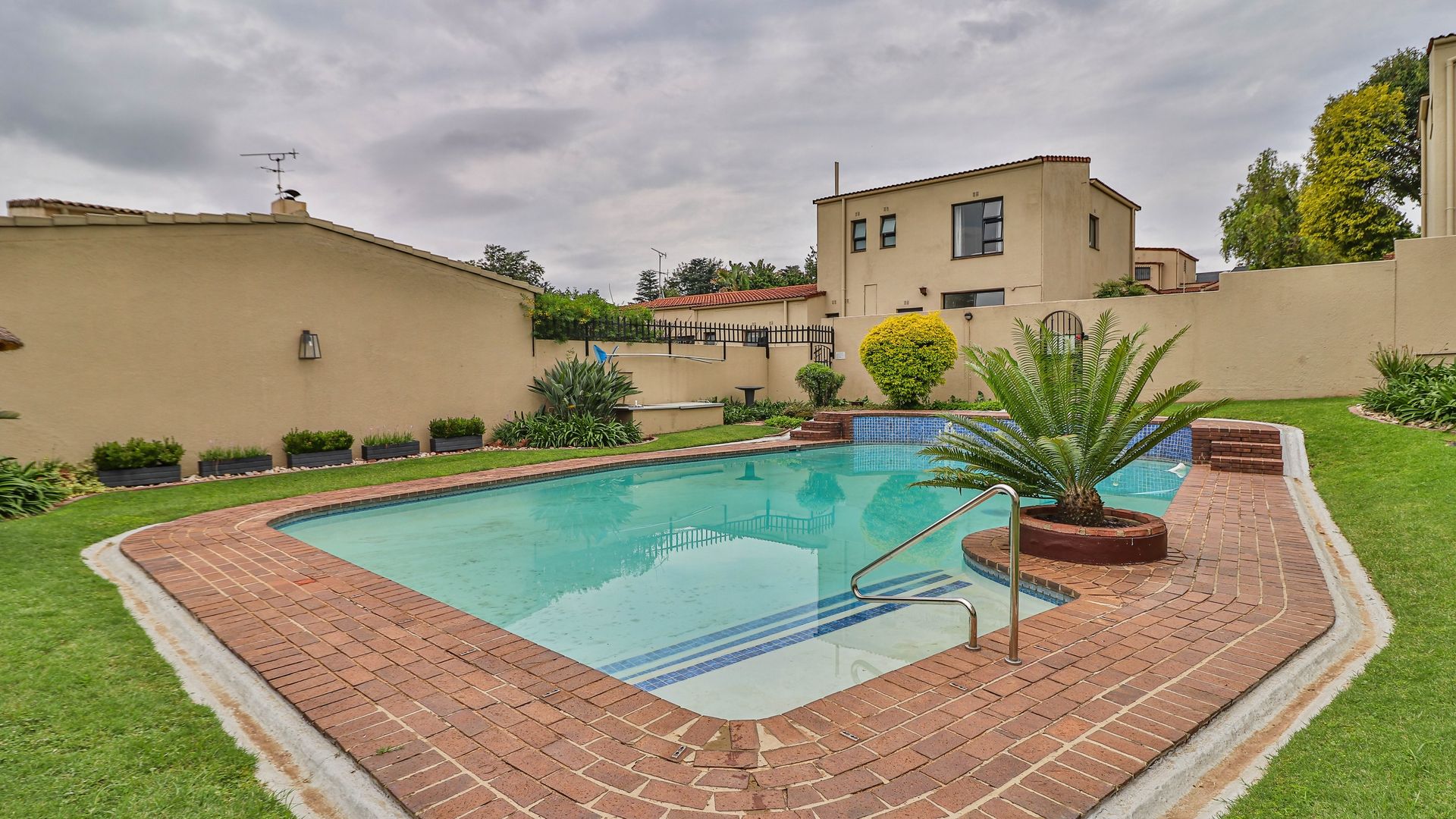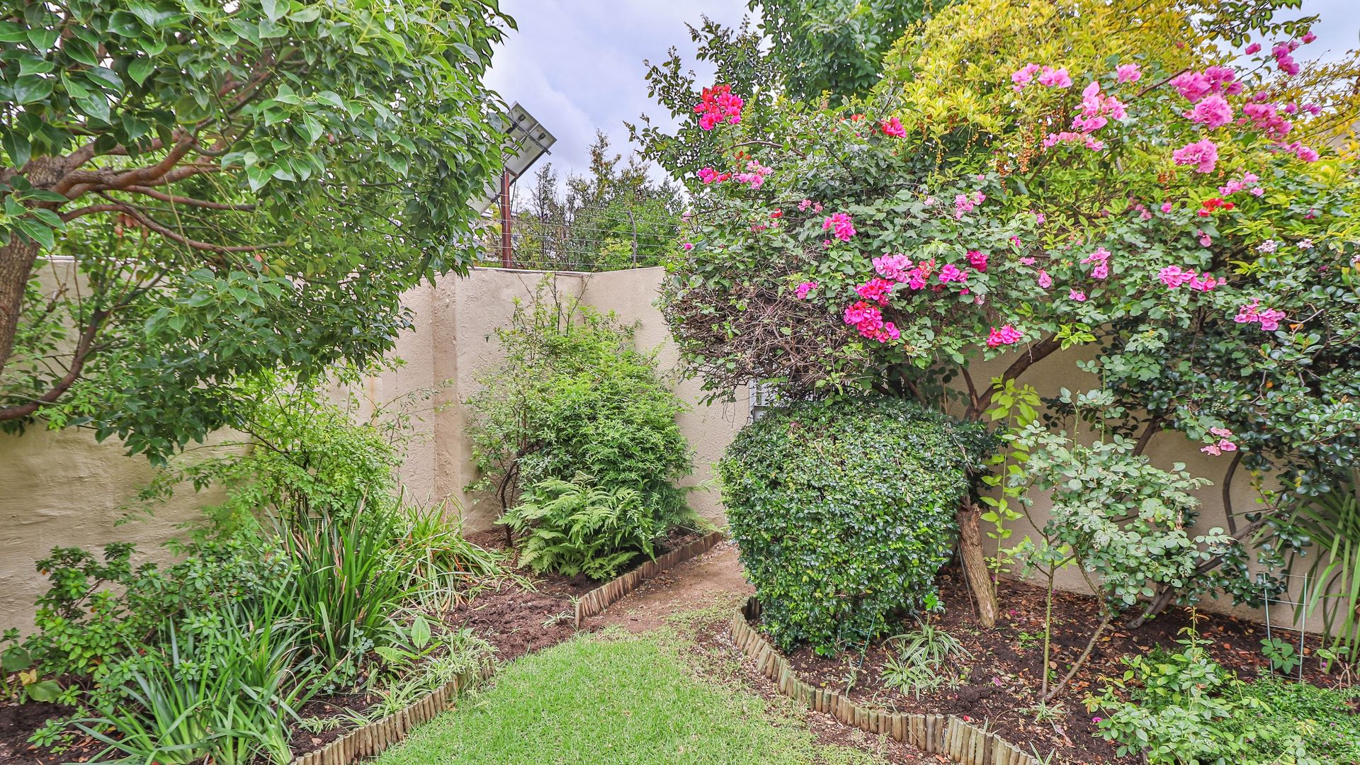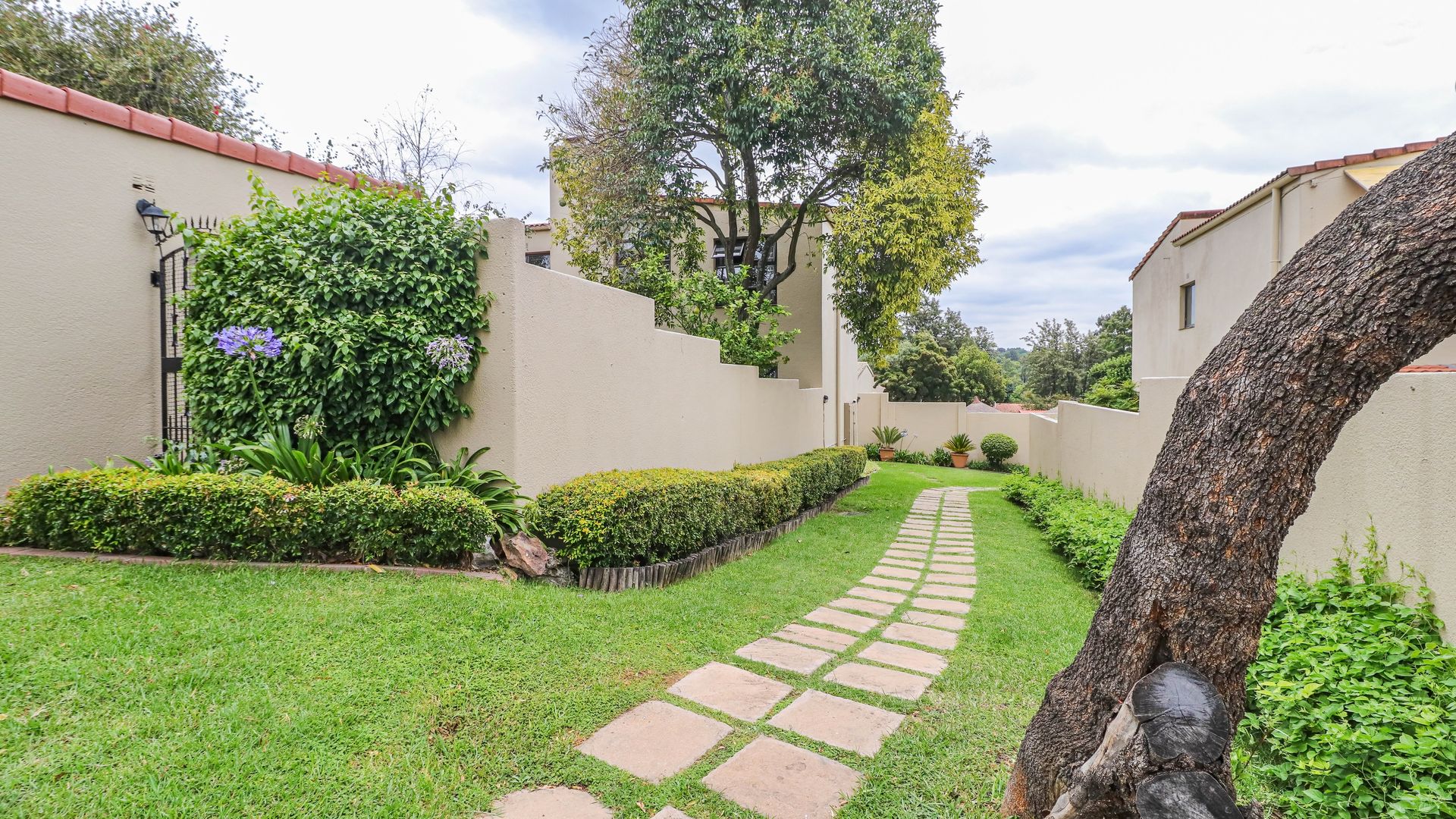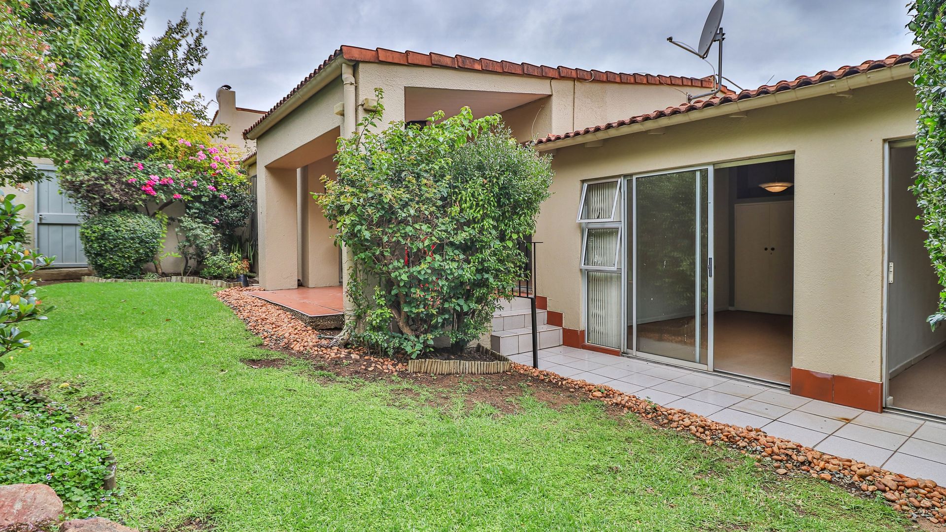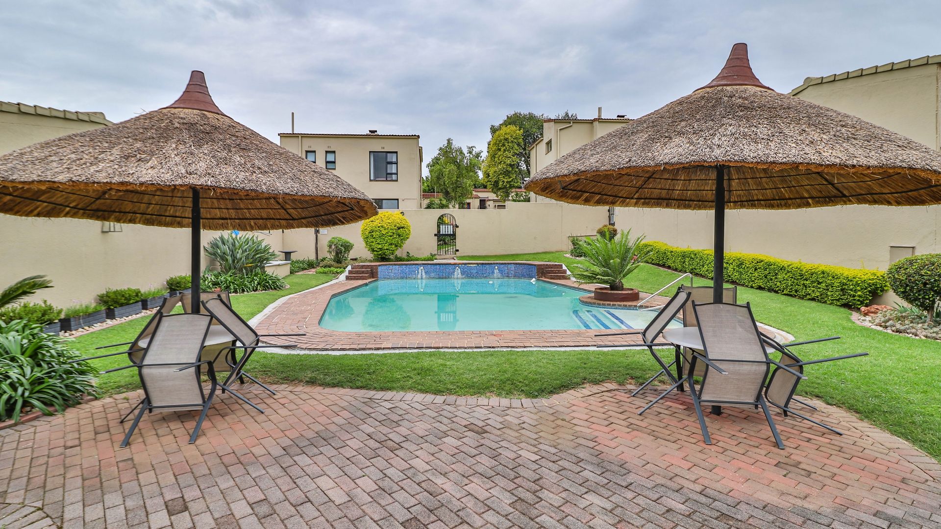 The unit faces north and has an enclosed garden, some visitor parking, a double garage, a caretaker and a communal swimming pool.
