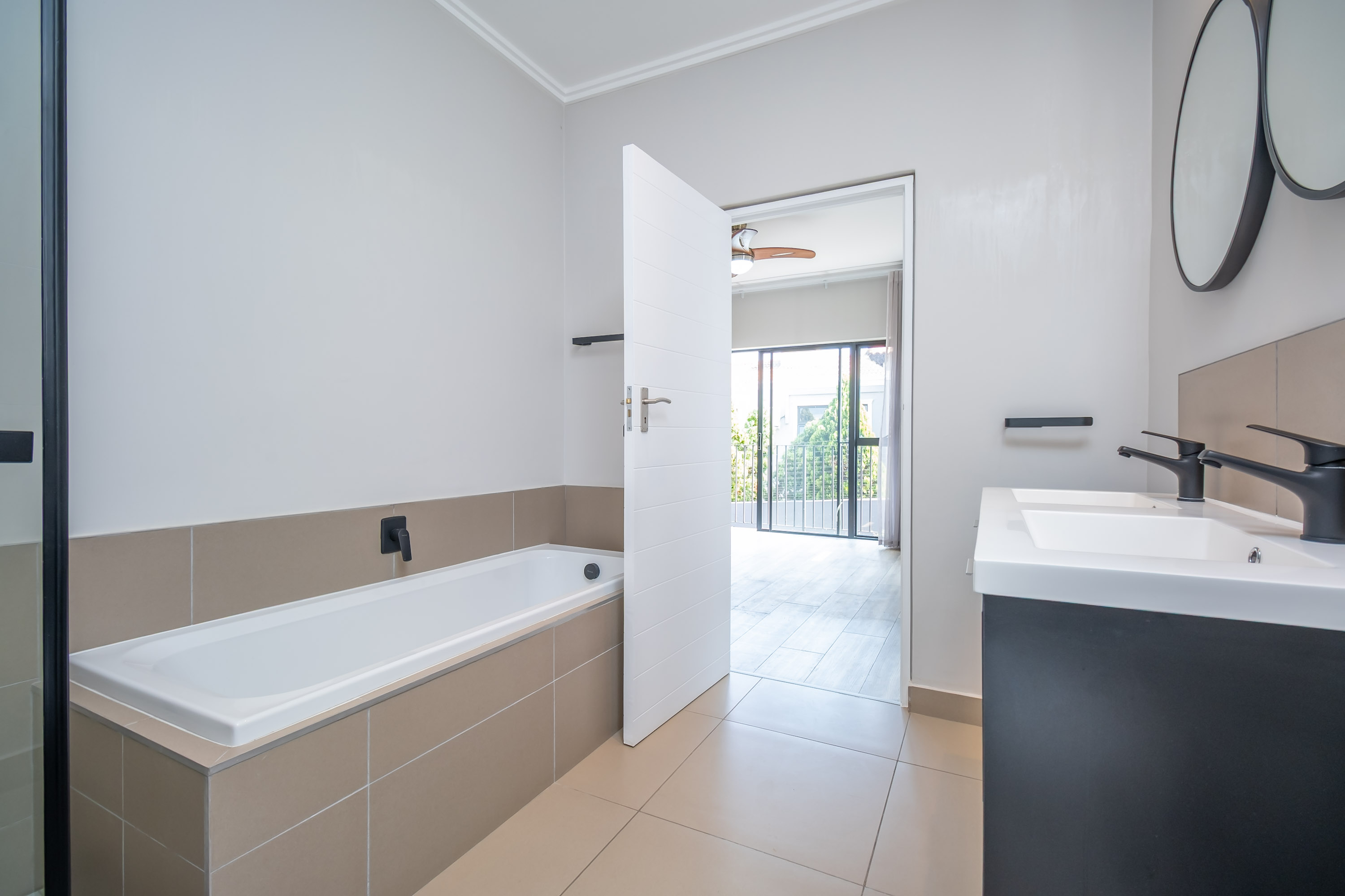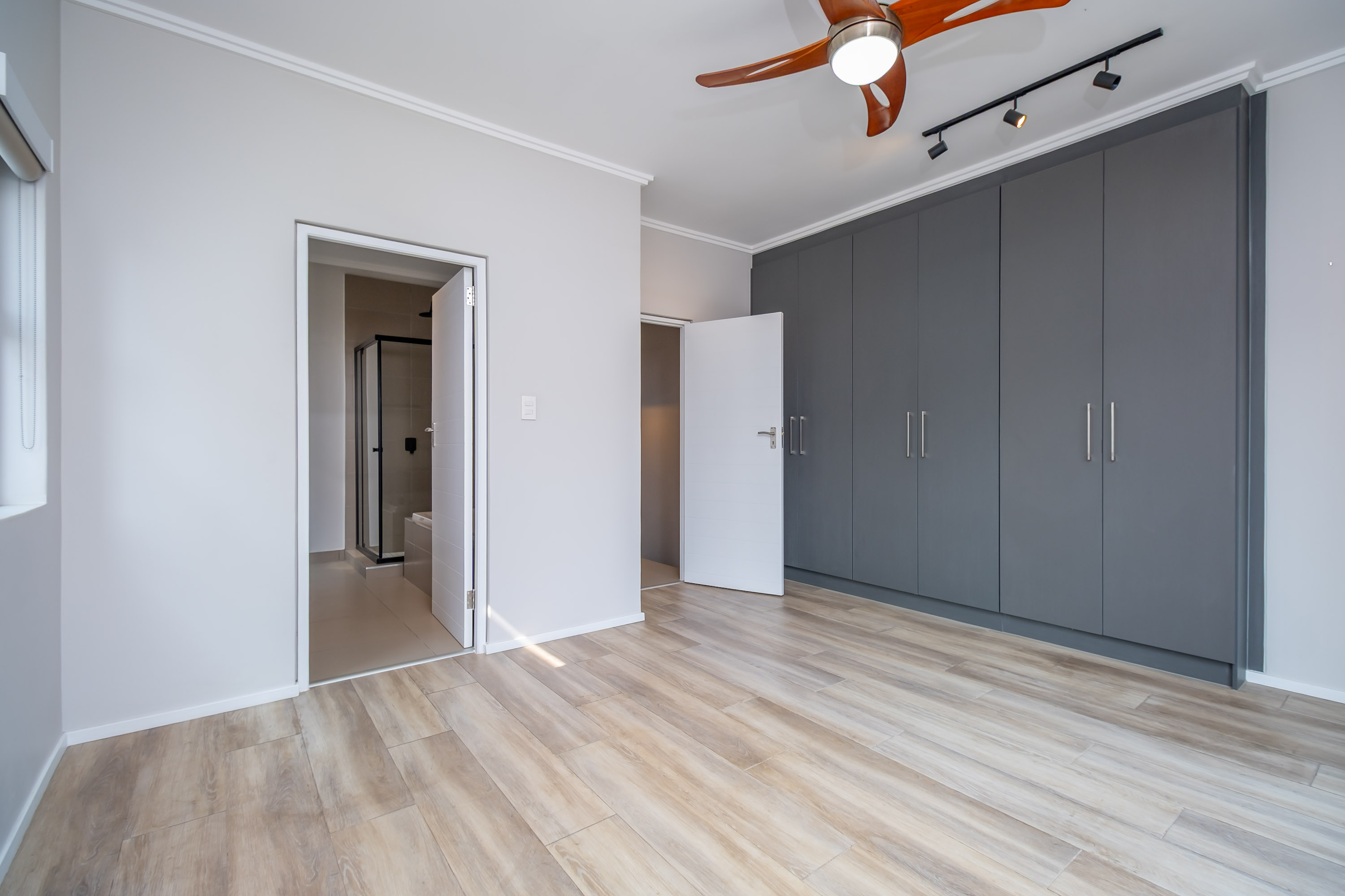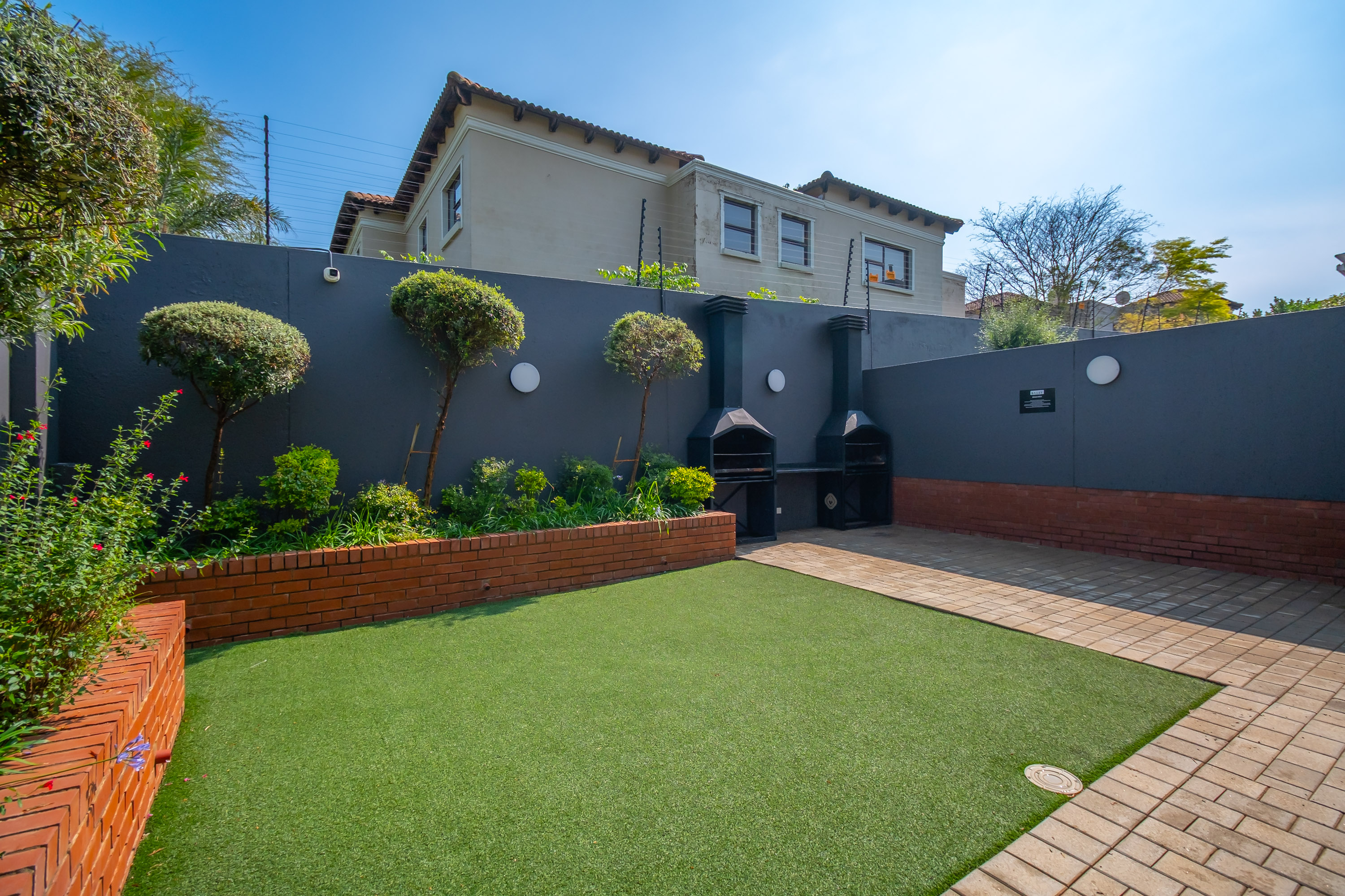 Upstairs, you’ll find three generously proportioned bedrooms, each with thoughtfully designed built-in cupboards. The two luxurious full bathrooms, including the elegant en-suite, provide both comfort and sophistication. The main bedroom features a private balcony with garden views.