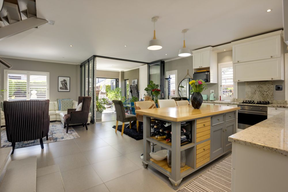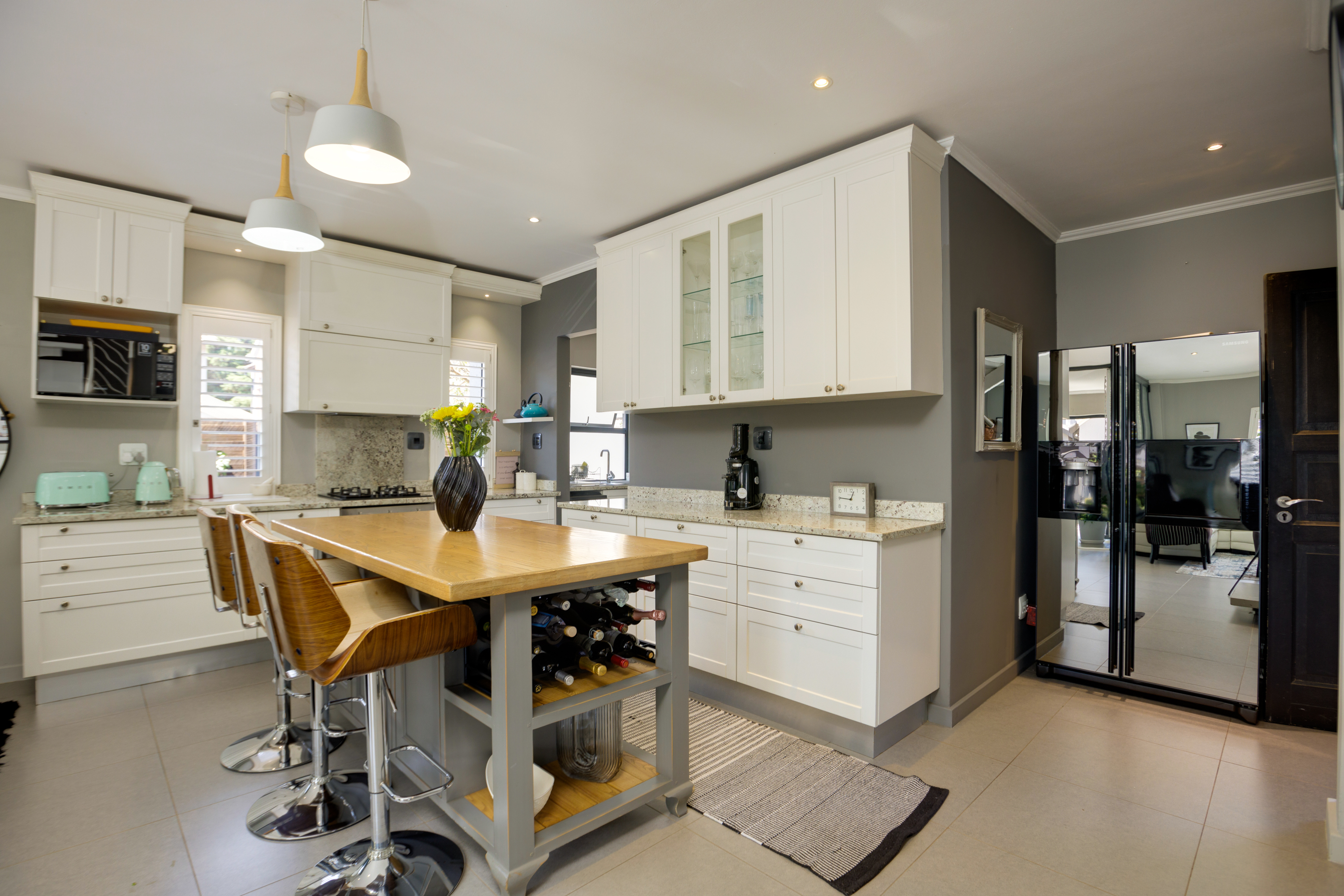 The kitchen is a true highlight, offering a gas stove, electric oven, ample cabinetry and a stylish centre island, perfect for meal prep and casual dining. A separate scullery provides space for 3 under-counter appliances.
