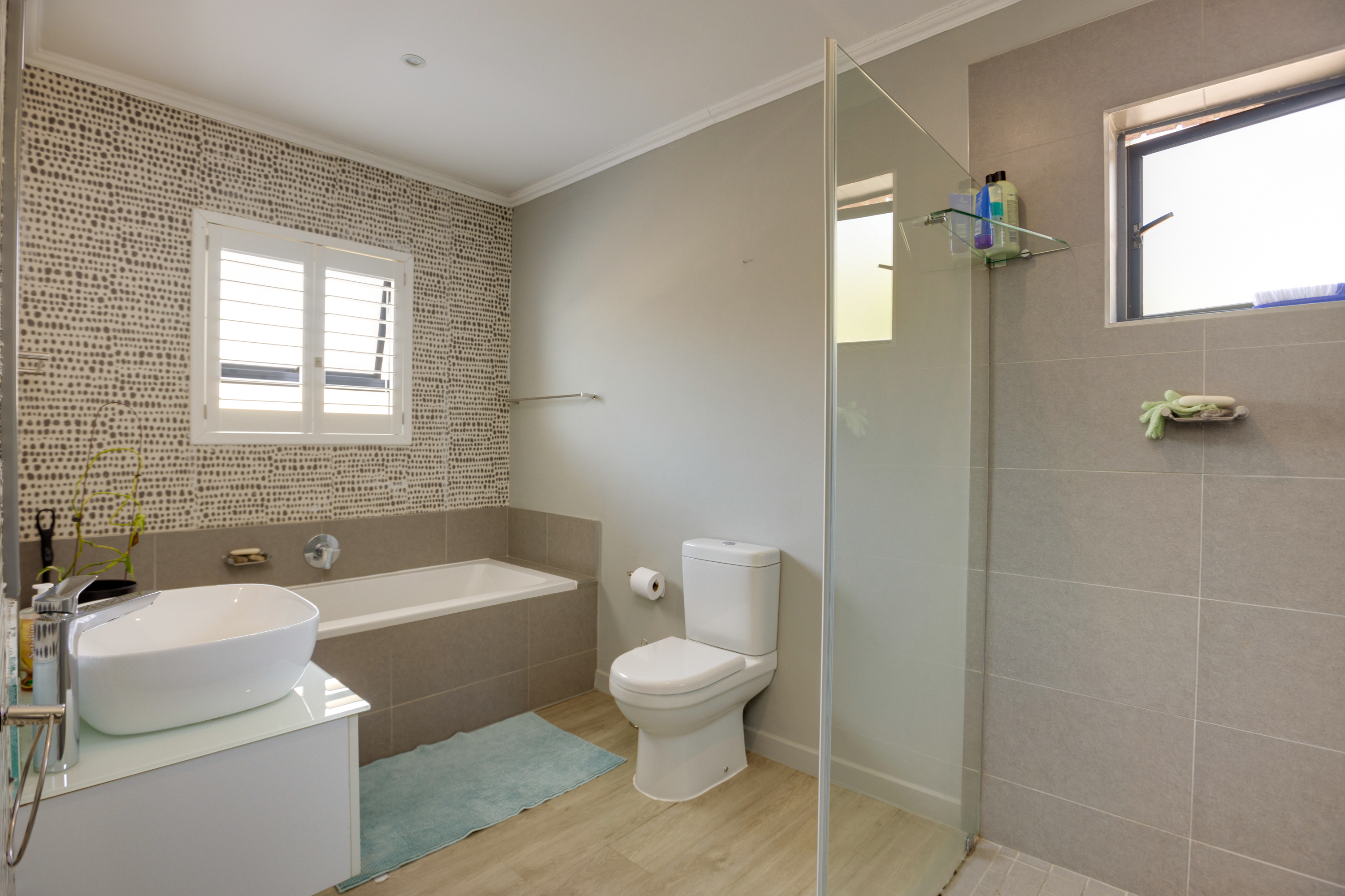 The second and third bedrooms offer generous built-in cupboards and share a full bathroom, complete with a shower, bath, toilet, basin, cabinetry and shutter blinds.