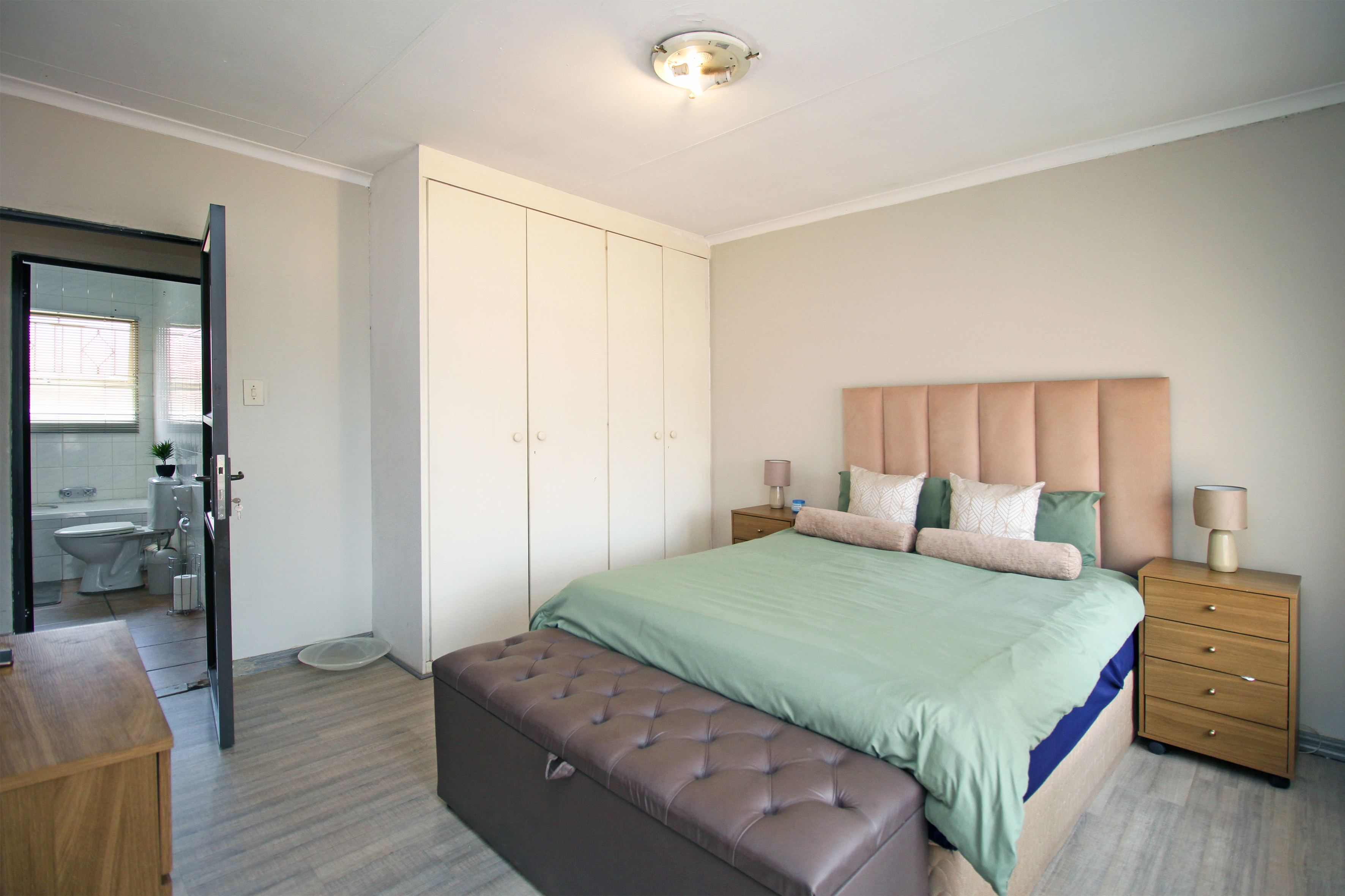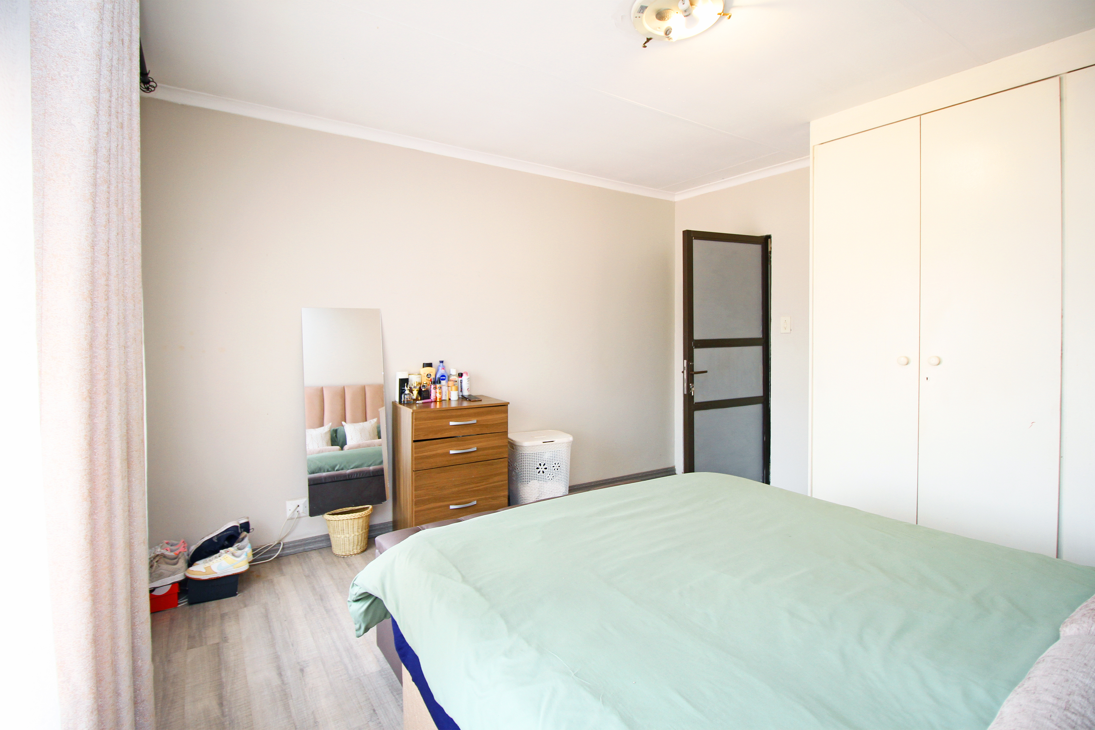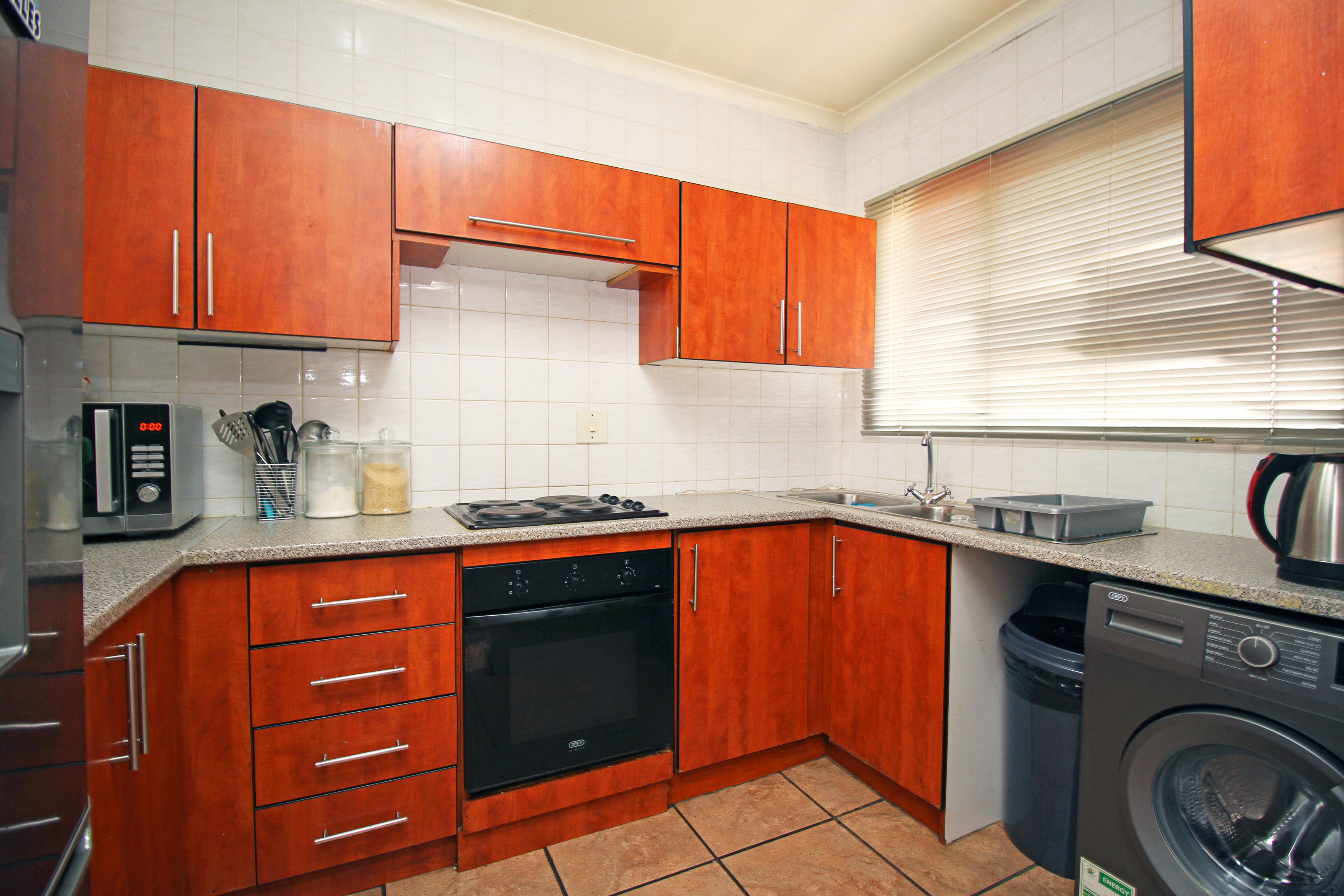 Contemporary first floor apartment in a well sought after complex, for sale. Unit is fiber ready. Prepaid electricity. Fairly modern kitchen with ample cupboard space, space for one under counter appliance and single door fridge. Combined lounge and dining room space. One carport and ample visitors parking. Safe and secure complex with 24hr security and access controlled gate. Complex offers a communal swimming pool and well manicured gardens. Conveniently located near business parks, shopping centers, schools, nursery schools, medical centers and public transport routes. If this sounds like your next home, call us today to schedule a viewing appointment.