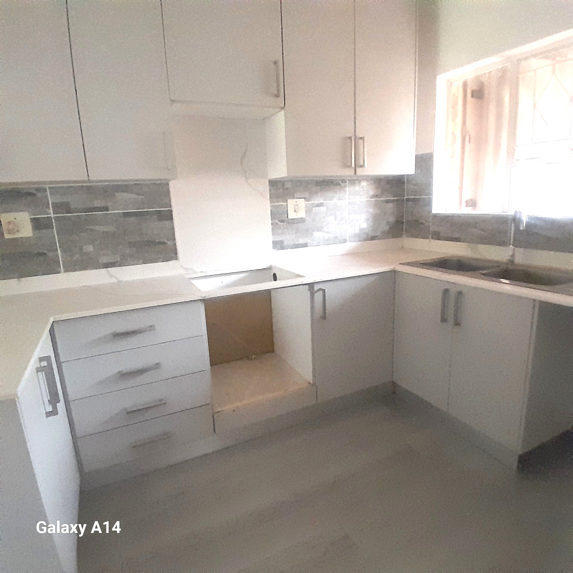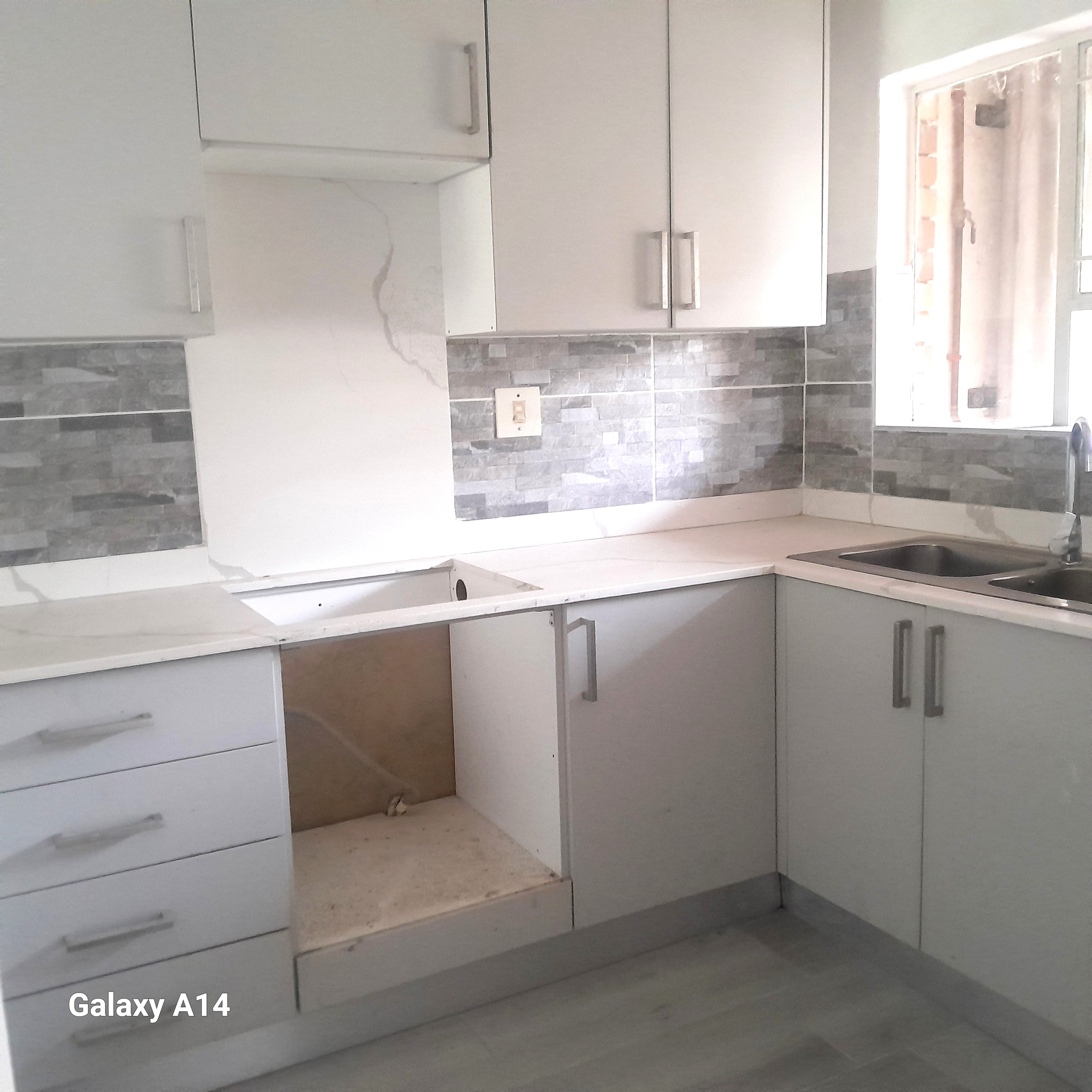 The kitchen offers new cupboards all round and space for 1 under-counter appliance. The lounge/dining area is open plan and leads to burglar-barred spacious patio. The two bedrooms are spacious and share a bathroom with shower only.
