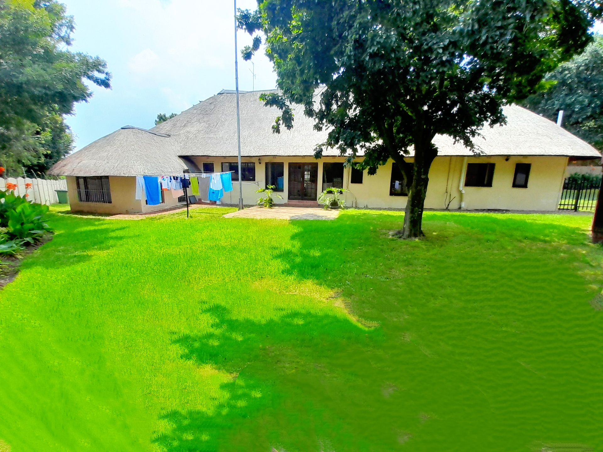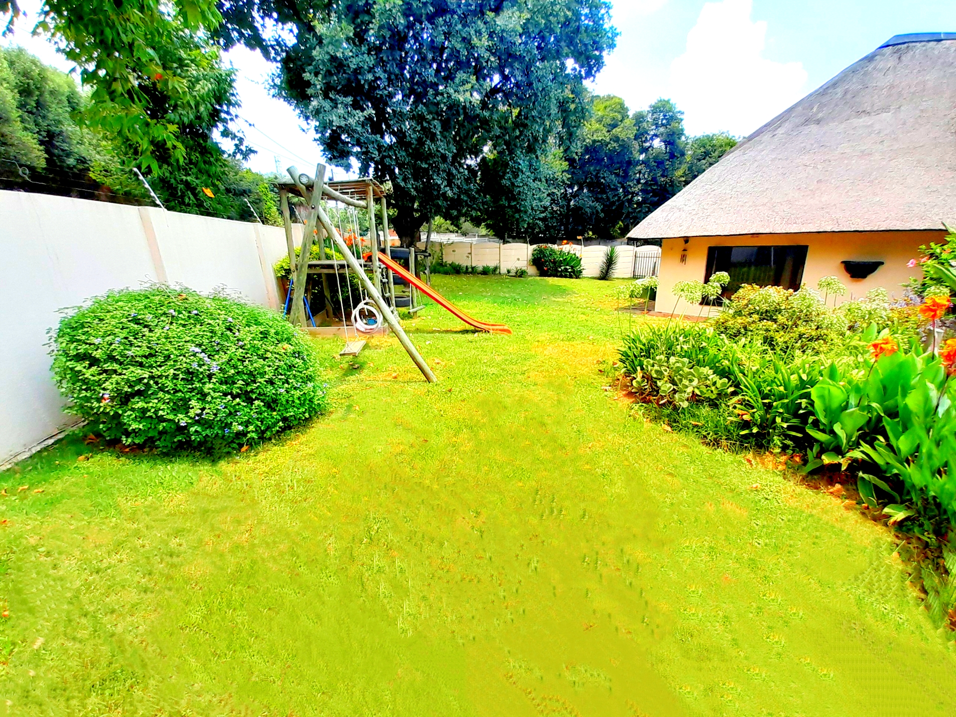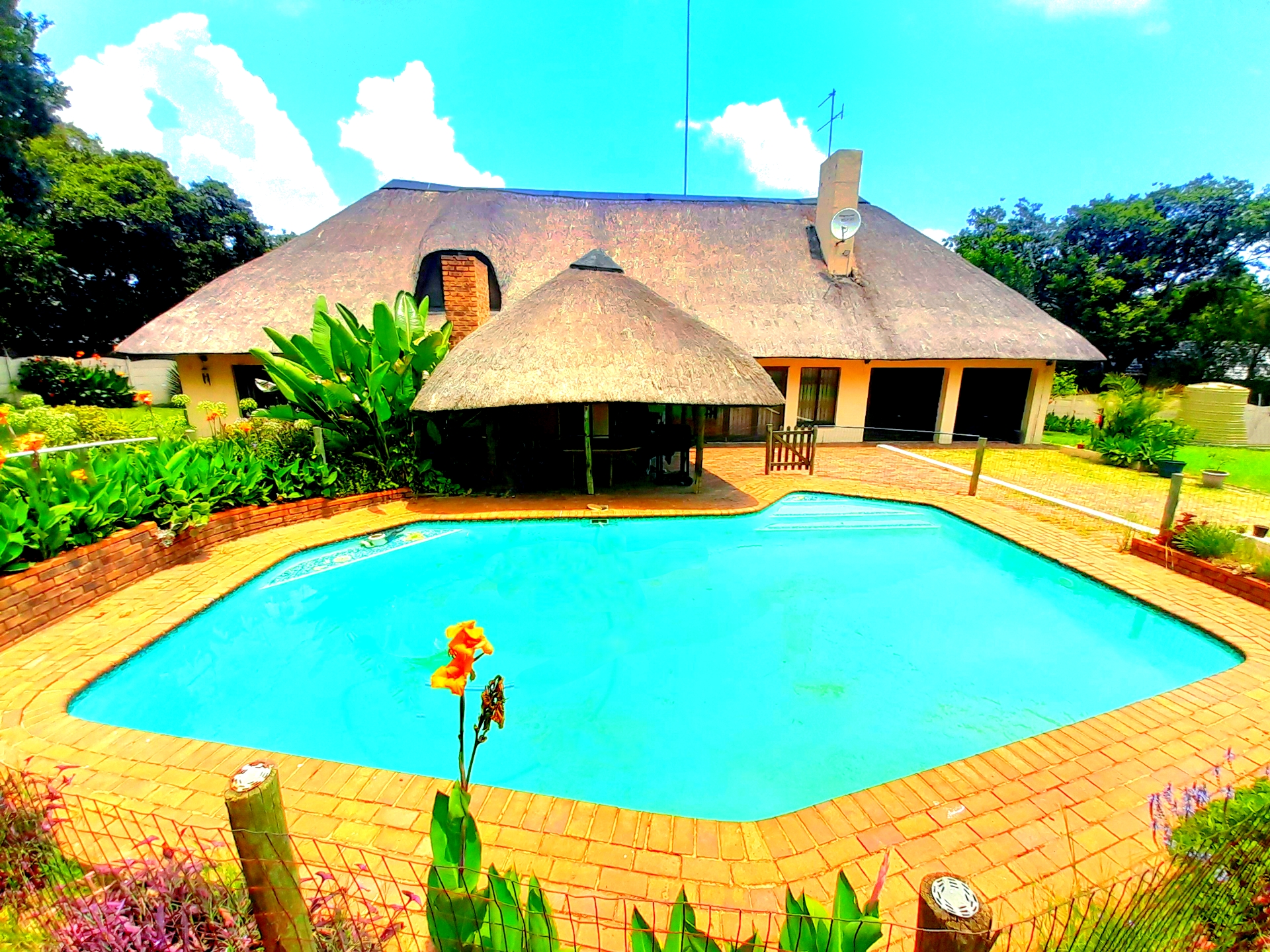 Residents can enjoy a private garden and large swimming pool in the comfort of their own yard. The property also offers a spacious front and back yard, enhancing the overall appeal, alongside a double garage and ample parking bays.