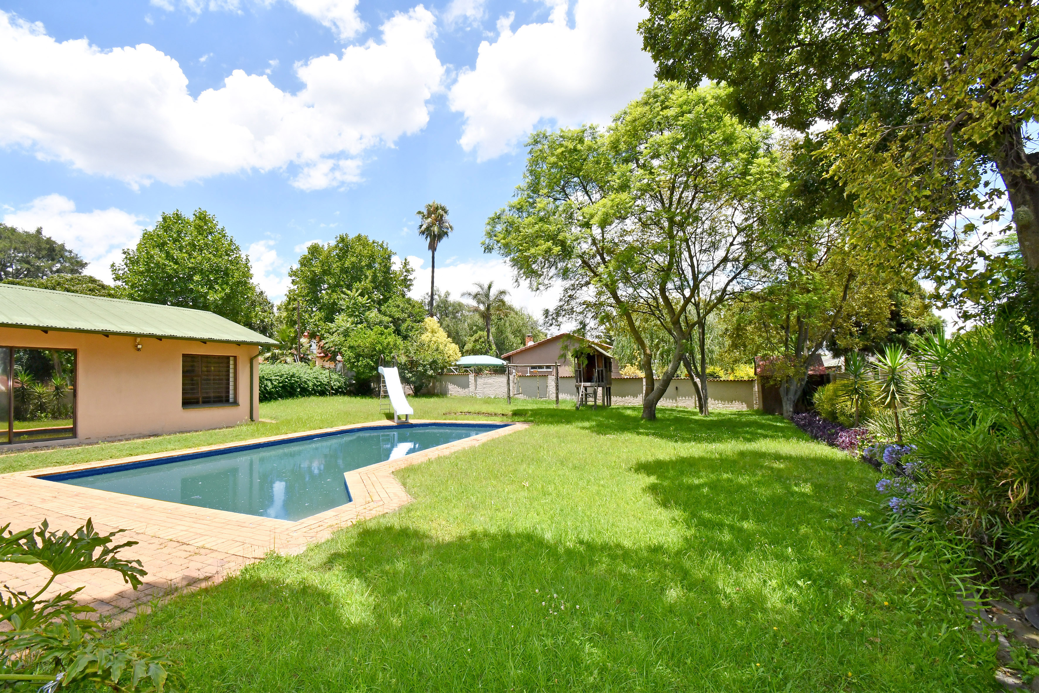 A stunning 4 bedroom freestanding home with a loft and a separate self-containing cottage has become available for sale. Prepaid electricity and fiber ready. Accommodation offers a semi-open plan kitchen with granite tops, a pantry, ample cupboard space, double door fridge space and space for two under counter appliances. Spacious high ceiling dining room with sliding door leading unto patio. Lounge opens unto closed patio, private garden, swimming pool with slides and braai area. Loft above the lounge can be utilized as a study or a spare bedroom. Main bedroom is en-suite with walk through closet space and sliding door facing the beautiful view of the pool and private garden area. Property offers 4 lock up garages with space for visitors parking. Safe and secure accommodation with an alarm system, electric fence and remote controlled gate. There is a self-containing bachelor cottage with its own entrance, offering an opportunity to produce rental income. Prepaid electricity and fiber ready. If this sounds like your next home, call us today to schedule a viewing apartment.