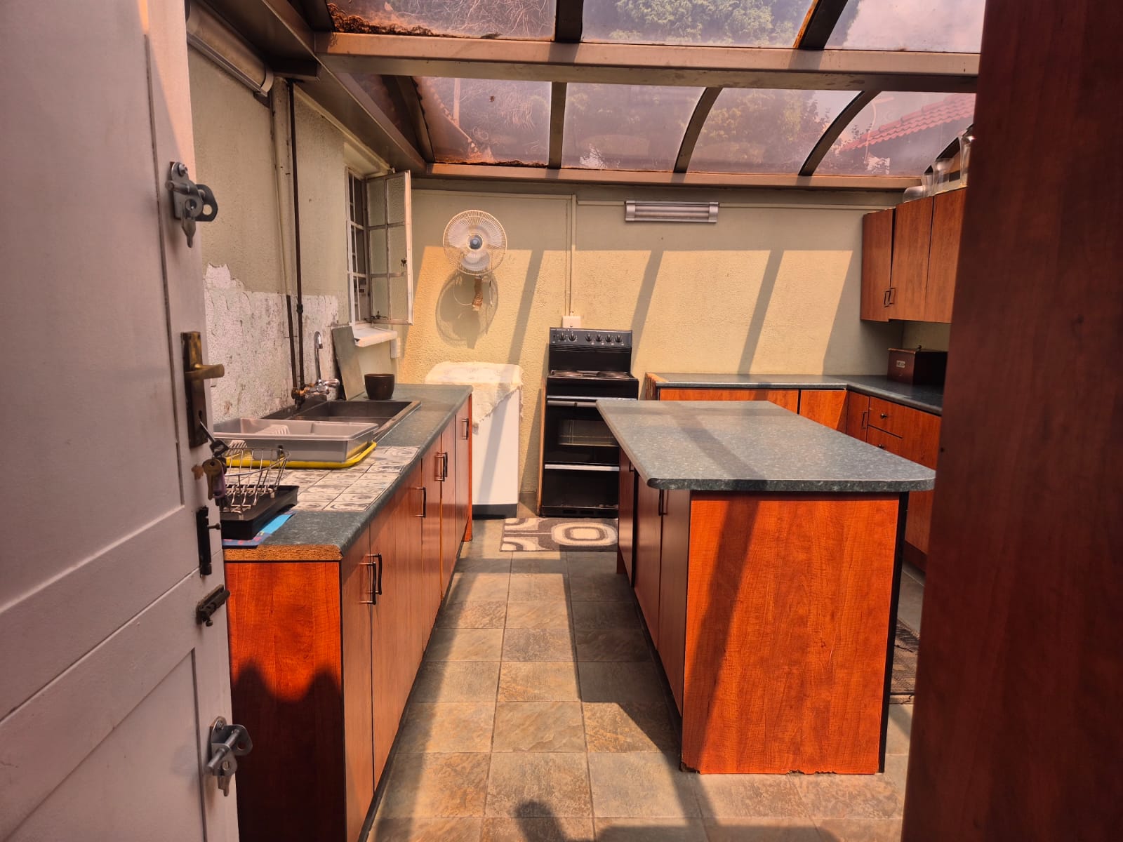 Outdoor living is a highlight, featuring a sparkling swimming pool and lapa—perfect for relaxed weekends and entertaining. The expansive, pet-friendly garden provides plenty of space for outdoor enjoyment. Additional conveniences include staff quarters and outside toilet facilities.
