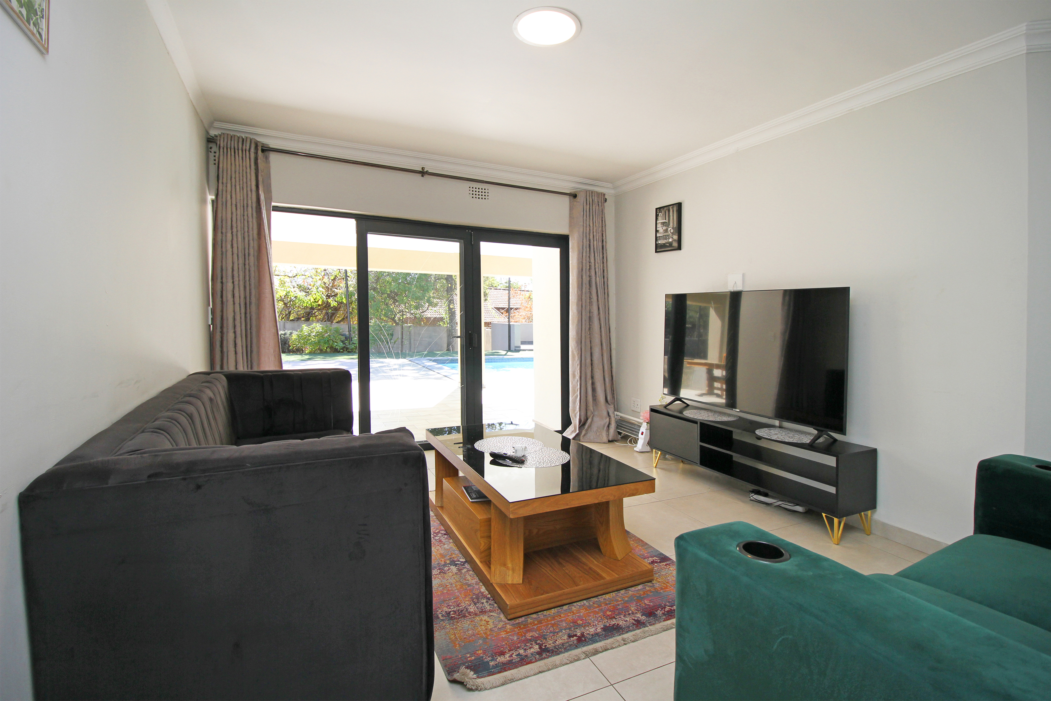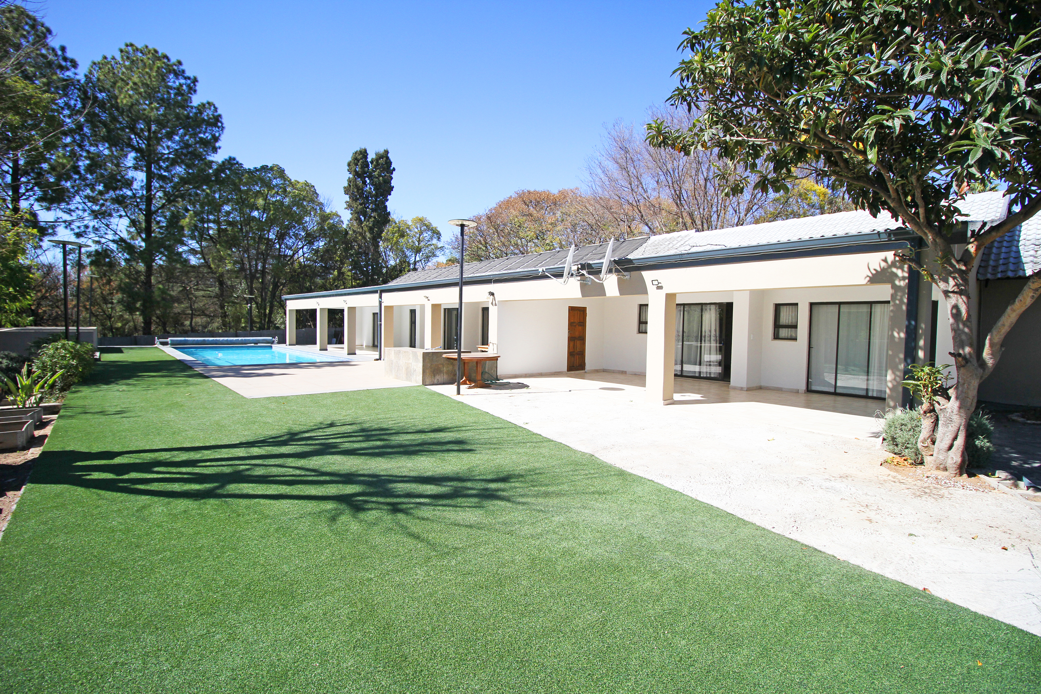 Safe and secure property with cameras and electric fencing. Parking space available. Property has a big swimming pool perfect for a summer day swim.