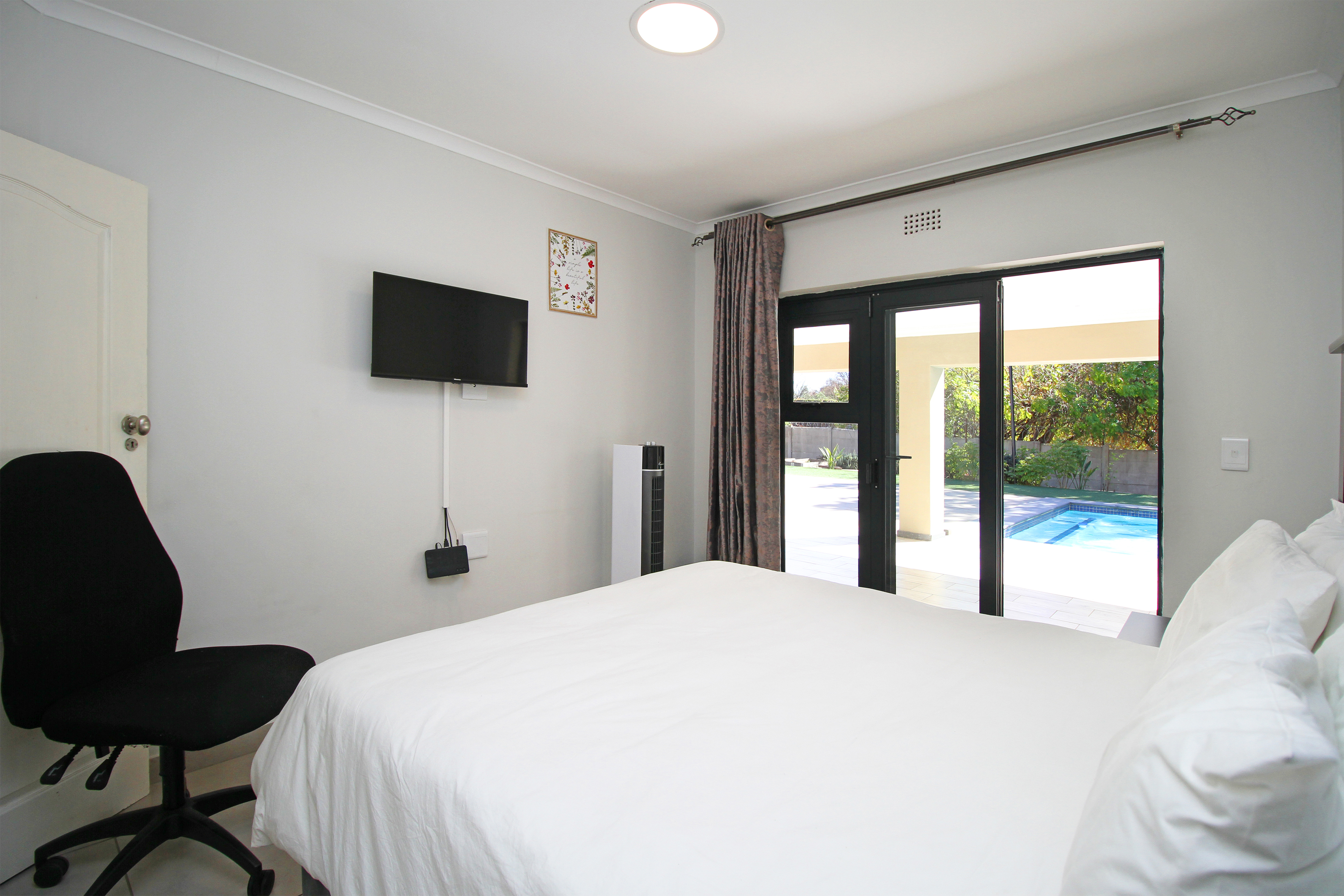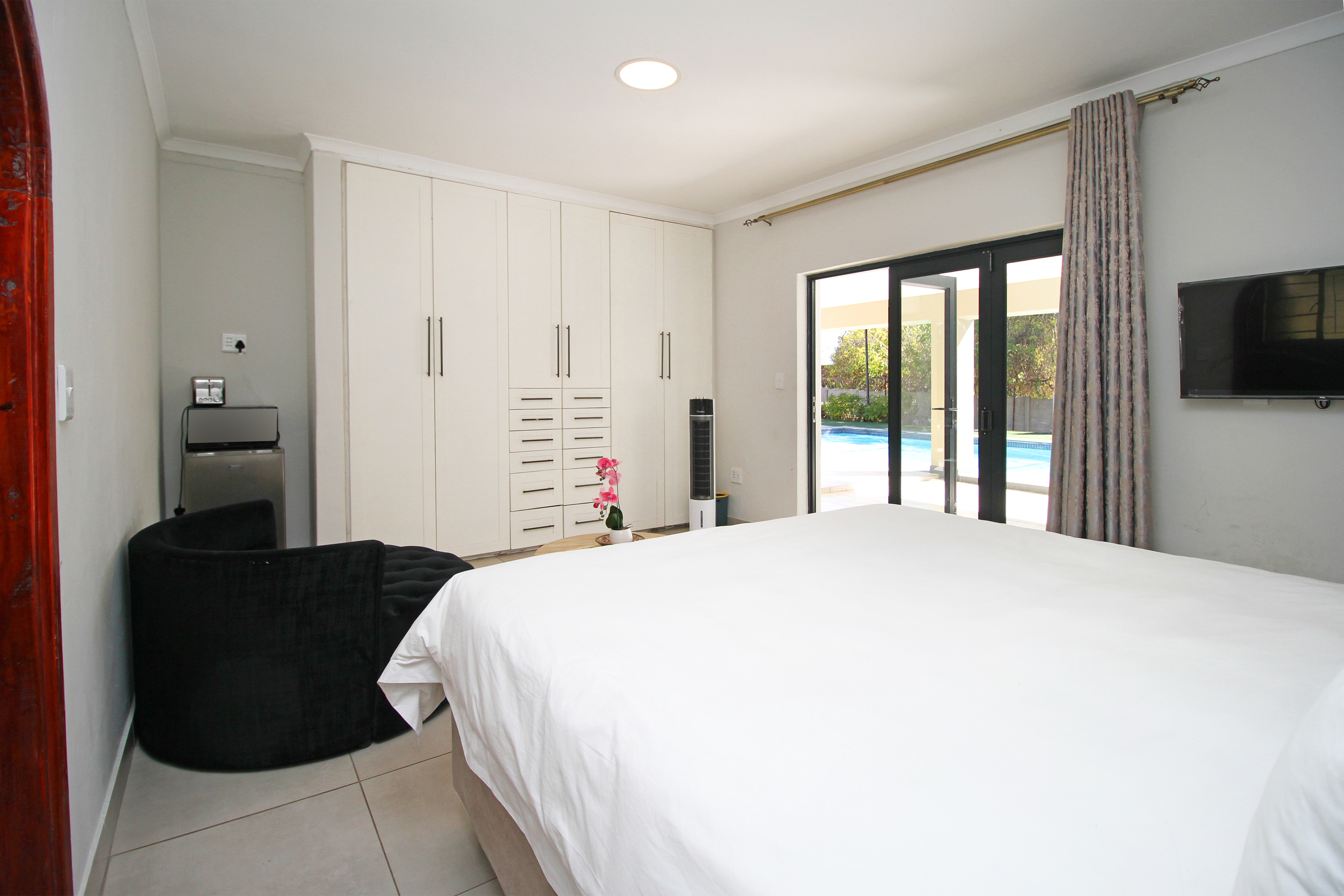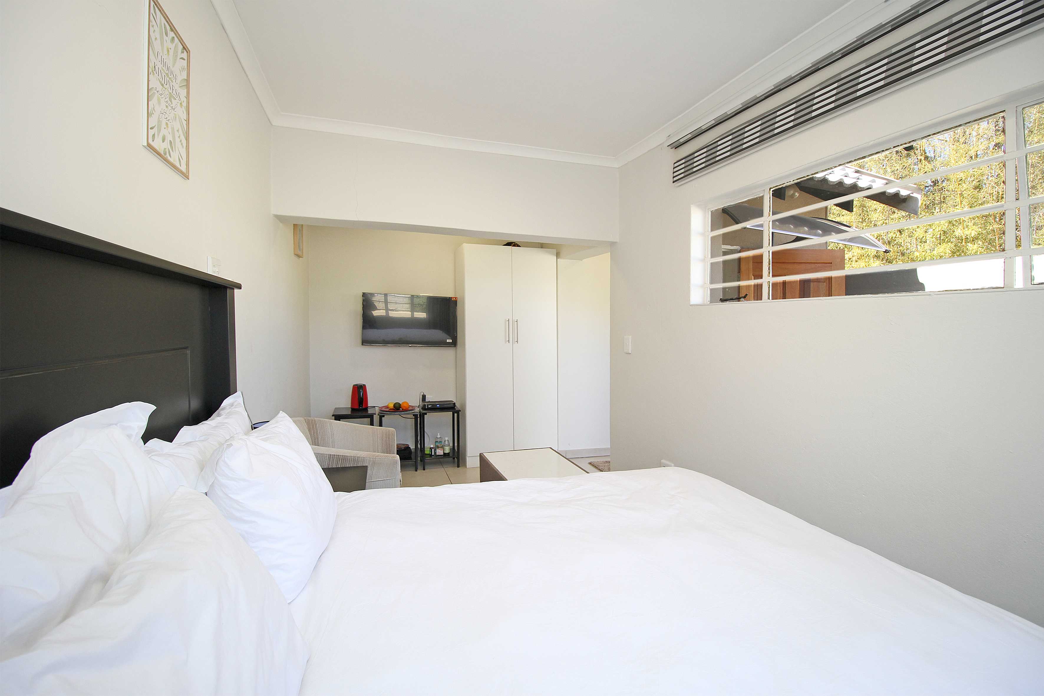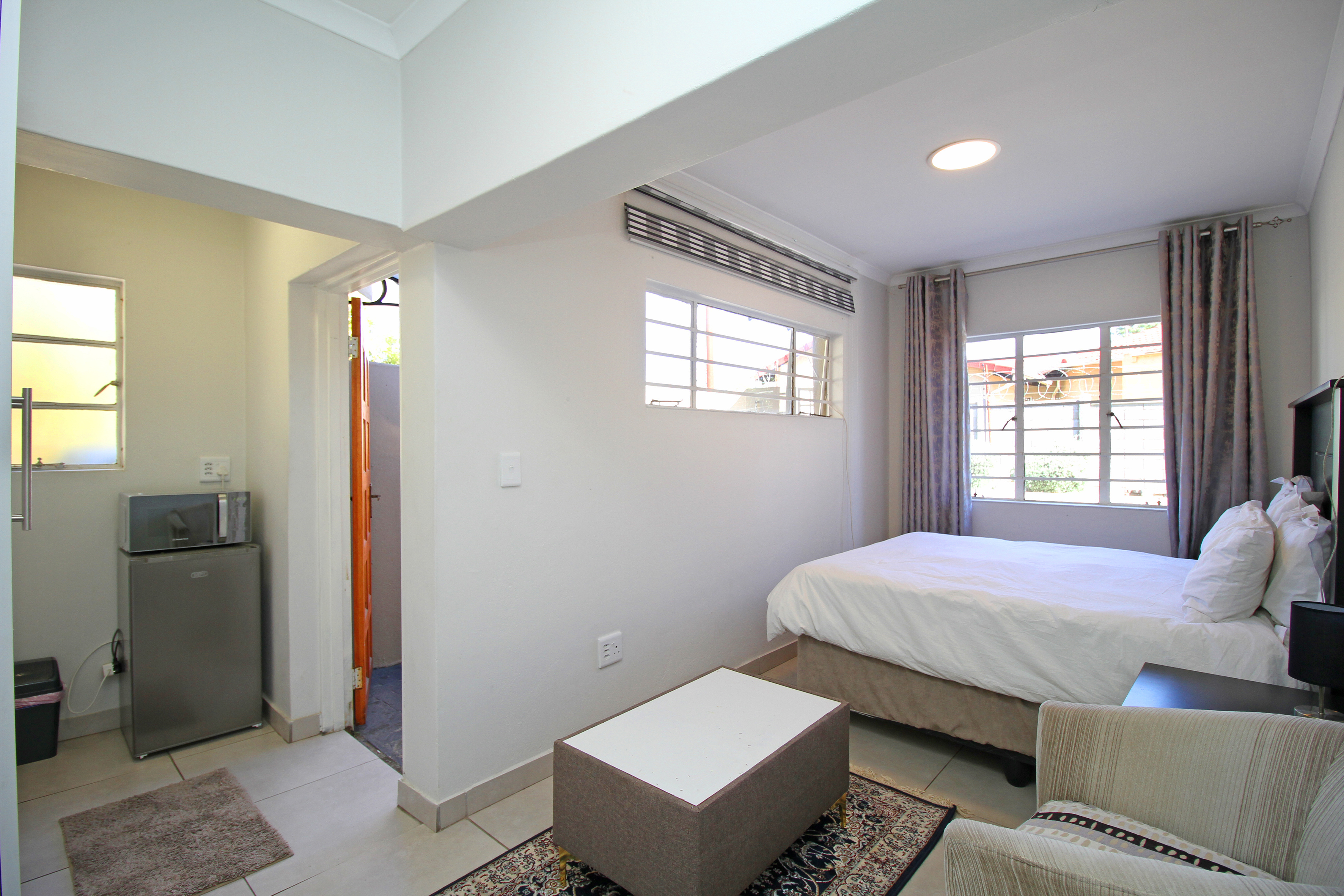 Property offers spacious bedrooms with built in cupboards, ensuite bathrooms and kitchenette fittings in some rooms. Accommodation has a self-containing cottage with a lounge and fully functional kitchen with gas stove, space for a double door fridge and ample cupboard space.
