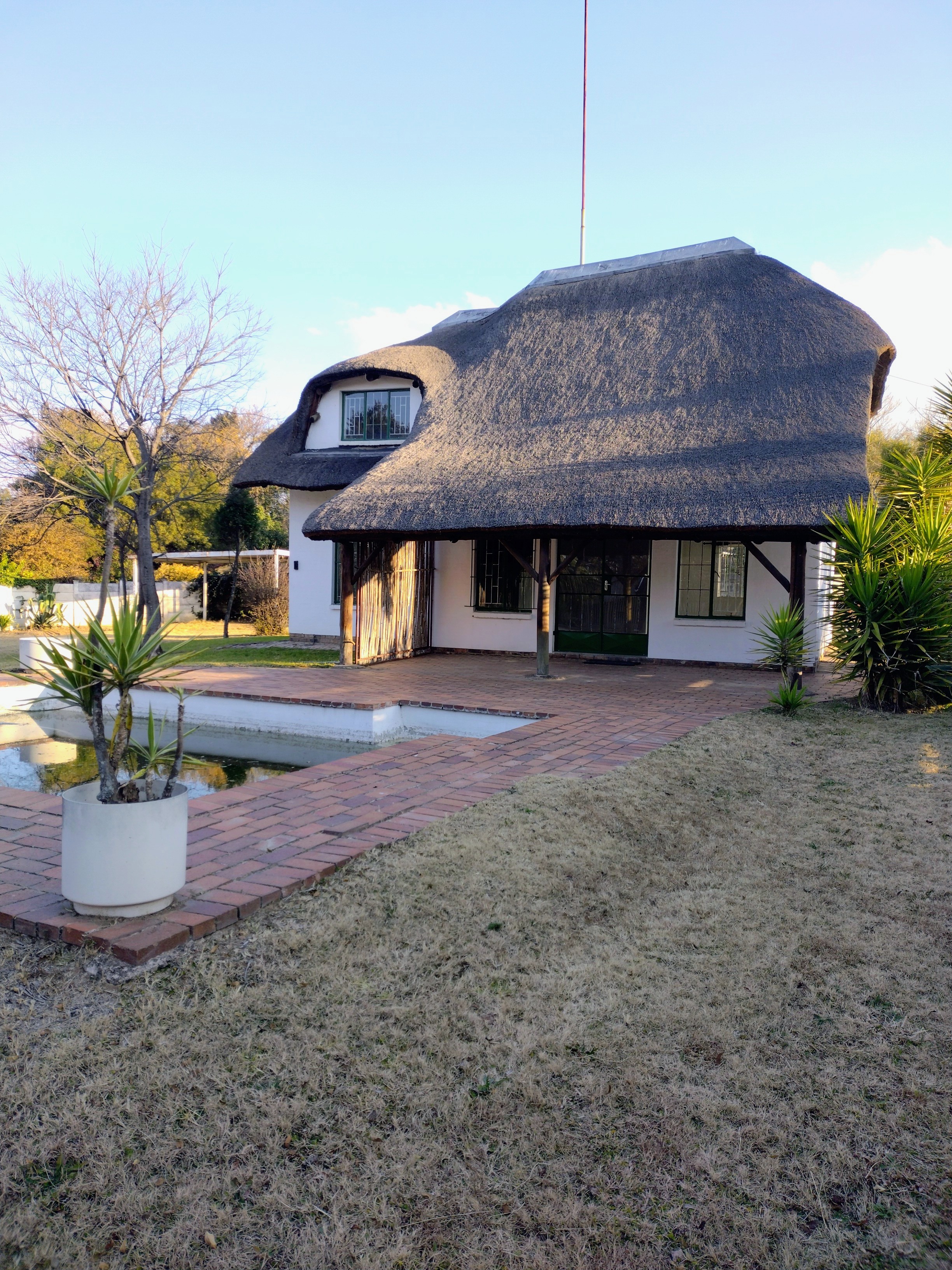 Cozy 3 bed 2 bath thatch roof house on a vast 1693sqm of land available for rent in the centrally located Buccleuch, Sandton. The house offers: - 1 bedroom on the lower floor - 2 bedrooms on the top floor - pyjama lounge/office on the upper floor - Full spacious bathroom on the lower floor - Upper bathroom with shower only - Open plan lounge/dining area - Spacious kitchen with marble tops, space for 2 appliances and lots of cupboards - Eletric Fence and automated gate - Swimming Pool - Covered Garage Amenities in the area are schools, places of worship, business parks, Woodmead Retail Park, and Mall of Africa which is 5 min away. Easy access to Old Pretoria Road, M1, N1, N3 and R55. A must see!!! Get in touch to secure a private viewing appointment.