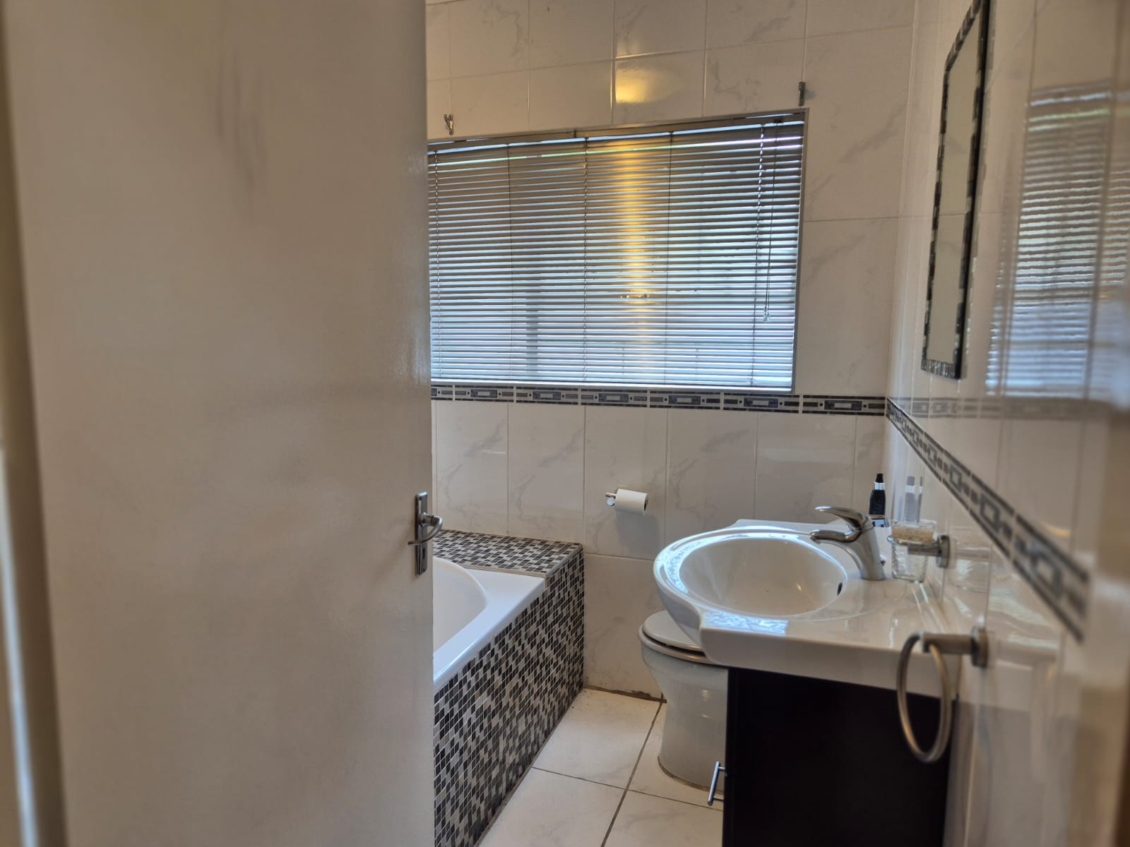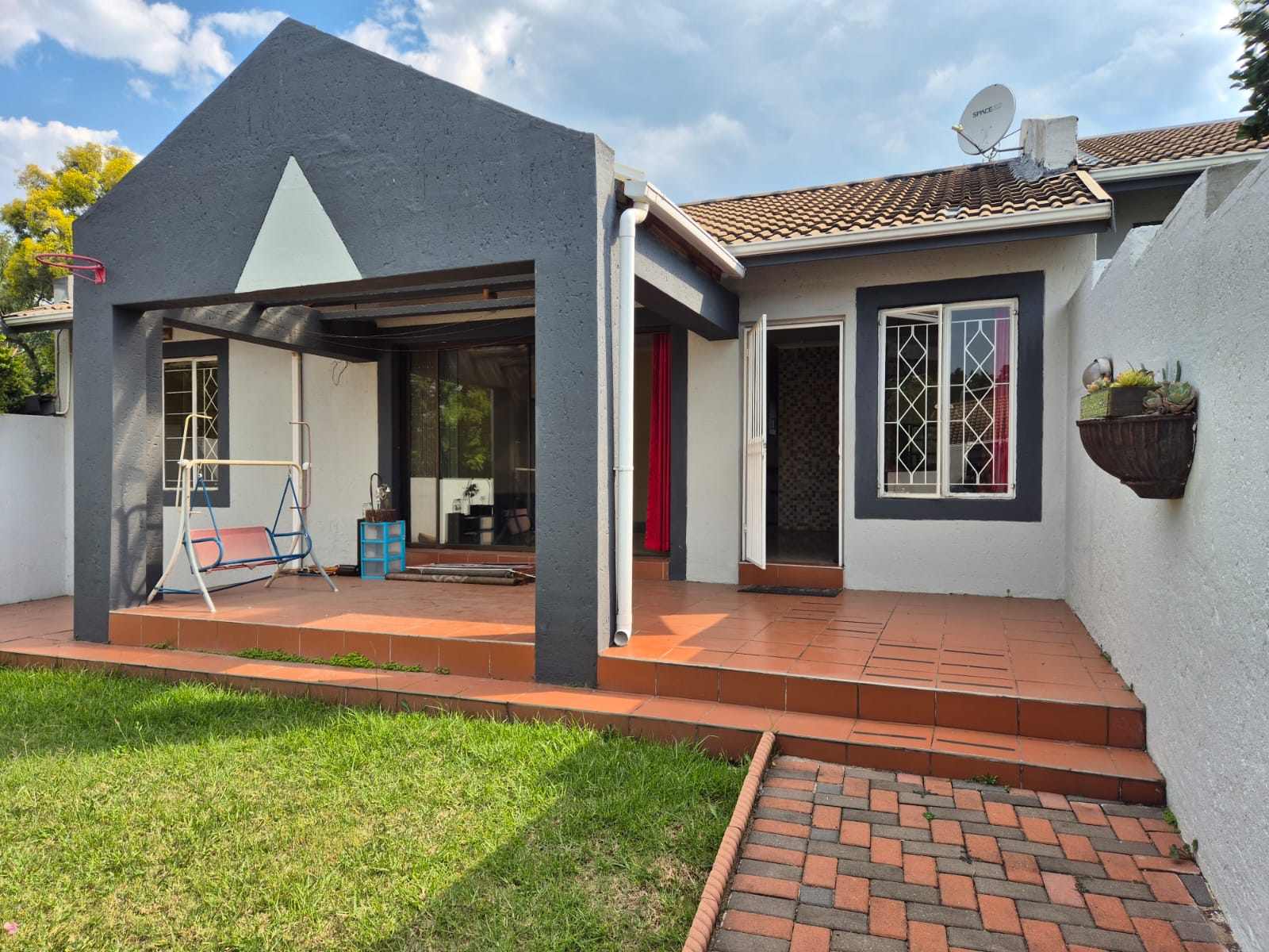 Parking is well catered for with one lock-up garage and one covered carport. The complex offers beautifully maintained communal gardens, a swimming pool, and night security for added peace of mind. A fitted Wendy house provides convenient extra space for appliances or storage.