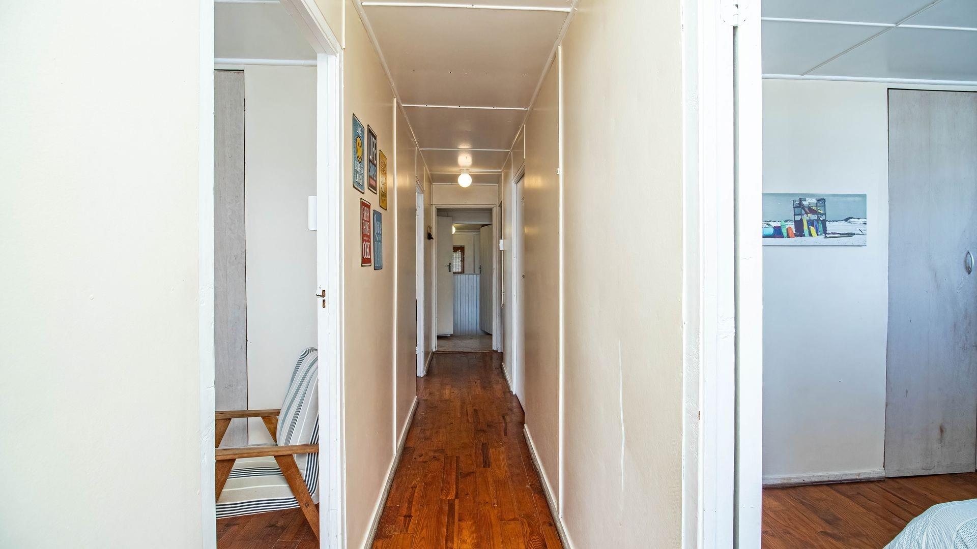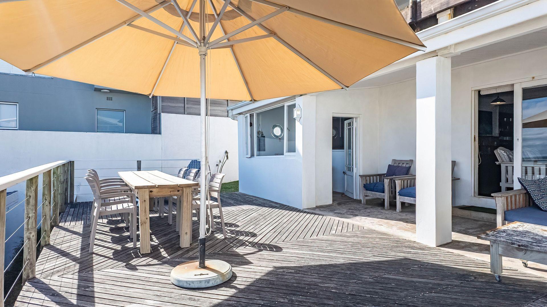 Spread over two levels, the home features seven bedrooms in total — three on the lower level and four upstairs — making it ideal for large families, dual living or holiday letting. The downstairs layout is made for relaxed coastal living, with an open-plan lounge and kitchen flowing out through sliding doors to a generous wooden deck of 70sqm, complete with a bar and braai area set against the sound of the waves.