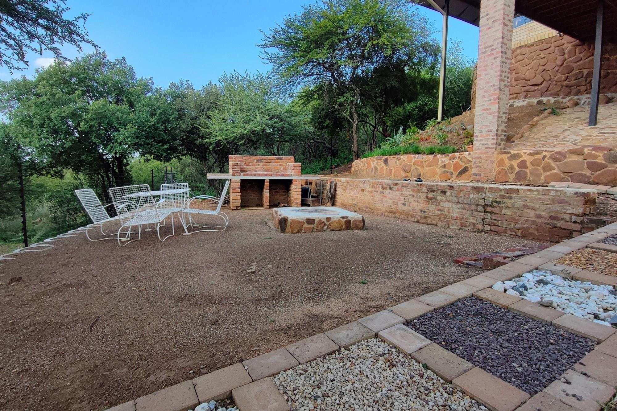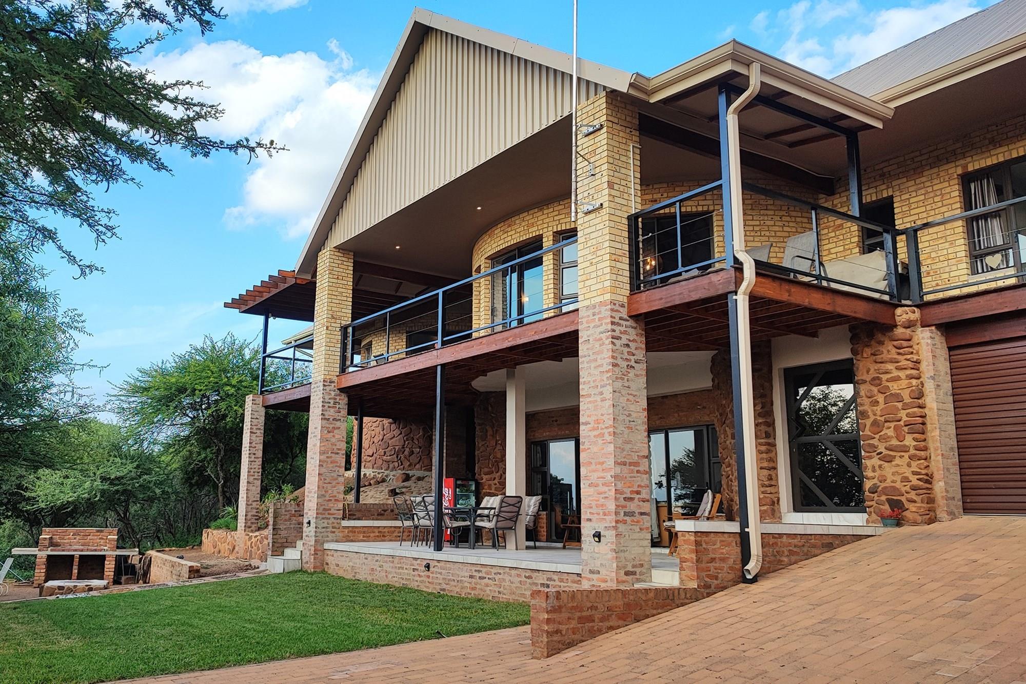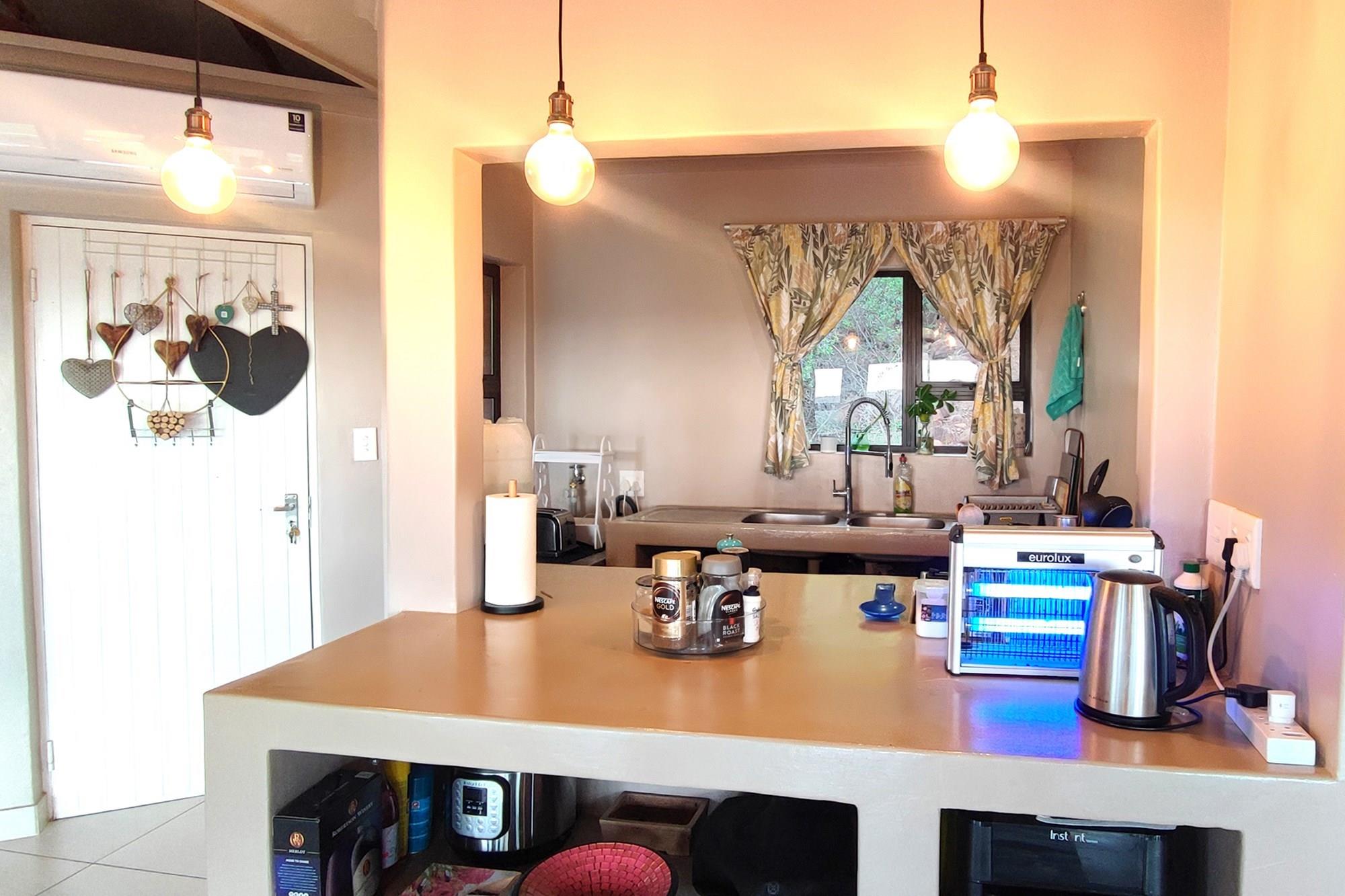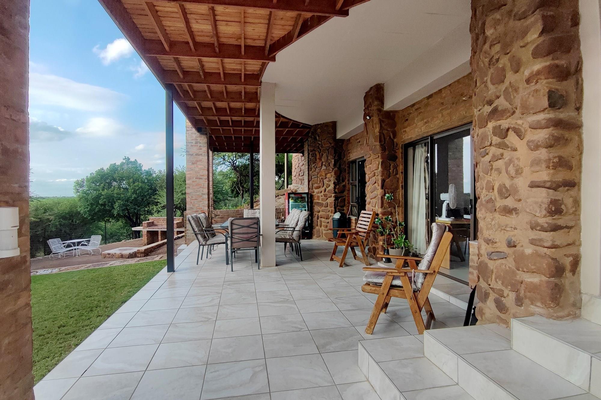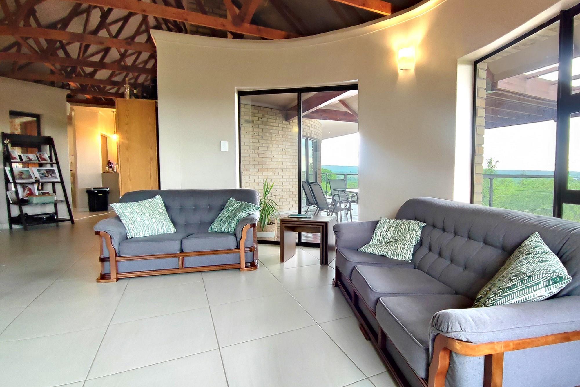 This beautiful home boasts three modern bedrooms, each with its own en-suite bathroom. The main bedroom is situated on the upper level with gorgeous views of the African bushveld. Step into this sanctuary and be greeted by a spacious layout, complete with a full-length patio offering awe-inspiring views that will leave you breathless. For your ultimate comfort, the main bedroom is air-conditioned, ensuring a tranquil retreat.