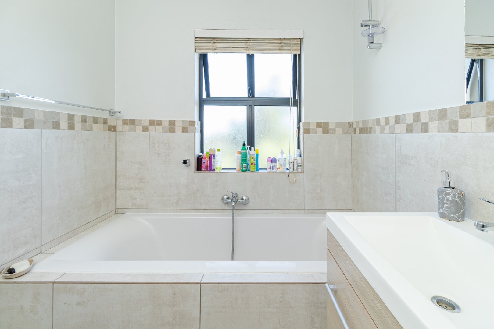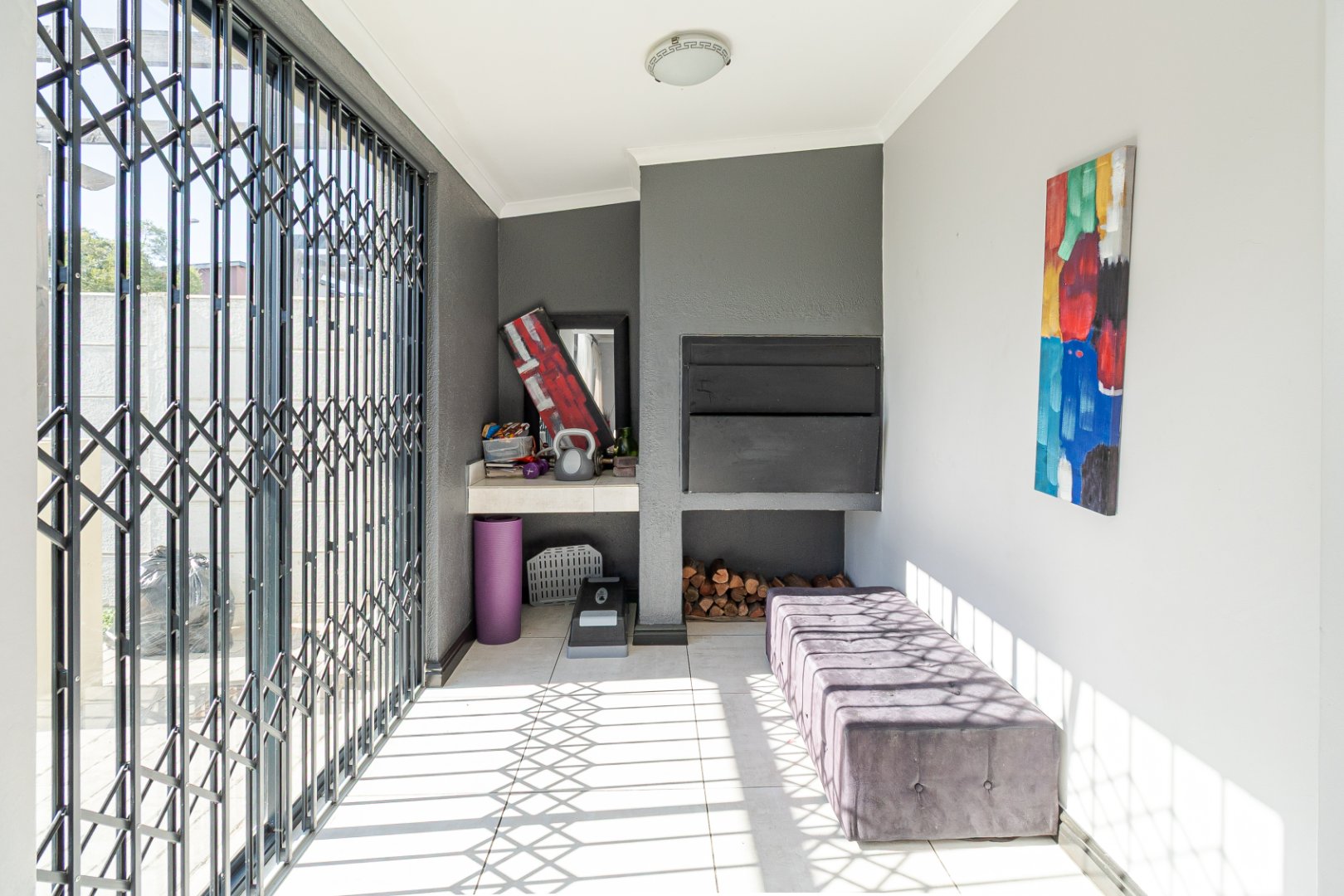 The spacious living and dining area flows effortlessly into a dedicated indoor braai room, ideal for hosting guests or enjoying cozy nights in. Glass sliding doors open from the braai room into a neat and private backyard, offering just the right amount of outdoor space for kids, or a relaxing braai on weekends. A guest loo is conveniently located on the ground floor for visitors.