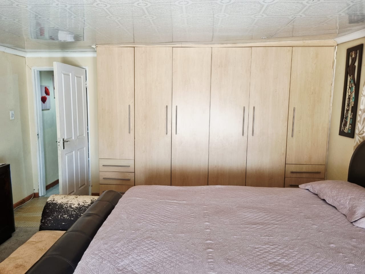 The home features three generously sized bedrooms, all equipped with built-in cupboards. The main bedroom is a true sanctuary, boasting a luxurious en-suite bathroom and a walk-in closet.