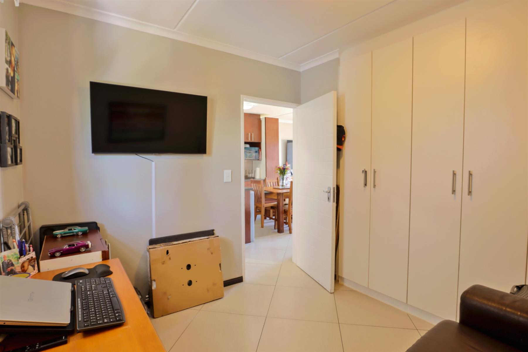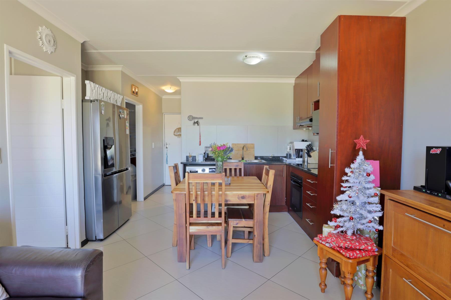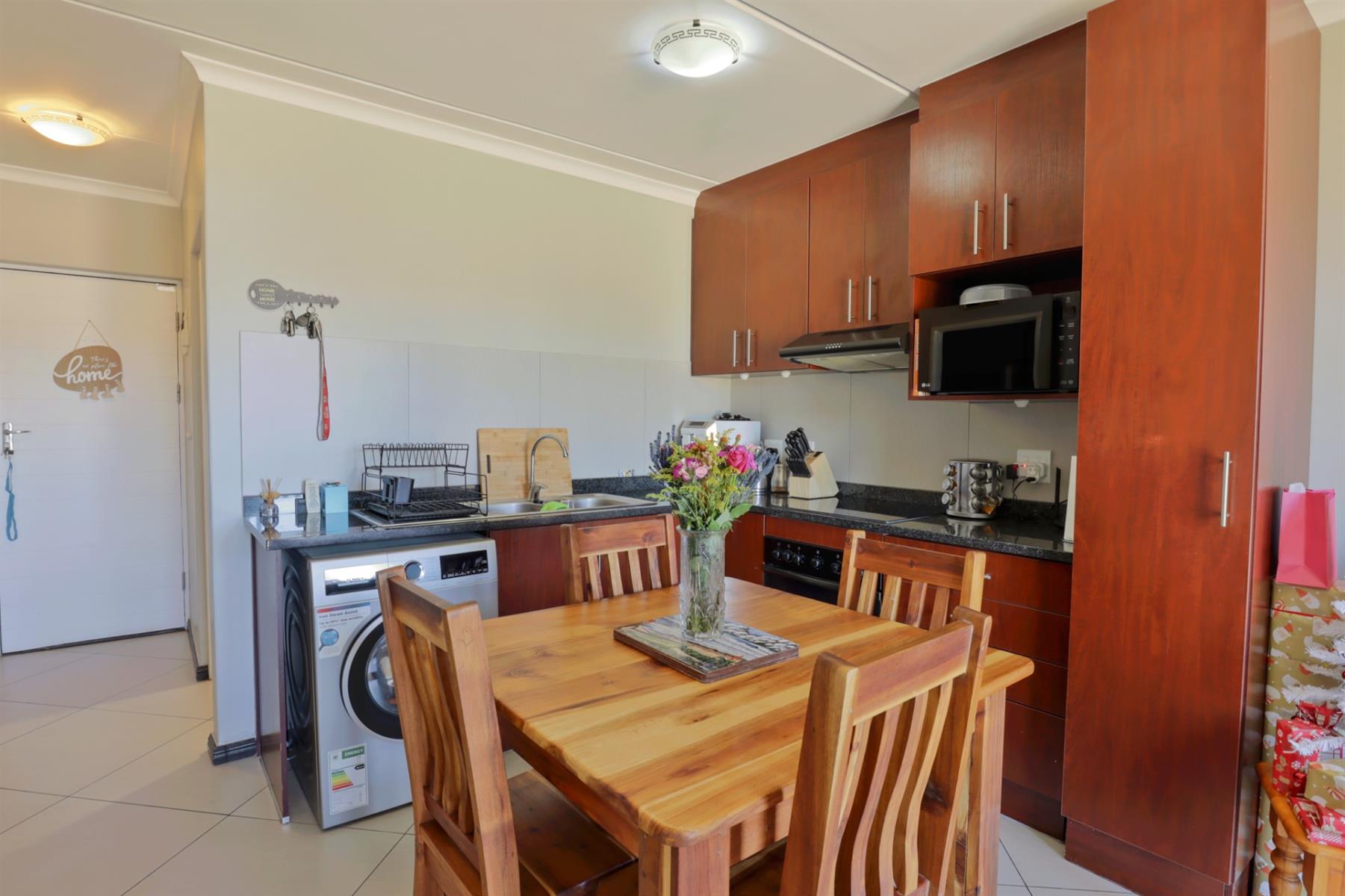 Discover this bright and modern two-bedroom apartment in the highly desirable Buhrein Estate area. The open-plan kitchen flows seamlessly into the living area, which opens onto a cozy balcony featuring a fireplace perfect for relaxing or enjoying a braai with friends and family.