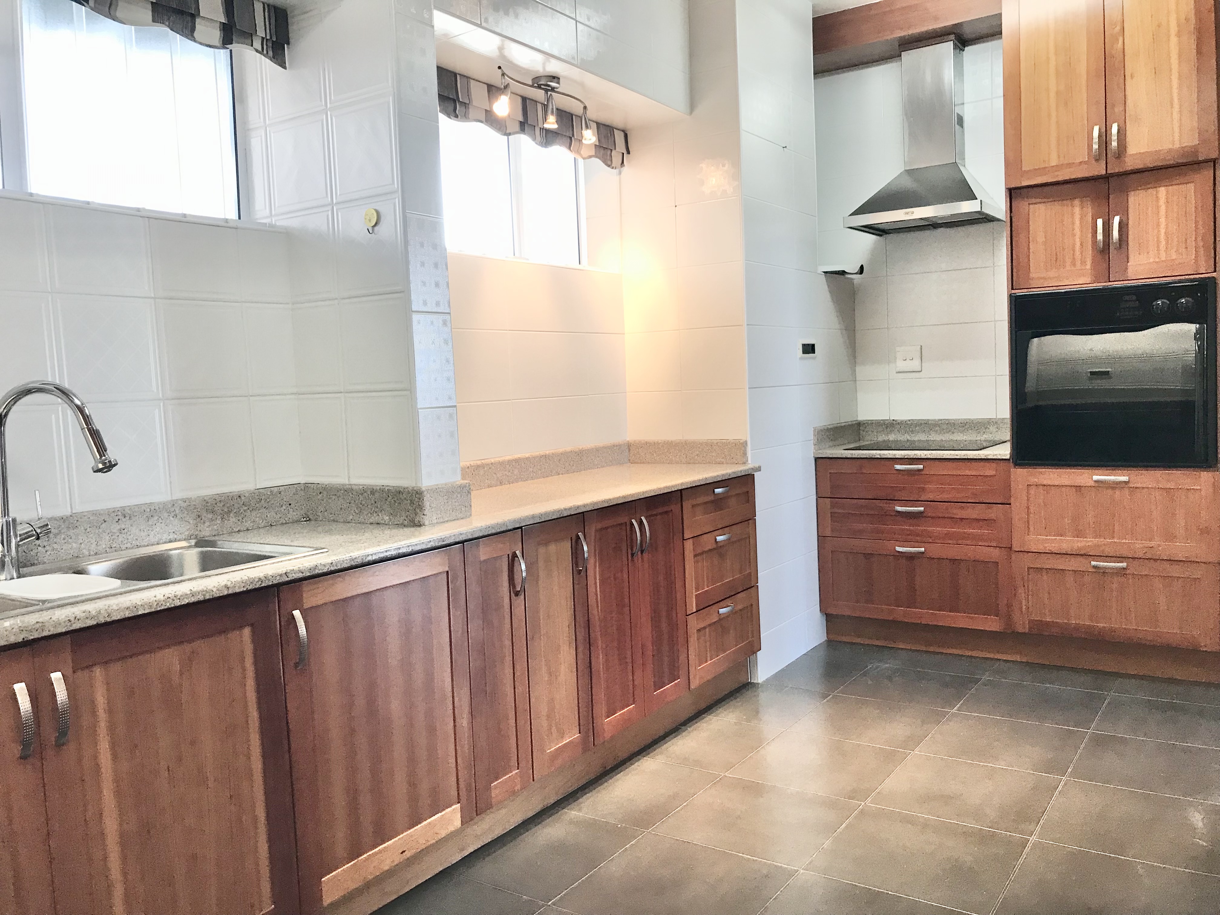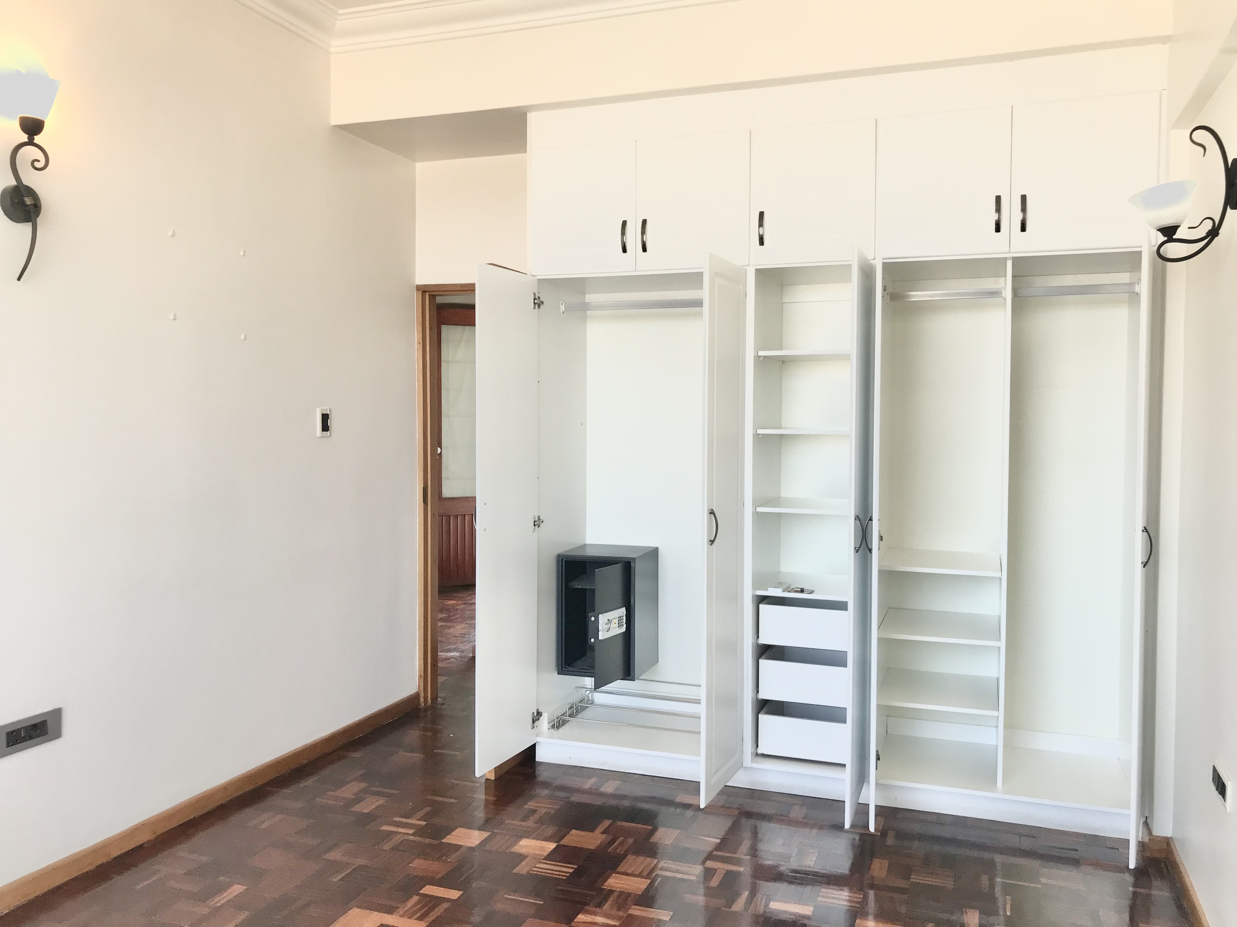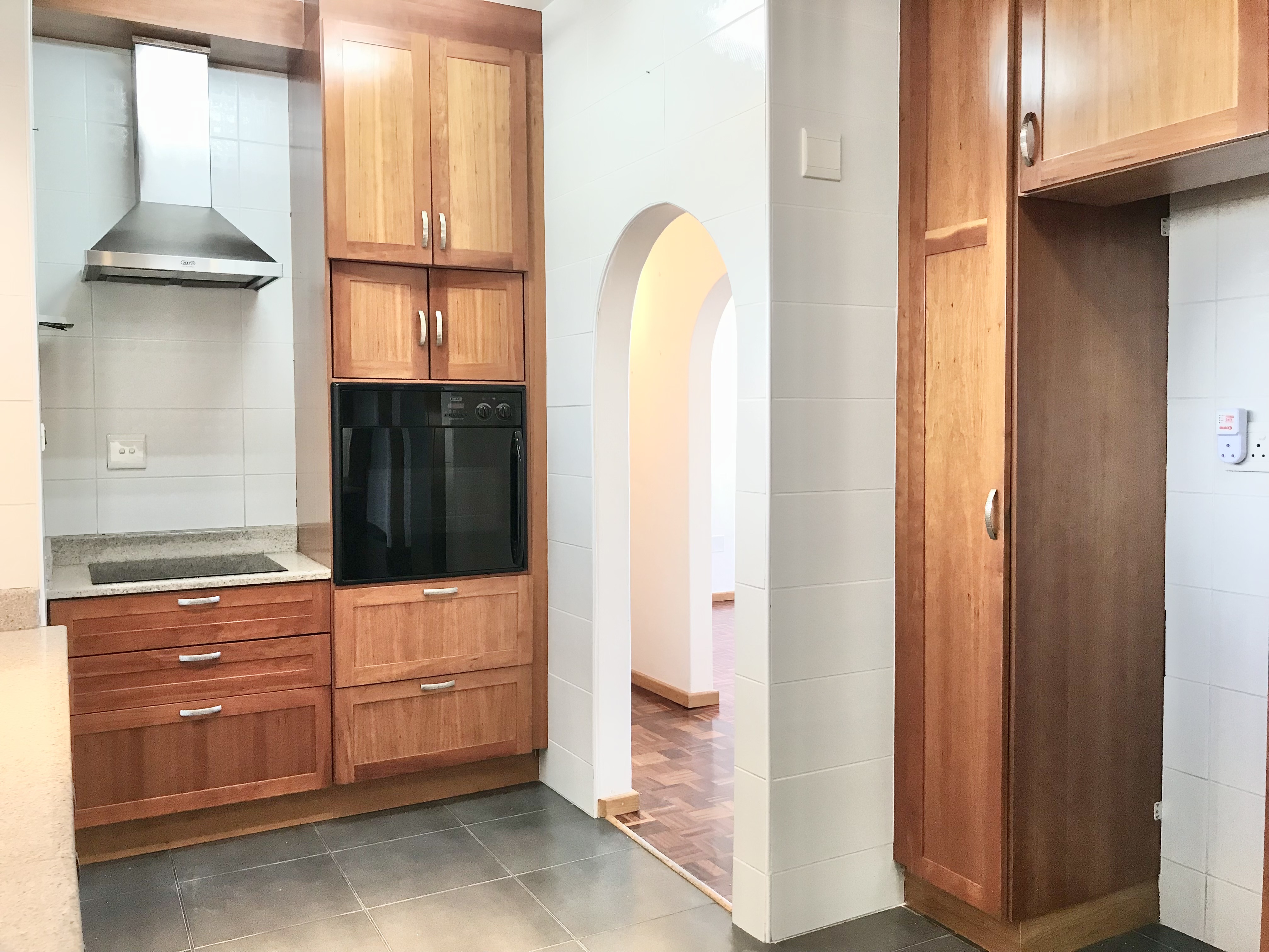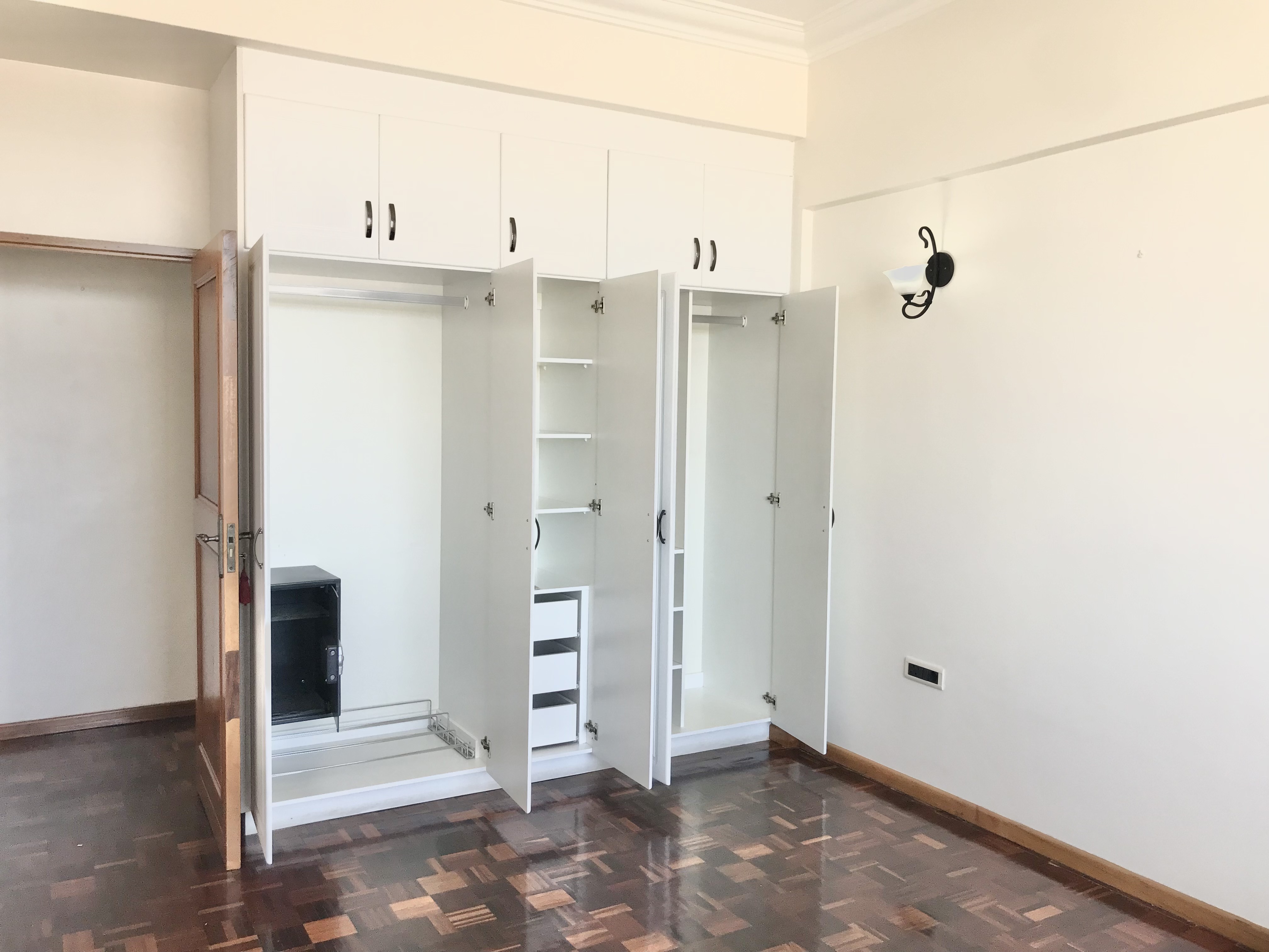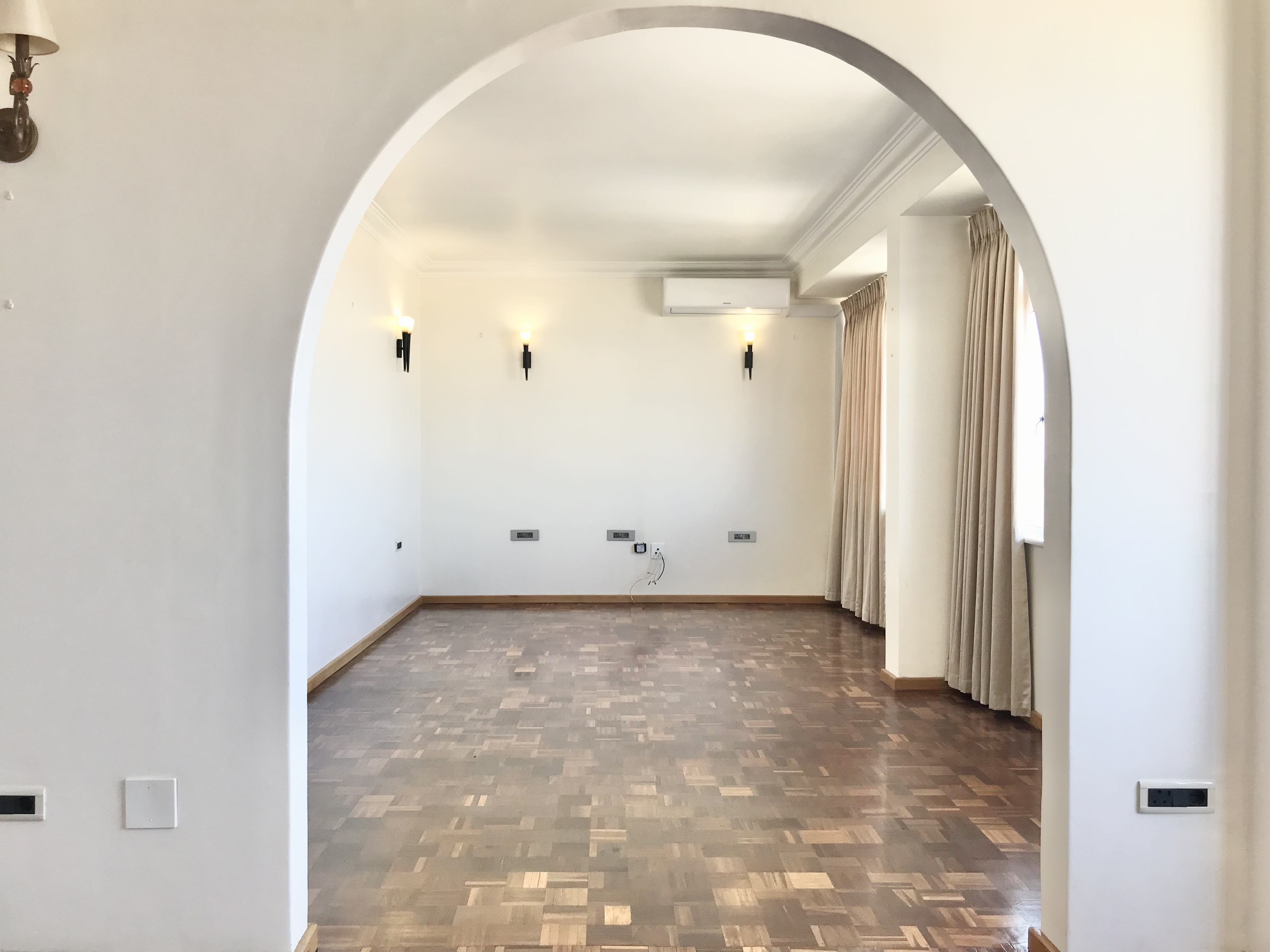 The kitchen is designed with plenty of built-in cabinetry, a stove with an extractor, and sleek granite countertops. There's also space for a 6-to-8-seater breakfast table, combining both practicality and elegance. The spacious rooms are perfect for accommodating large, luxurious beds, pedestals, lamps, throws, and cushions, while the stylish bathrooms are a perfect match for the bedrooms. For those working from home, there's a dedicated study or office, which could also function as a cozy fourth bedroom with a single bed and extra furnishings.