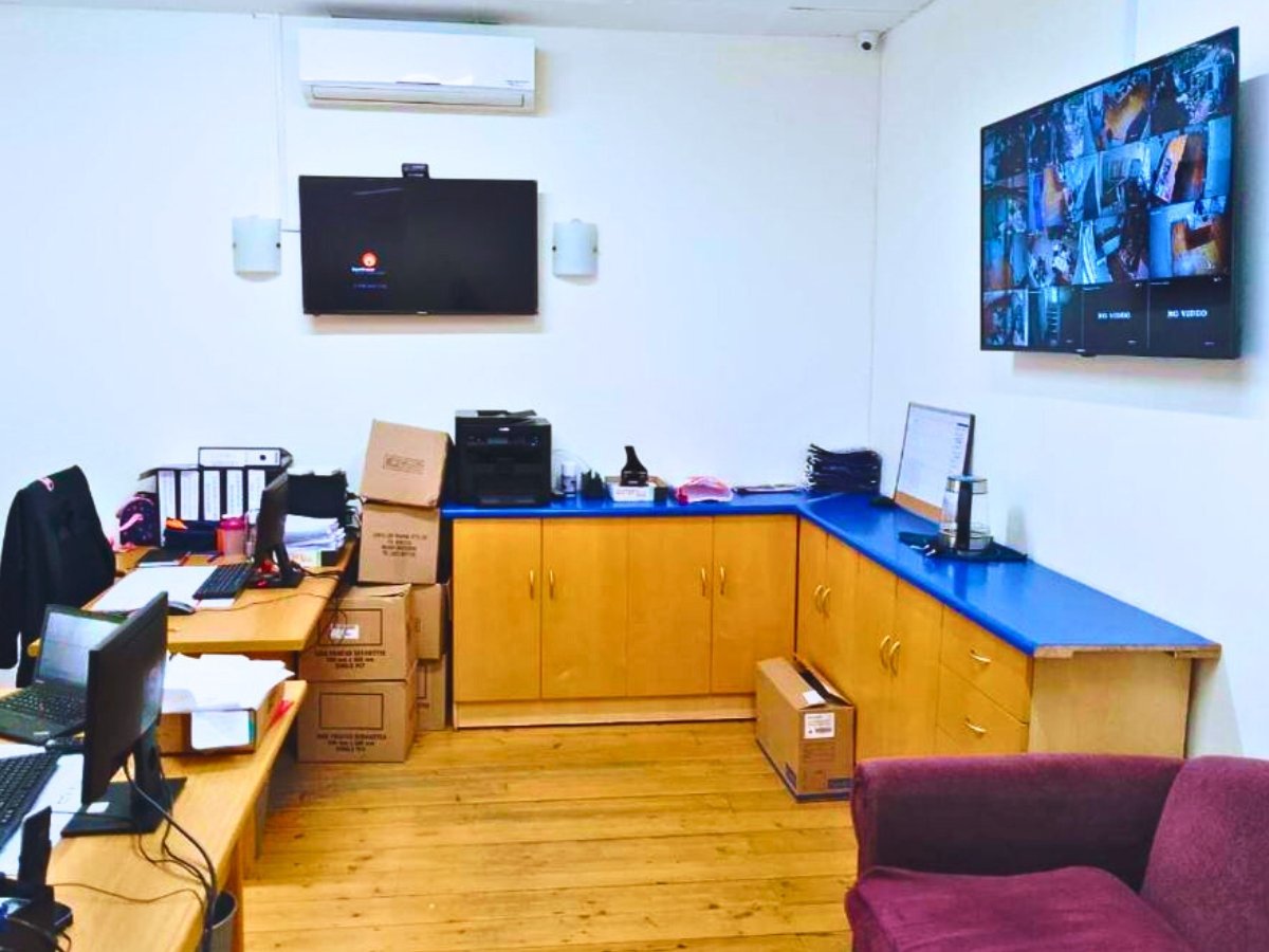 Security and accessibility are carefully designed, with three pedestrian gates, a large vehicle gate, secure parking for up to 12 vehicles, CCTV surveillance, and electric gates with intercom. The side area on Brand Road, currently a children’s play space, offers potential for a crèche or additional commercial development.