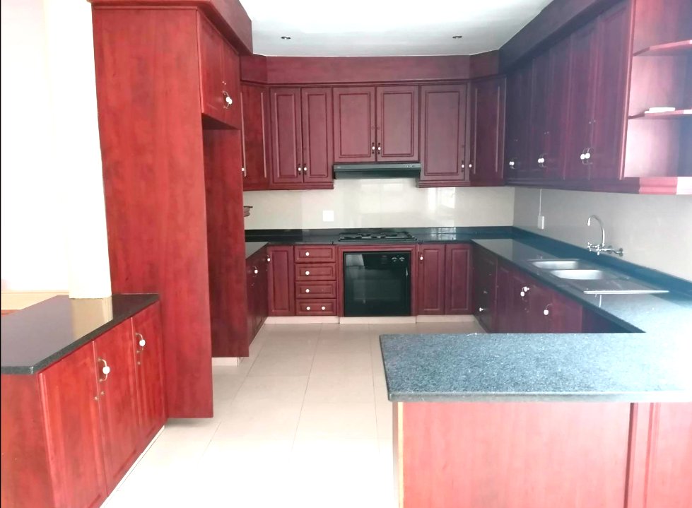 Kitchen is Spacious with ample built in Cupboard Space, Tiled, Granite counter tops, Built in oven and stove, double sink, Fitting for washing machine