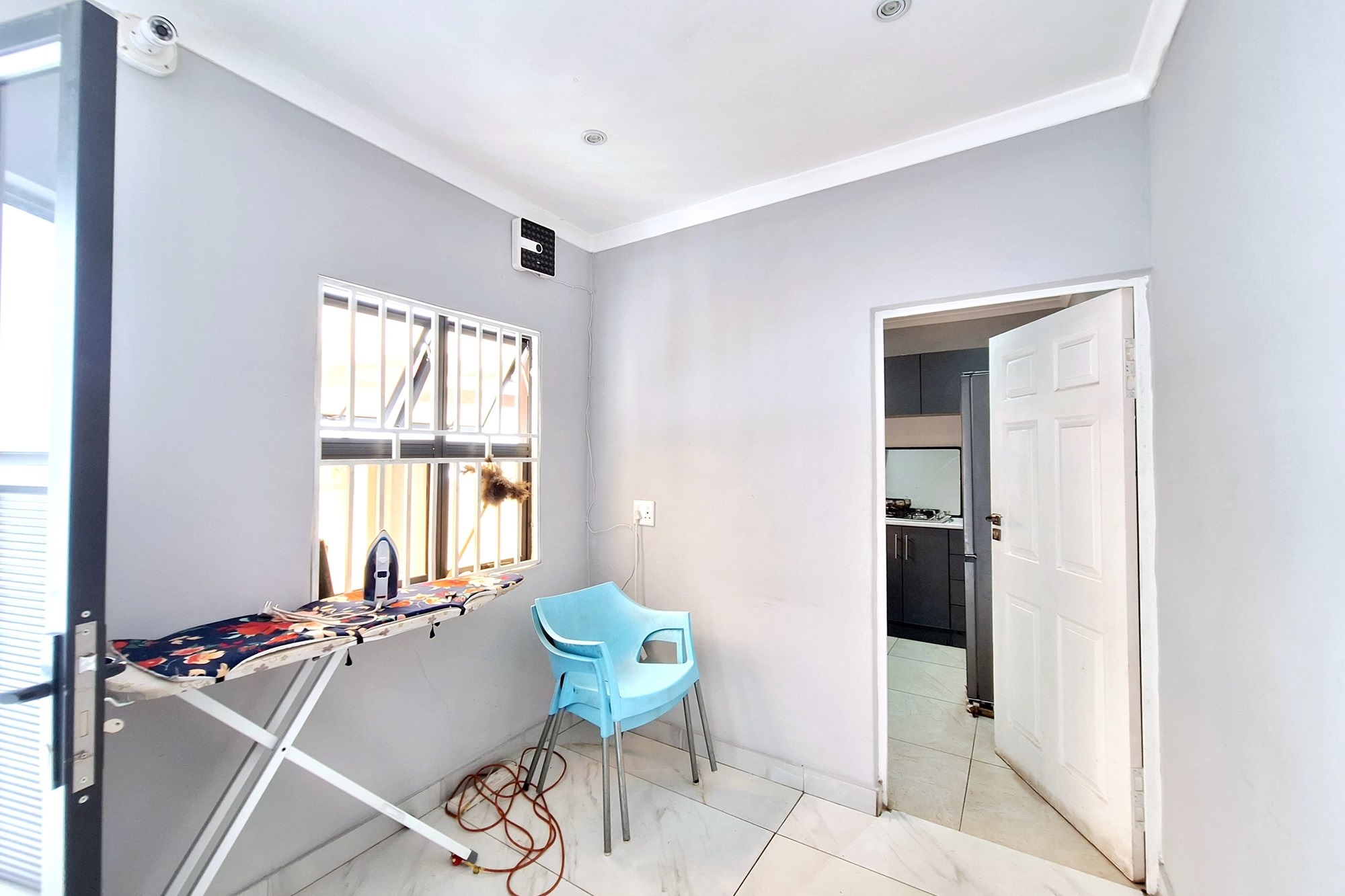 This renovated house has 5 bedrooms (plus and out room and a 6th smaller bedroom) and 6 bathrooms en suite. Each room has a TV and is tastefully decorate. It has incredible income earning potential as each room is tenanted and or it can be run as an AirB&B. At the moment the income is between R50k and R60k per month. The veranda has marble tiles on the walls and floor, giving it a real extravagant look.