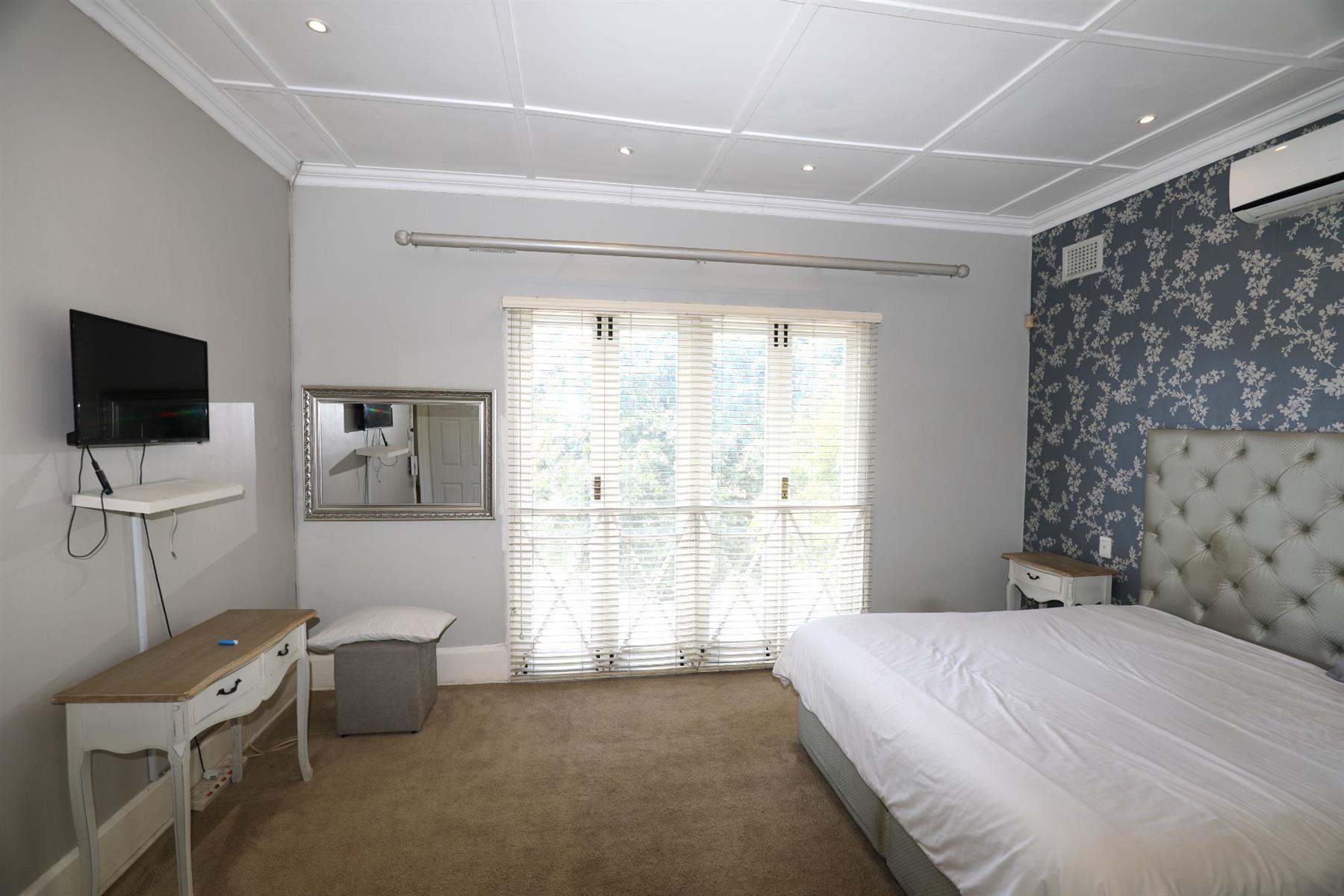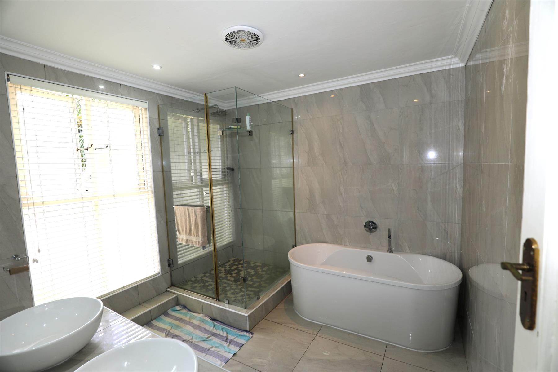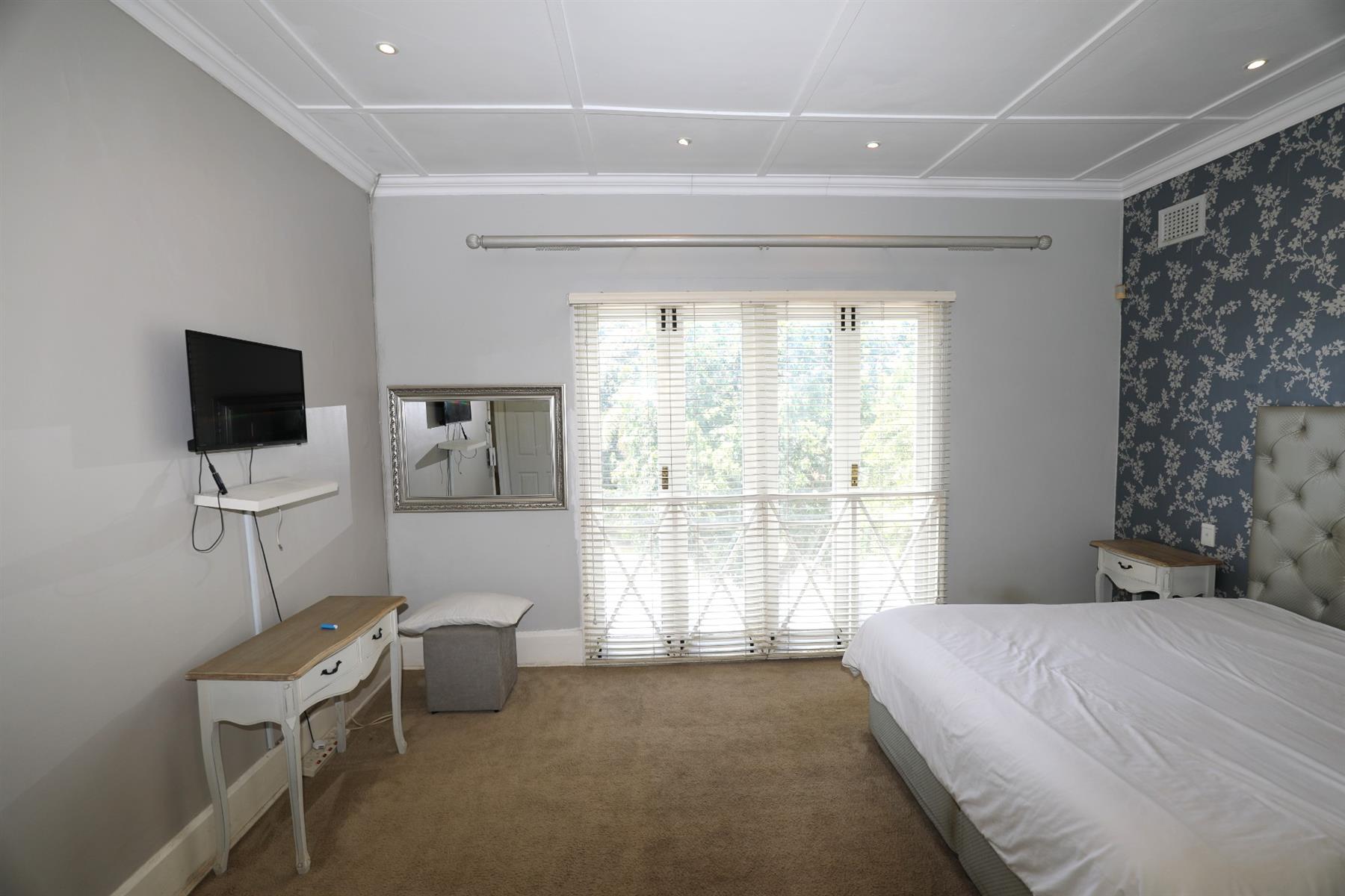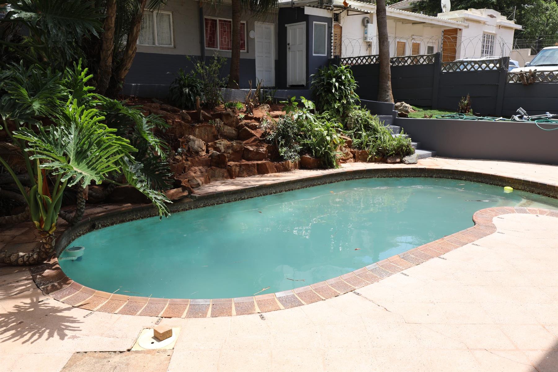 Step outside onto the veranda that overlooks a beautifully landscaped garden, complete with a refreshing splash pool, ideal for warm summer days. The property also includes a flatlet, providing versatile accommodation options, whether for guests or as a private office space. Additional conveniences include a domestic room and bathroom, ensuring functionality alongside comfort.