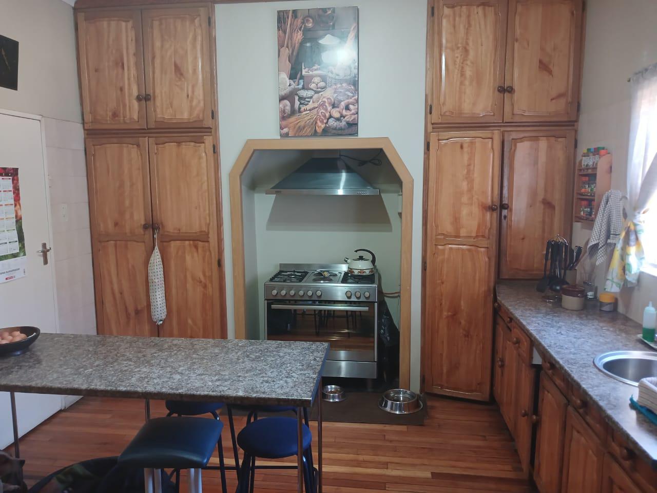 Goed toegeruste kombuis met 'n gasstoof (6 plate), groot elektriese oond en 'n waskamer en spens aan die kombuis verbind
