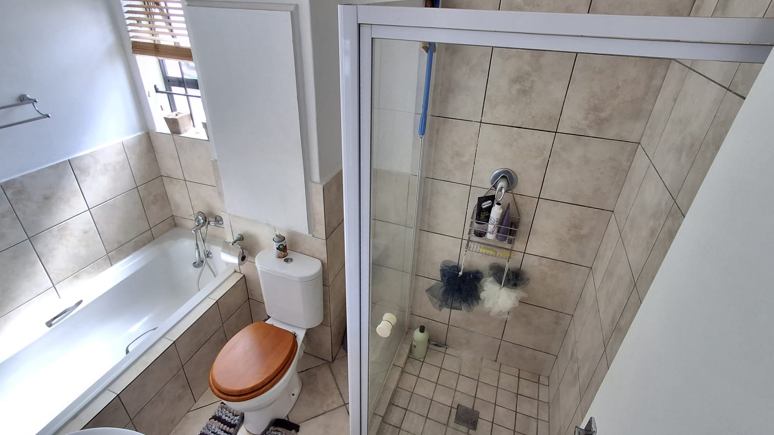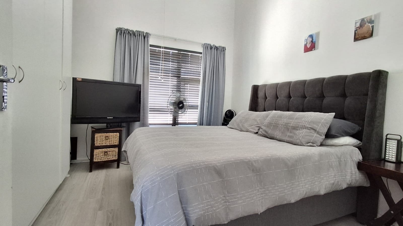 Two fresh bedrooms, both with built-in cupboards, Laminated flooring and Window blinds.