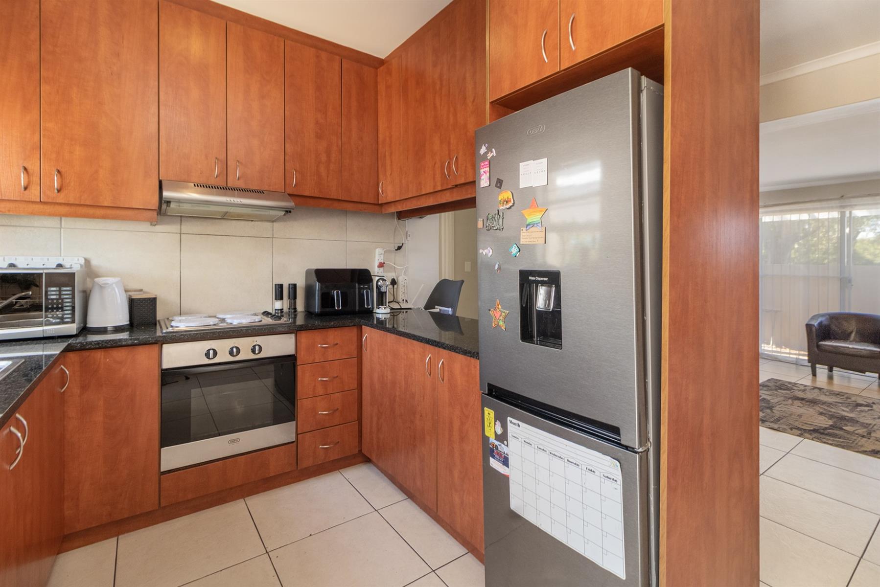 The bright and spacious open-plan living and dining area flows effortlessly onto a private backyard with a built-in braai — perfect for relaxing or entertaining. The modern kitchen features granite countertops, ample cupboard space, and a breakfast nook.