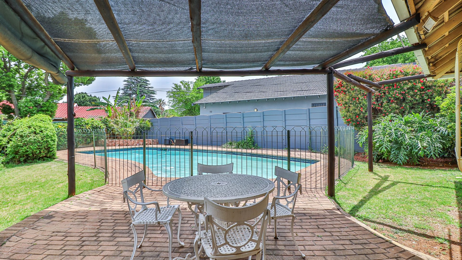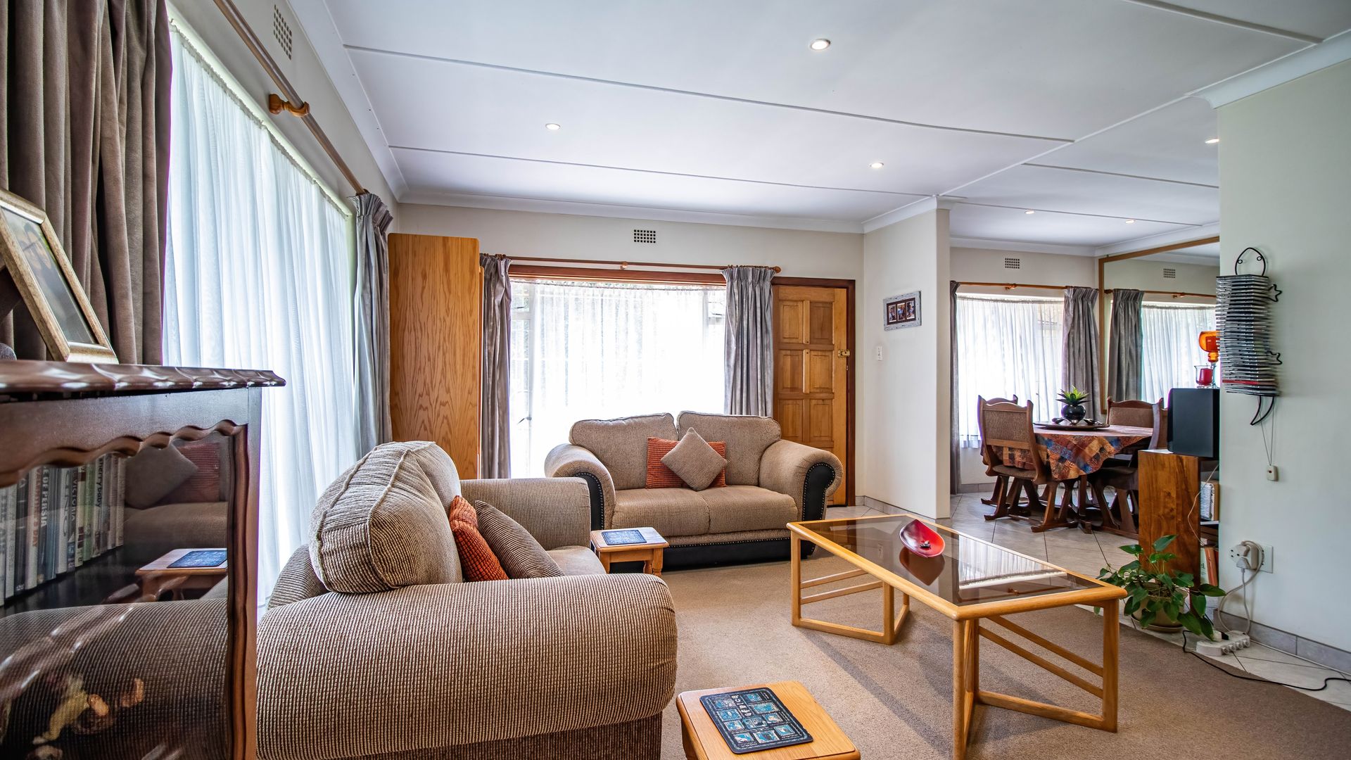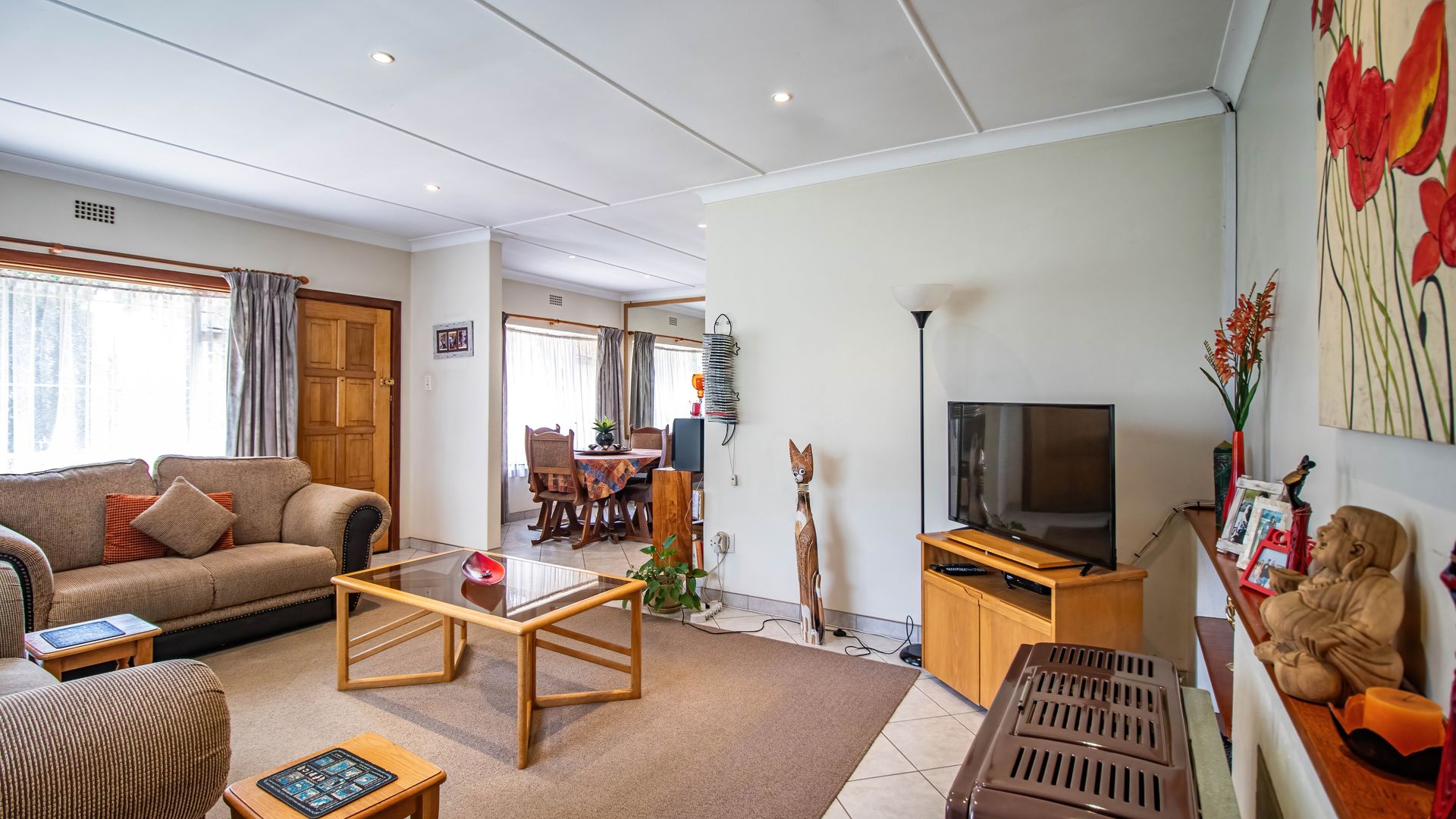 This beautifully airy and well-maintained home offers 3 spacious bedrooms and 2 bathrooms. The neat melamine kitchen flows into the dining area and a cozy lounge, complete with an anthracite heater – perfect for chilly evenings. The lounge opens onto a covered patio, overlooking a sparkling swimming pool, ideal for entertaining.