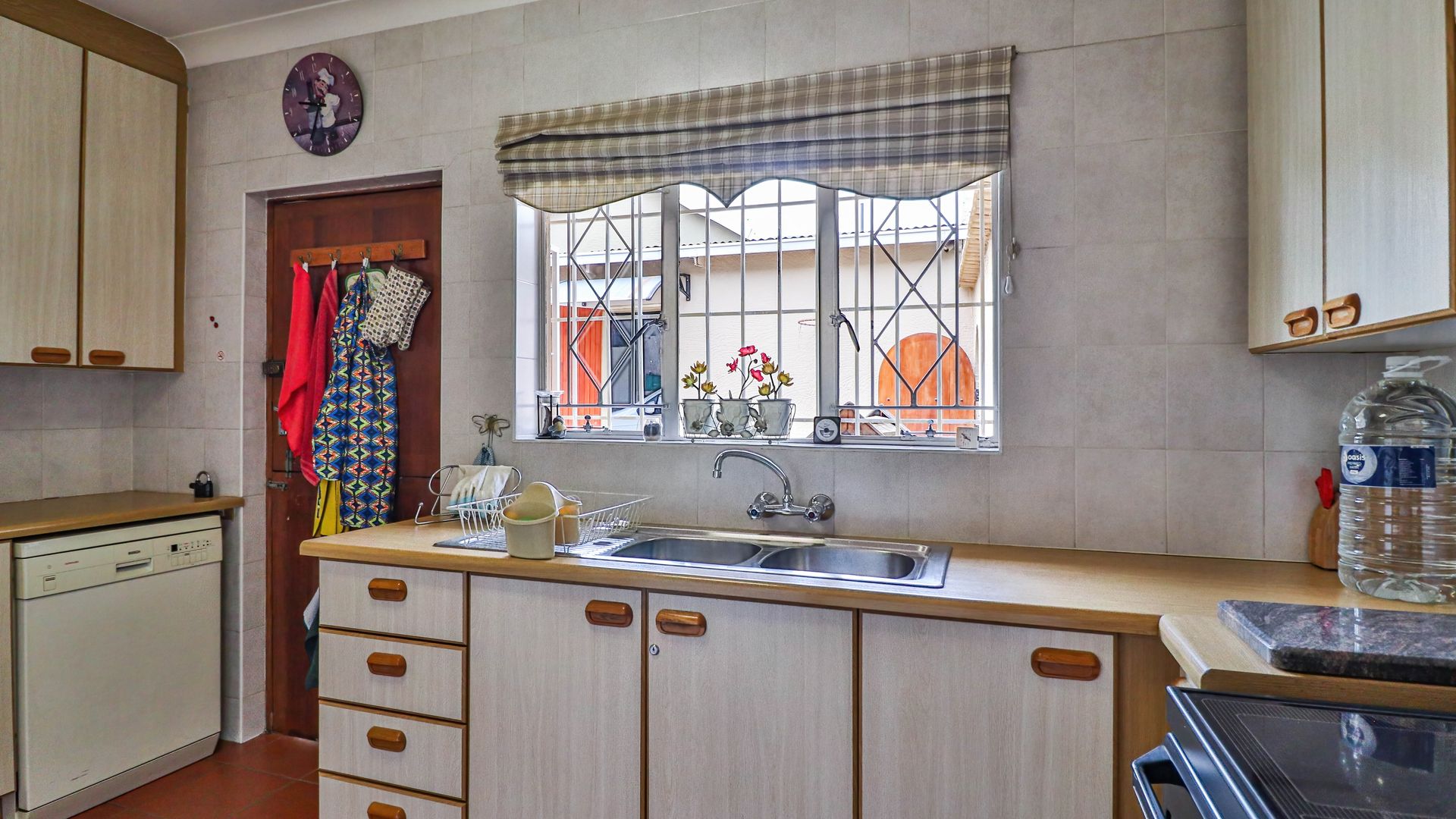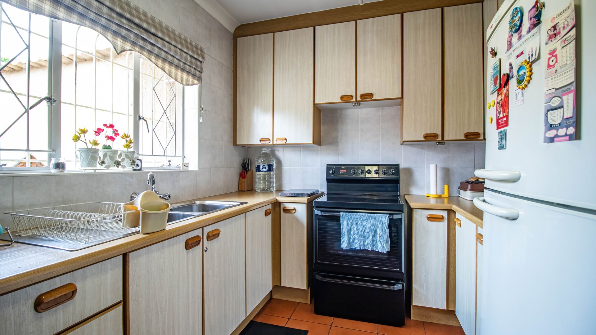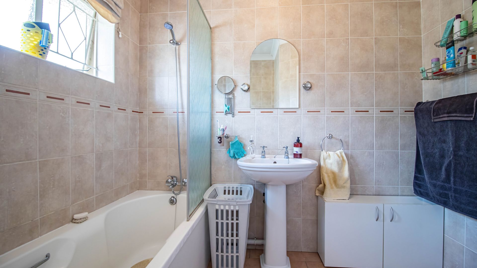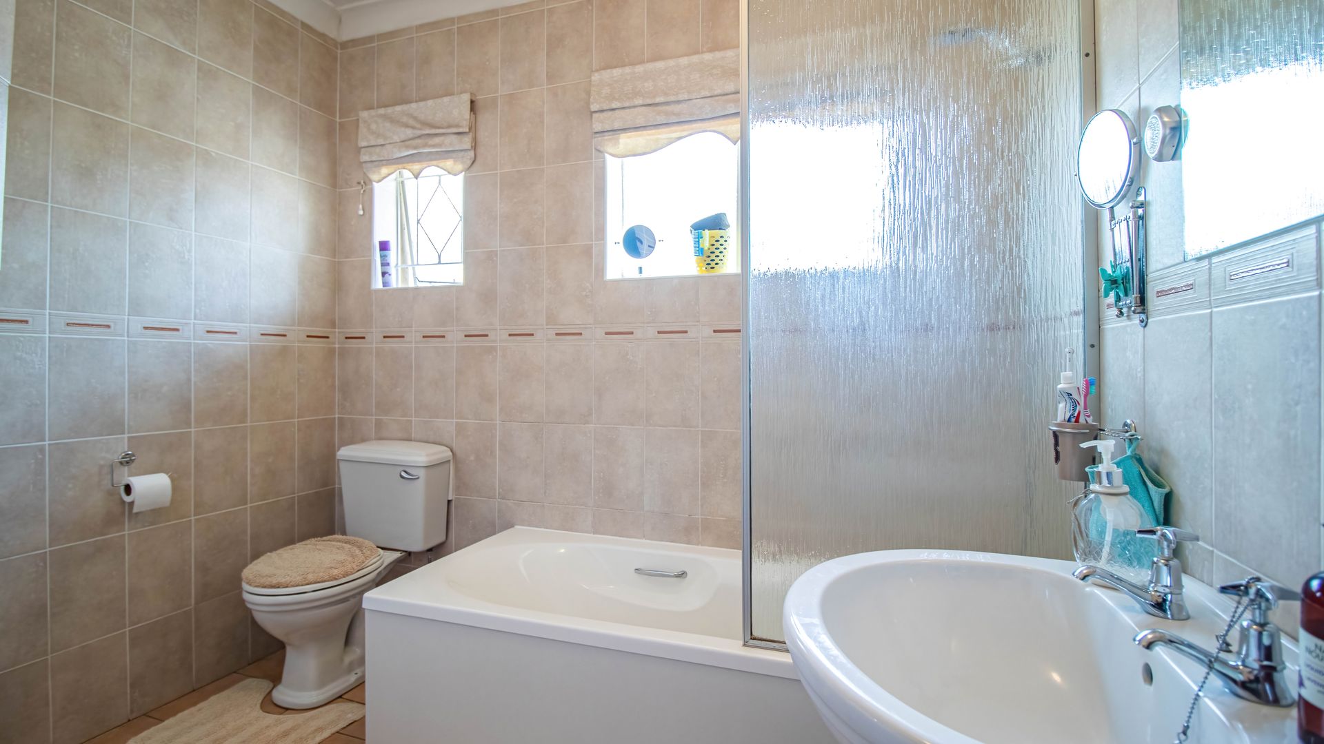 This beautifully airy and well-maintained home offers 3 spacious bedrooms and 2 bathrooms. The neat melamine kitchen flows into the dining area and a cozy lounge, complete with an anthracite heater – perfect for chilly evenings. The lounge opens onto a covered patio, overlooking a sparkling swimming pool, ideal for entertaining.
