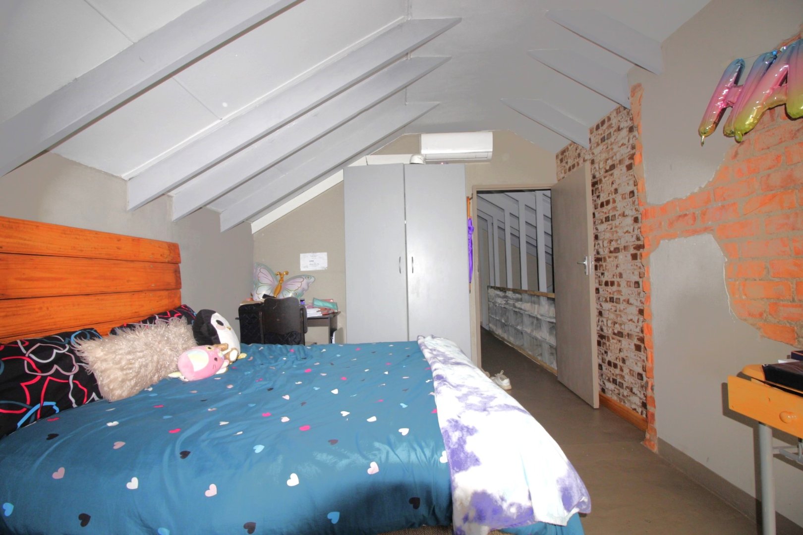 Venture upstairs to discover a loft that includes a cozy TV room, another bedroom equipped with built-in cupboards, air conditioning, and an open en-suite bathroom, perfect for guests or older children.