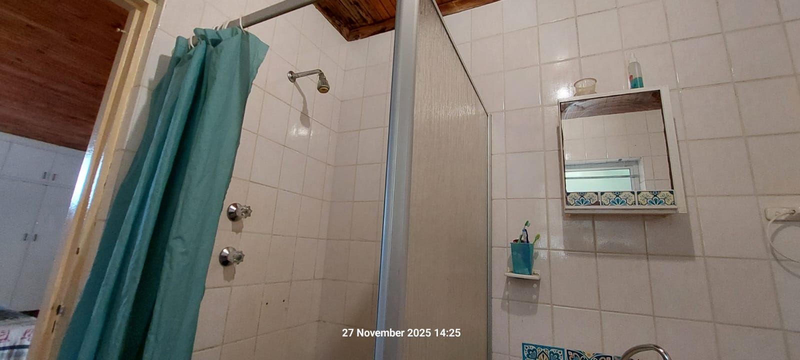The main house offers three spacious bedrooms, all with built-in cupboards and tiled flooring. Bedroom 1 and Bedroom 2 are serviced by a neat family bathroom with a bath, toilet, and basin. The main bedroom features its own en-suite bathroom with a shower, basin, and toilet.