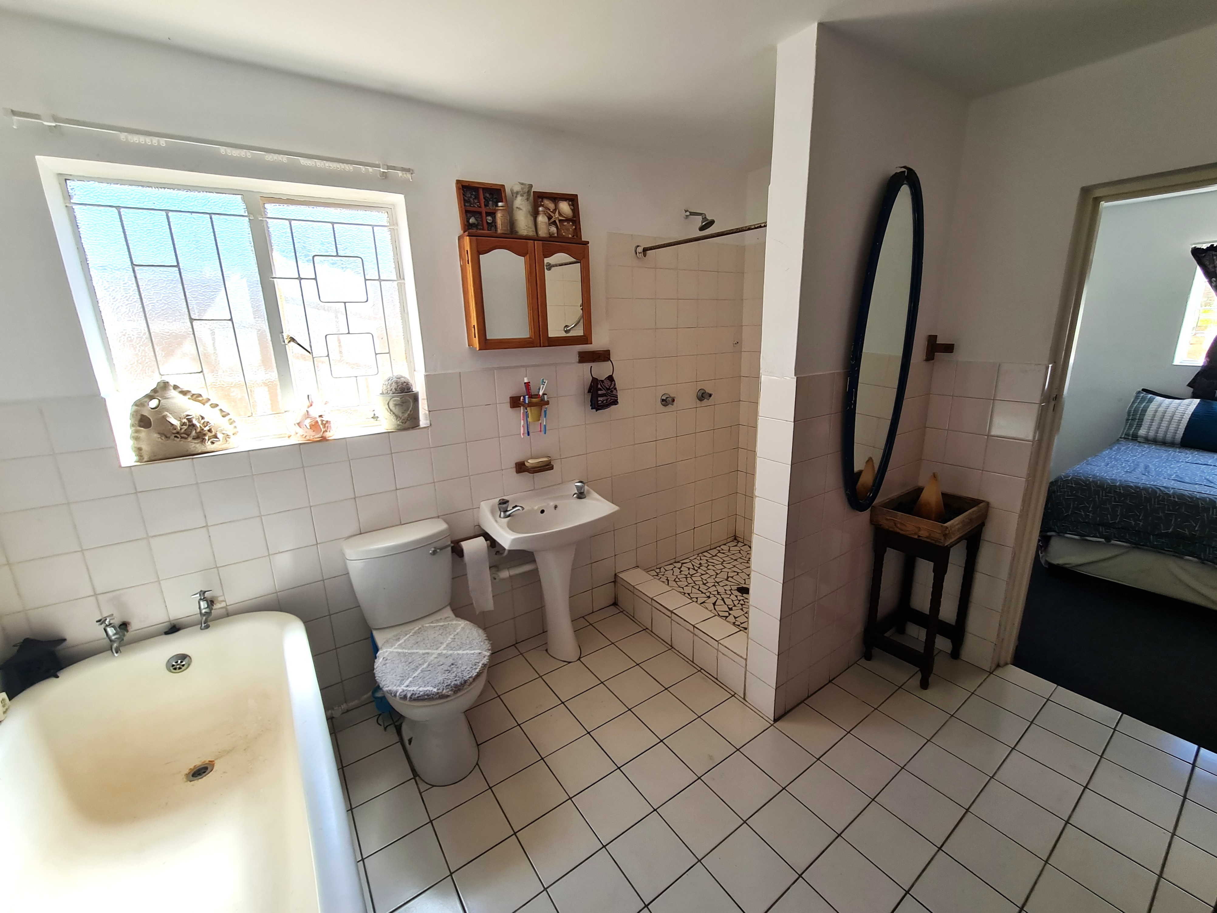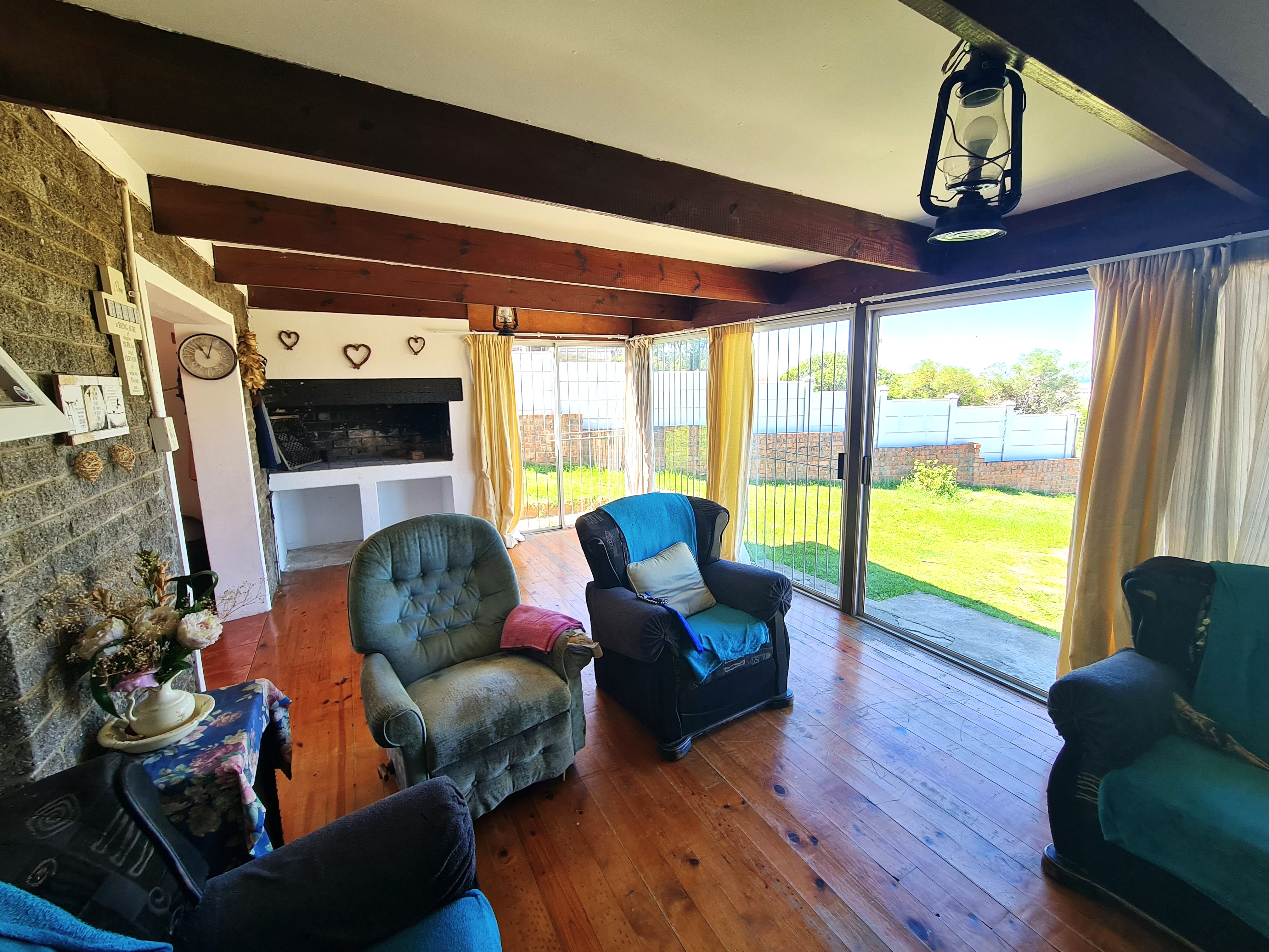 The main house has magnificent views to the ocean from the lounge, main bedroom and the second bedroom. Comprising 3 bedrooms, lounge and dining area, with an open-plan kitchen. Main en-suite bathroom with shower and family bathroom with bath. Enjoy the built-in braai and entertain on the expansive front stoep, while enjoying the elevated position and the views to the ocean.